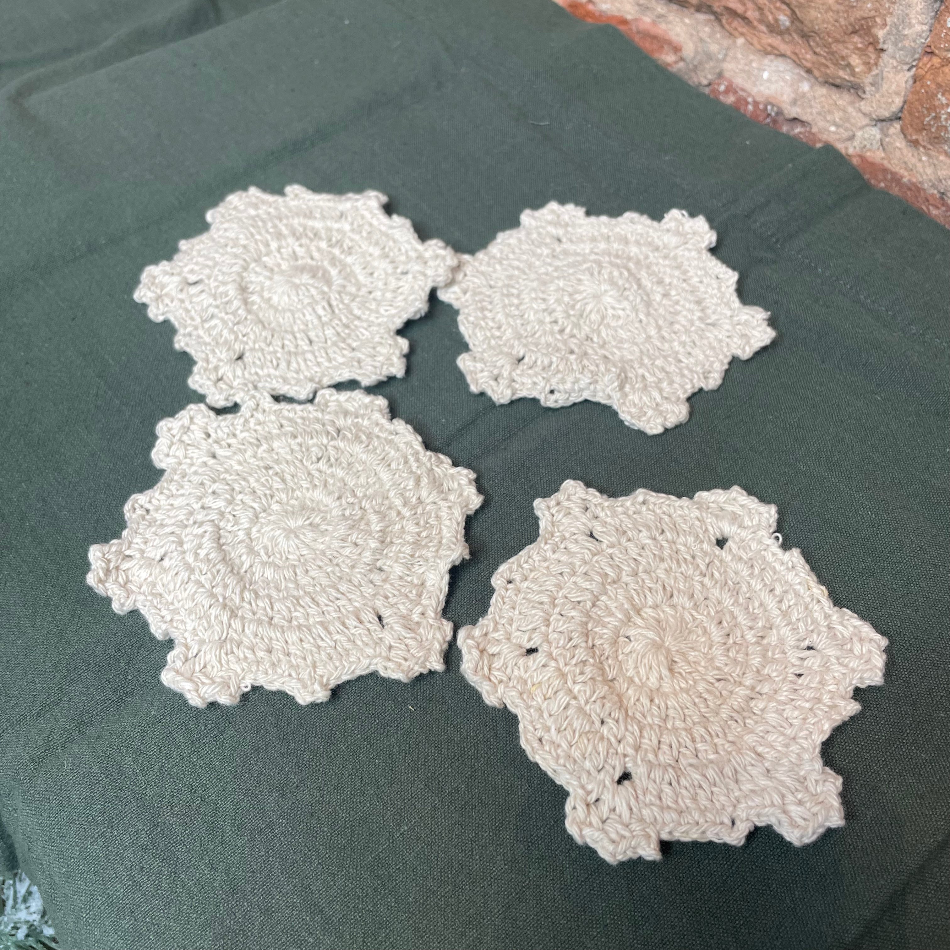 Enhance your holiday table setting with our Crochet Snowflake Coaster Set. Made with delicate crochet snowflakes, this set of 4 coasters adds a touch of elegance and charm to any occasion. Protect your surfaces while adding a festive touch. Made with high-quality materials for lasting durability.