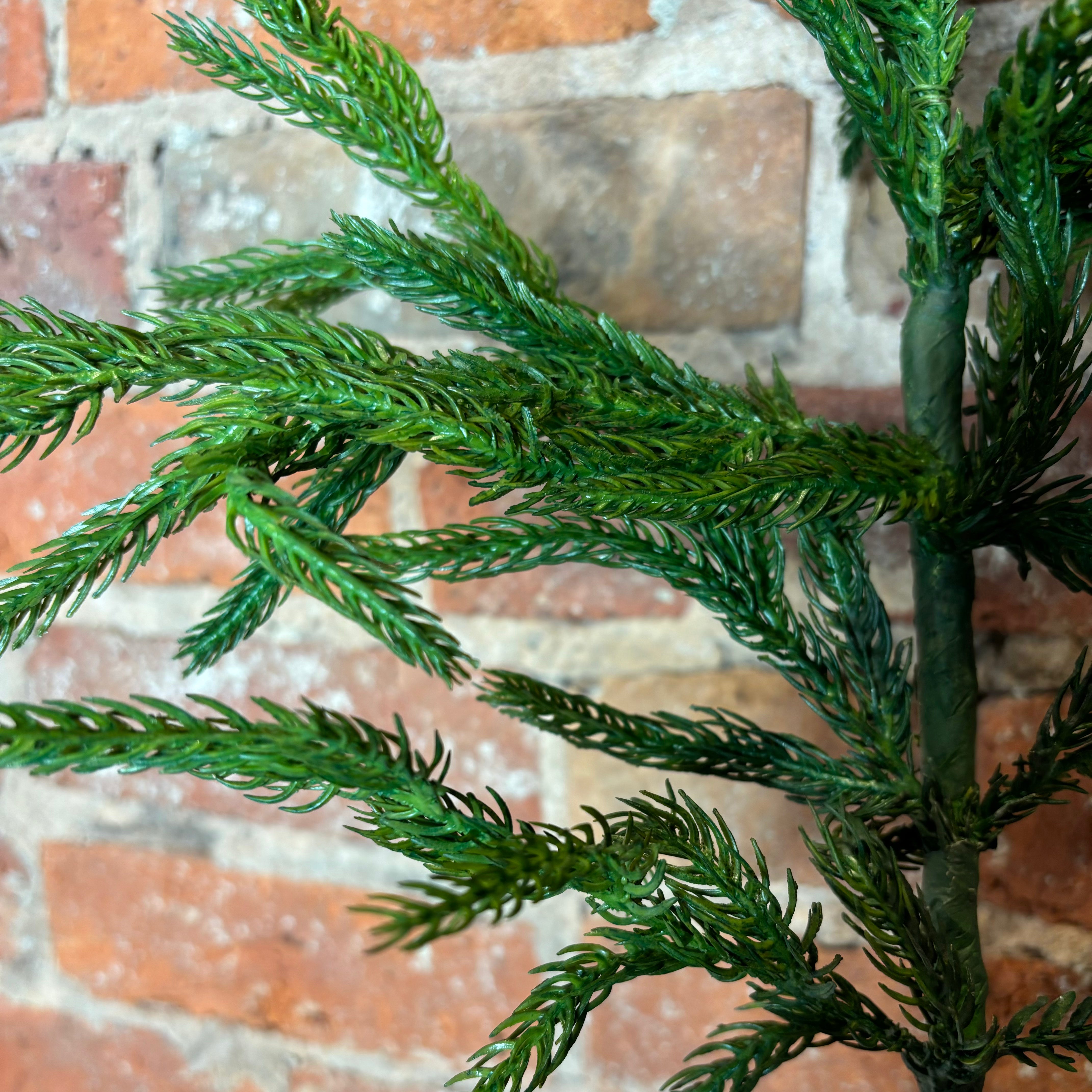 This 38" Natural Touch Norfolk Pine Spray features a realistic design, bringing a touch of nature into any space. Its lush green color adds a pop of freshness and its natural appearance is perfect for creating a serene atmosphere. Made with high-quality materials, this pine spray is durable and long-lasting.