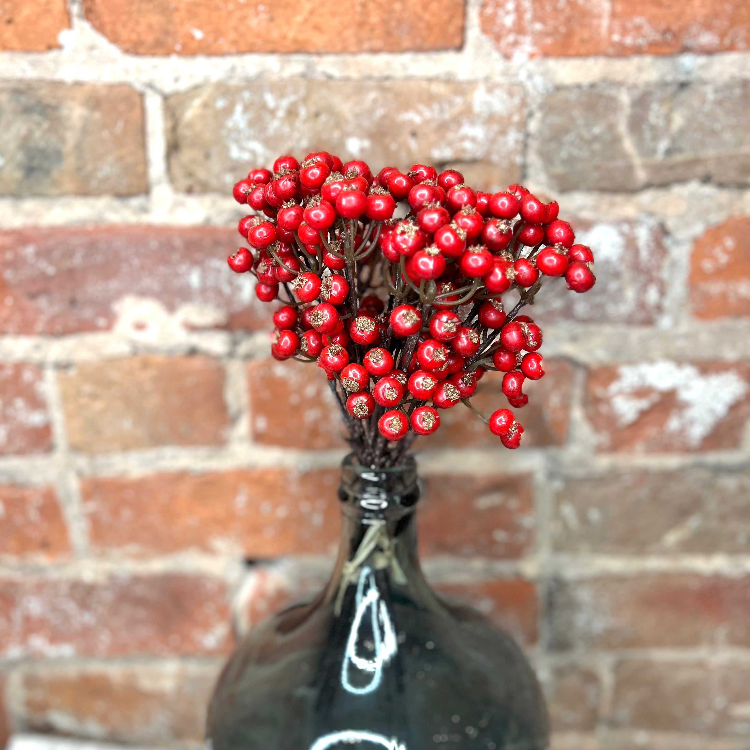 This Shiny Red Berry Cluster Bundle features realistic, high-gloss berries arranged in a compact 11.5" formation. The dimensional clusters create visual depth and texture in seasonal displays. Ideal for professional-quality wreaths, garlands, and tablescapes, these berries maintain their vibrant color and shape throughout the season. Strategically place multiple bundles for maximum impact in holiday installations.