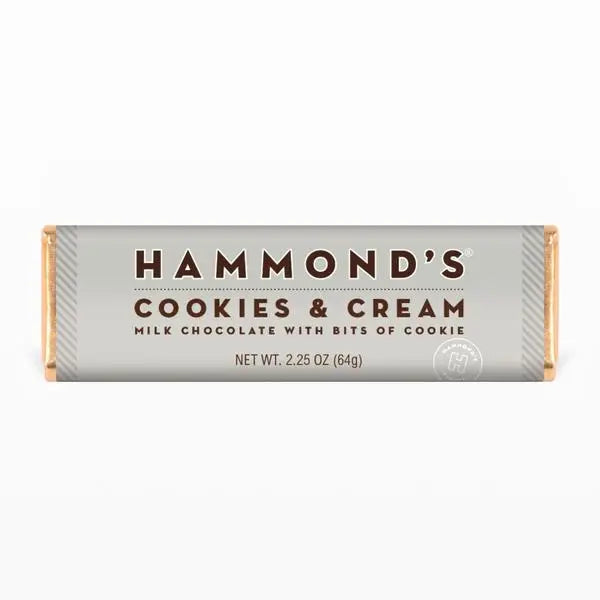 Cookies & Creme/Milk Chocolate-Our Cookies and Cream Chocolate bar is a milk chocolate bar with a bits of chocolate cookie! These bars are cookie-riffic! The yummiest part of your day! Try them now!