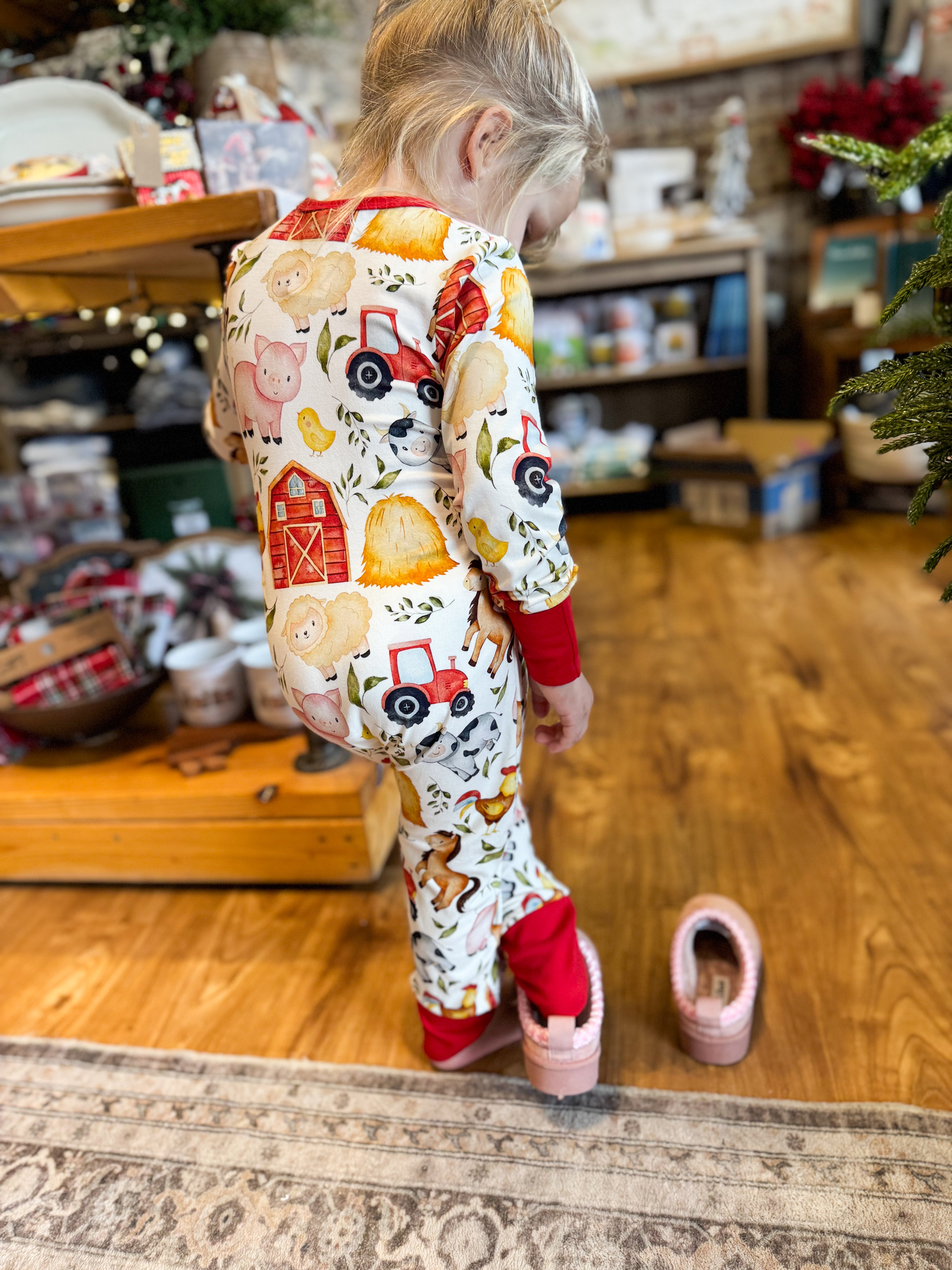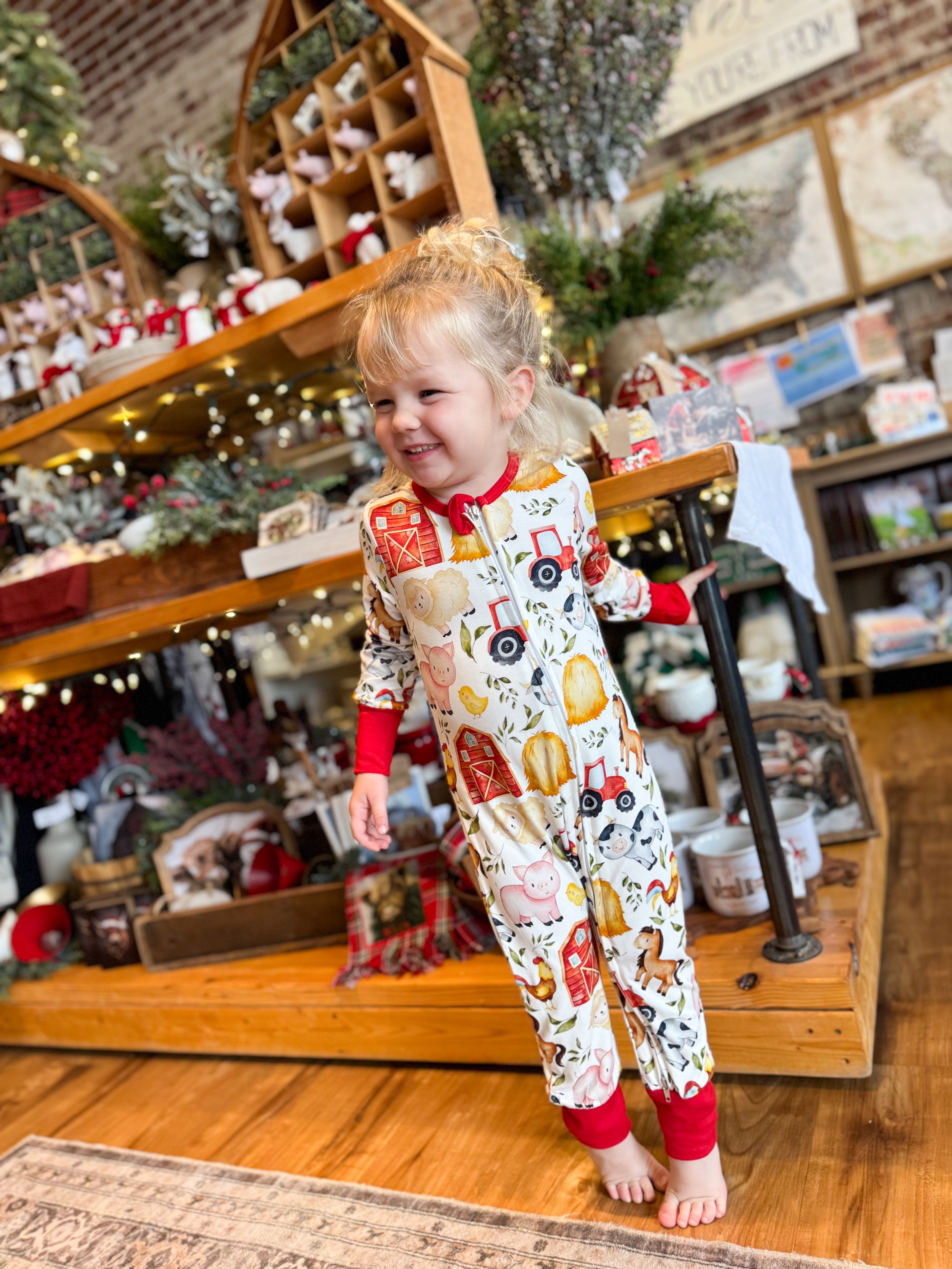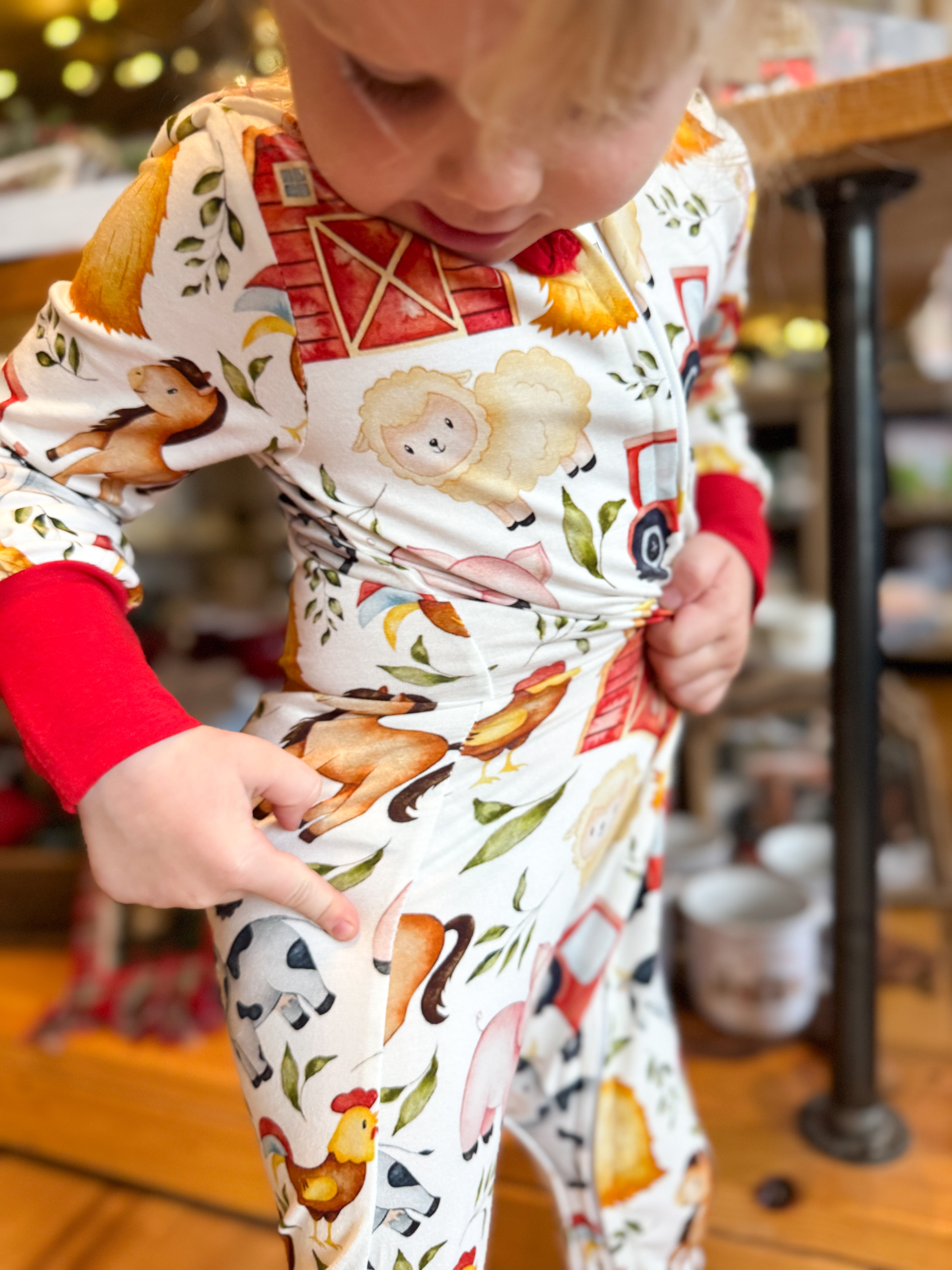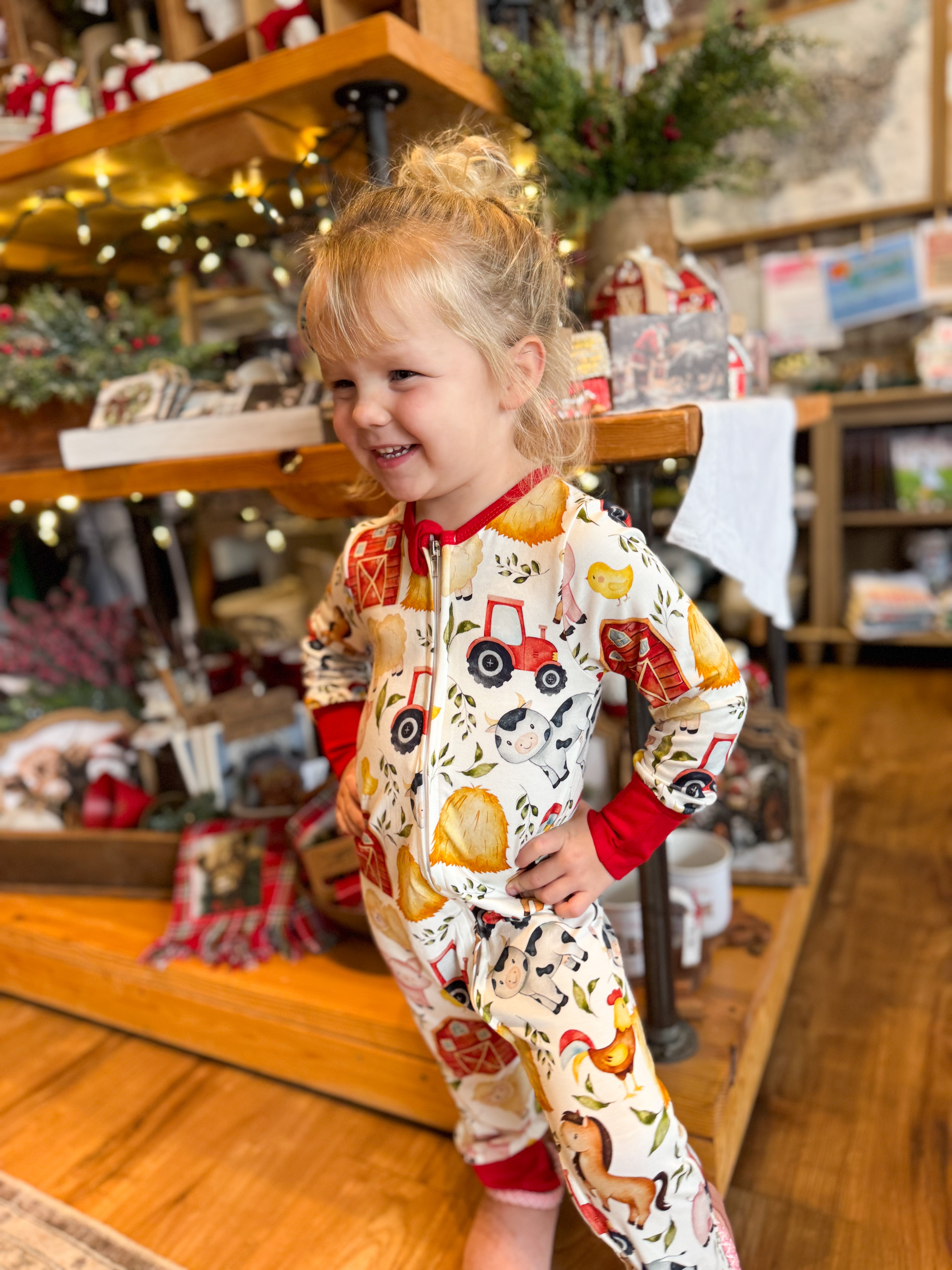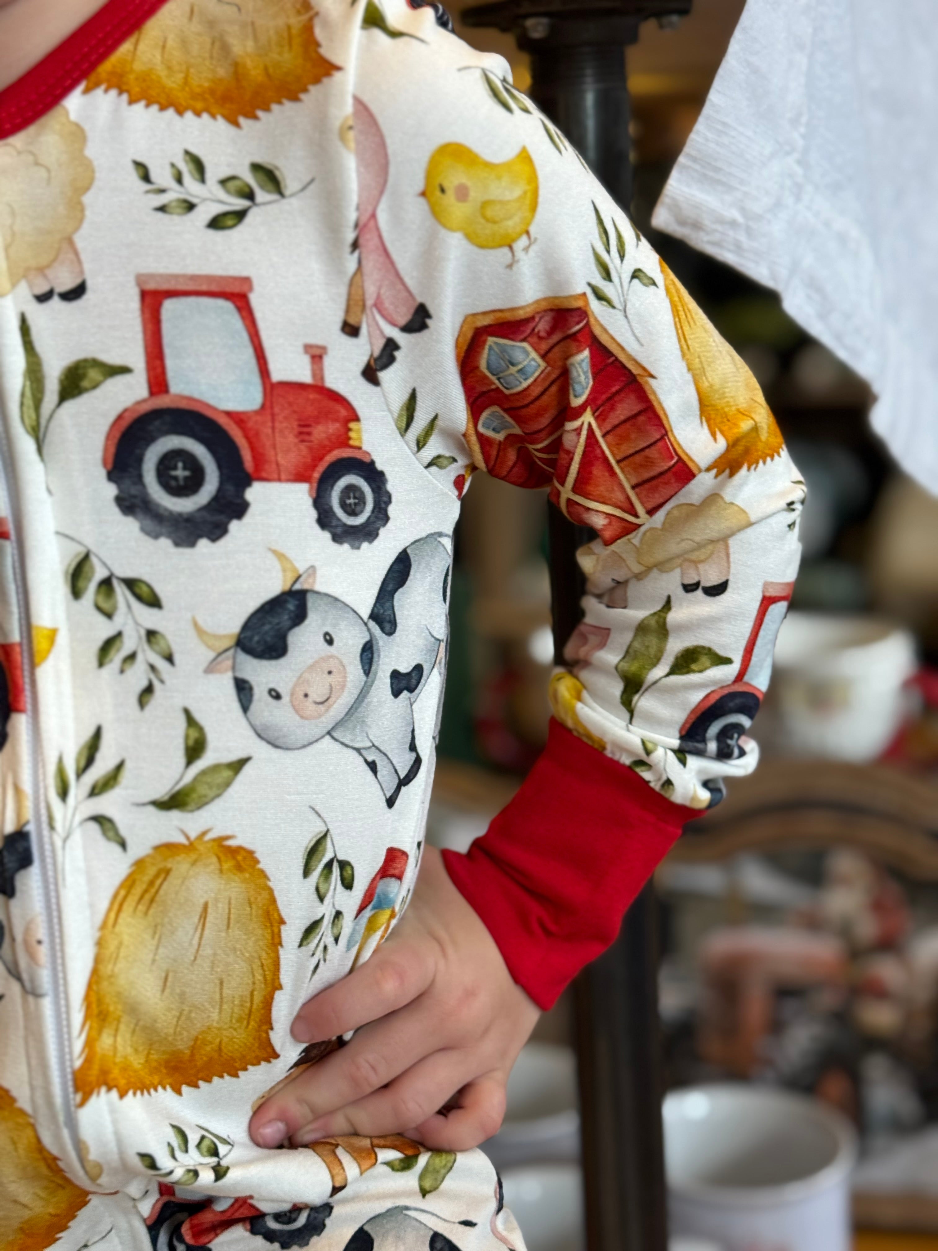 Cozy up in this playful Farm Animal Footless Pajama that lets you stay snug without sacrificing your freedom to wiggle your toes. Perfect for lounging, its fun farm animal prints bring a touch of countryside charm to your downtime.