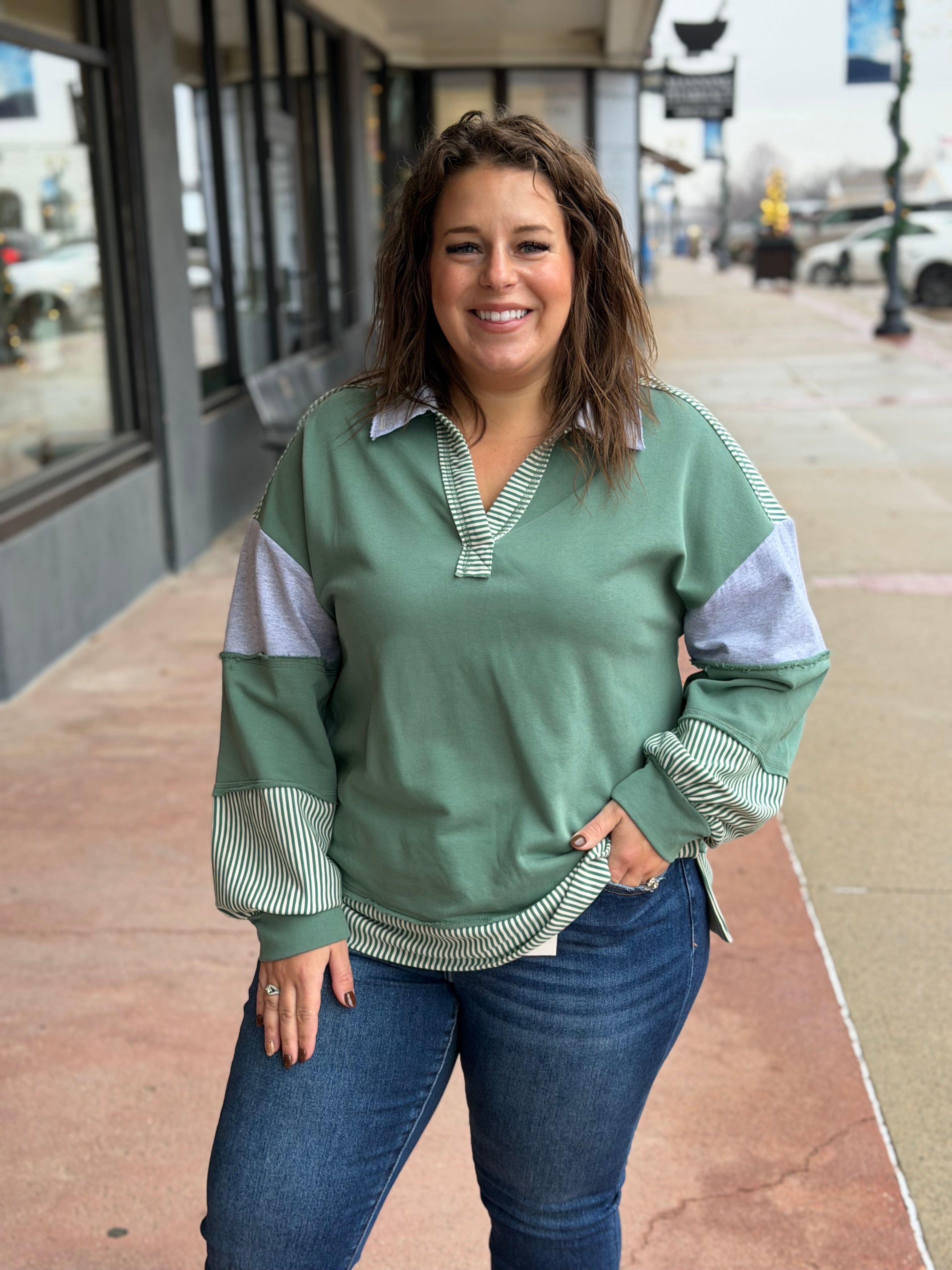 Oversized- Drop Shoulder- Collared- Long Sleeve- Side Slit- Hi-lo Hem