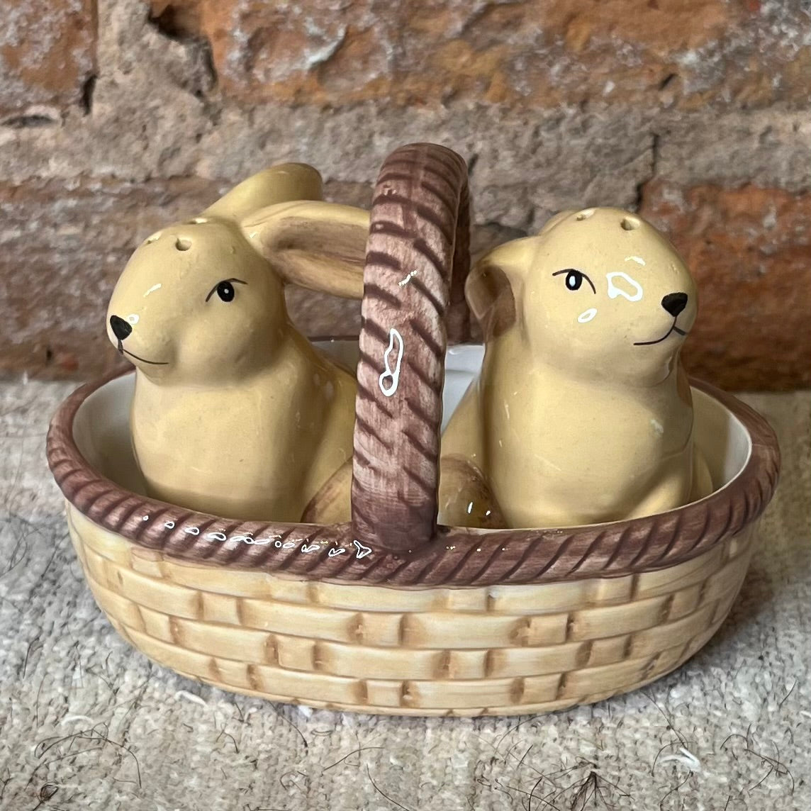This Bunny/Basket Salt + Pepper Shaker is a charming addition to any kitchen. The 4” x 3” basket comes with 2 adorable bunnies, perfect for adding a touch of whimsy to your dining experience. Crafted with expert precision, this shaker set is both functional and decorative.