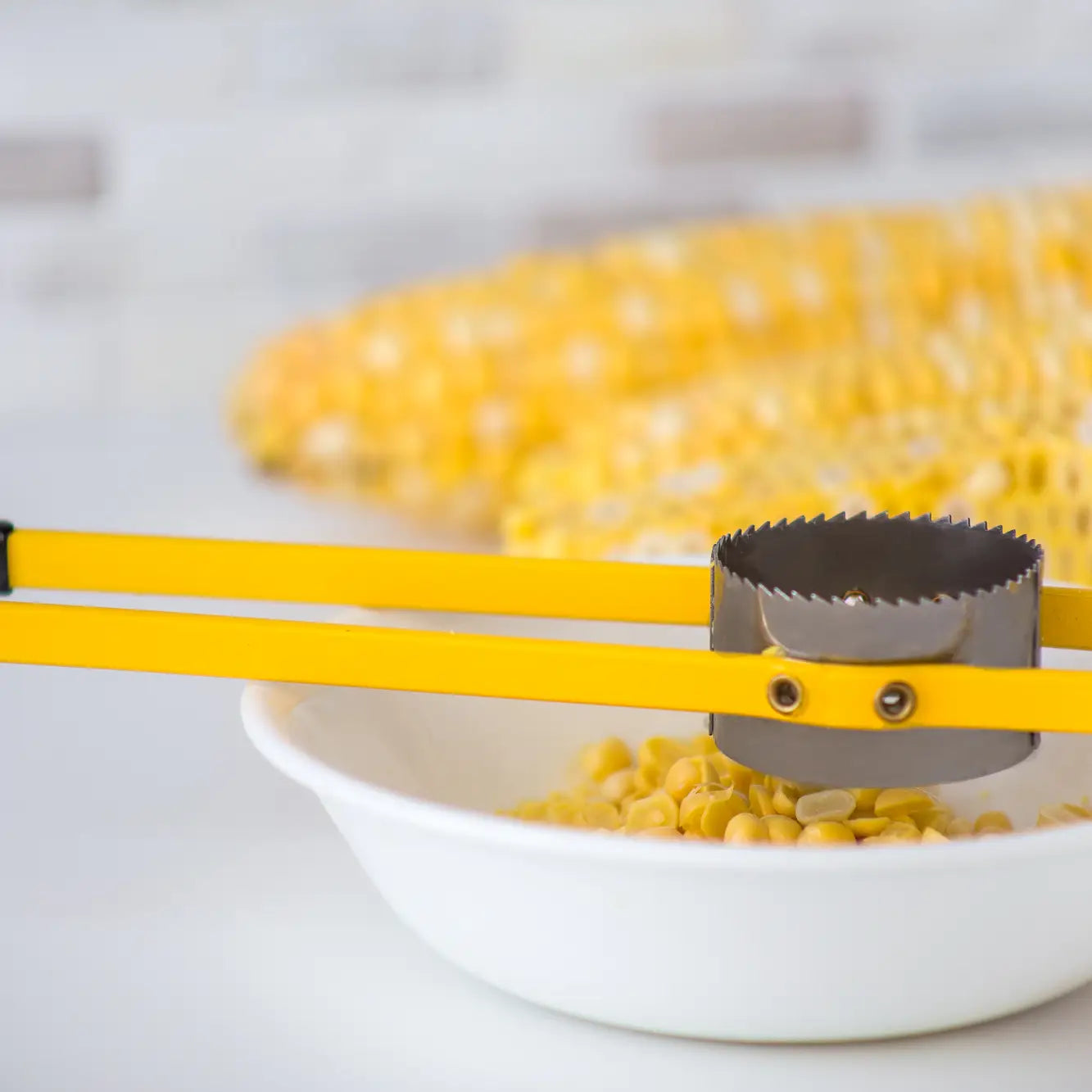 Love the fresh taste of corn on the cob, but prefer eating it off the cob? The Corn Stripper strips ears with ease! Safer and quicker to use than a knife, simply stand the cob up, position the cutter over the top and press down. The featured sharp serrated blade quickly separates kernels in seconds at their base to retain their full size flavor and nutrient. The PVC-coated handles offer a sure grip for safe use. Spend less time prepping your meal and more time enjoying it.