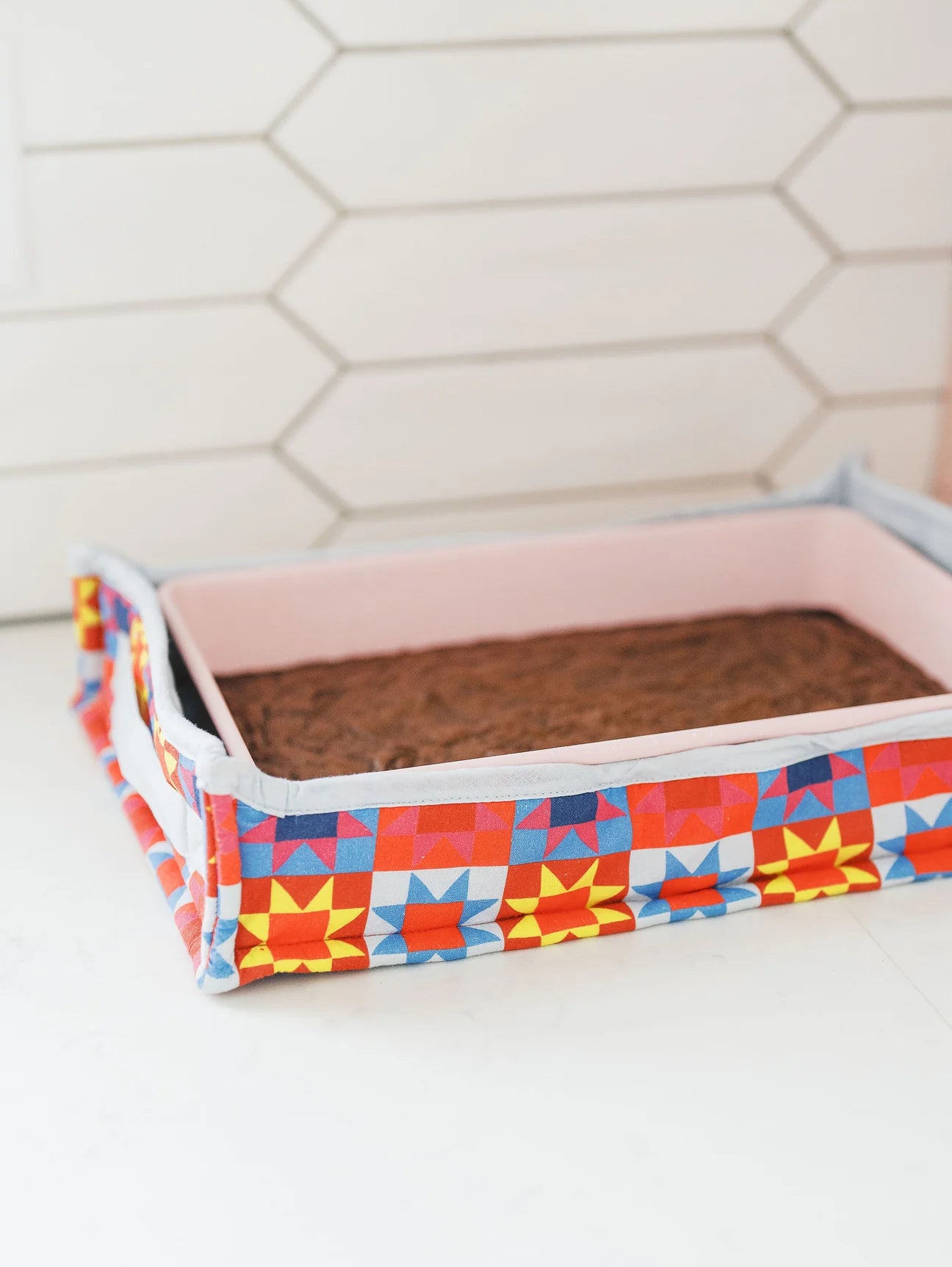 Bake & Take in Style! Transport your favorite dishes with ease in this casserole carrier Inspired by our tried and true bowl besties! Not only is it a cute carrier for transport but doubles as a cute cover for the dish to be displayed in.  Featuring a charming quilt-inspired floral print, it’s insulated, durable, and perfect for potlucks, picnics, and family gatherings.