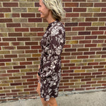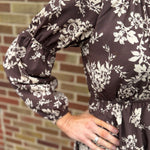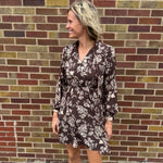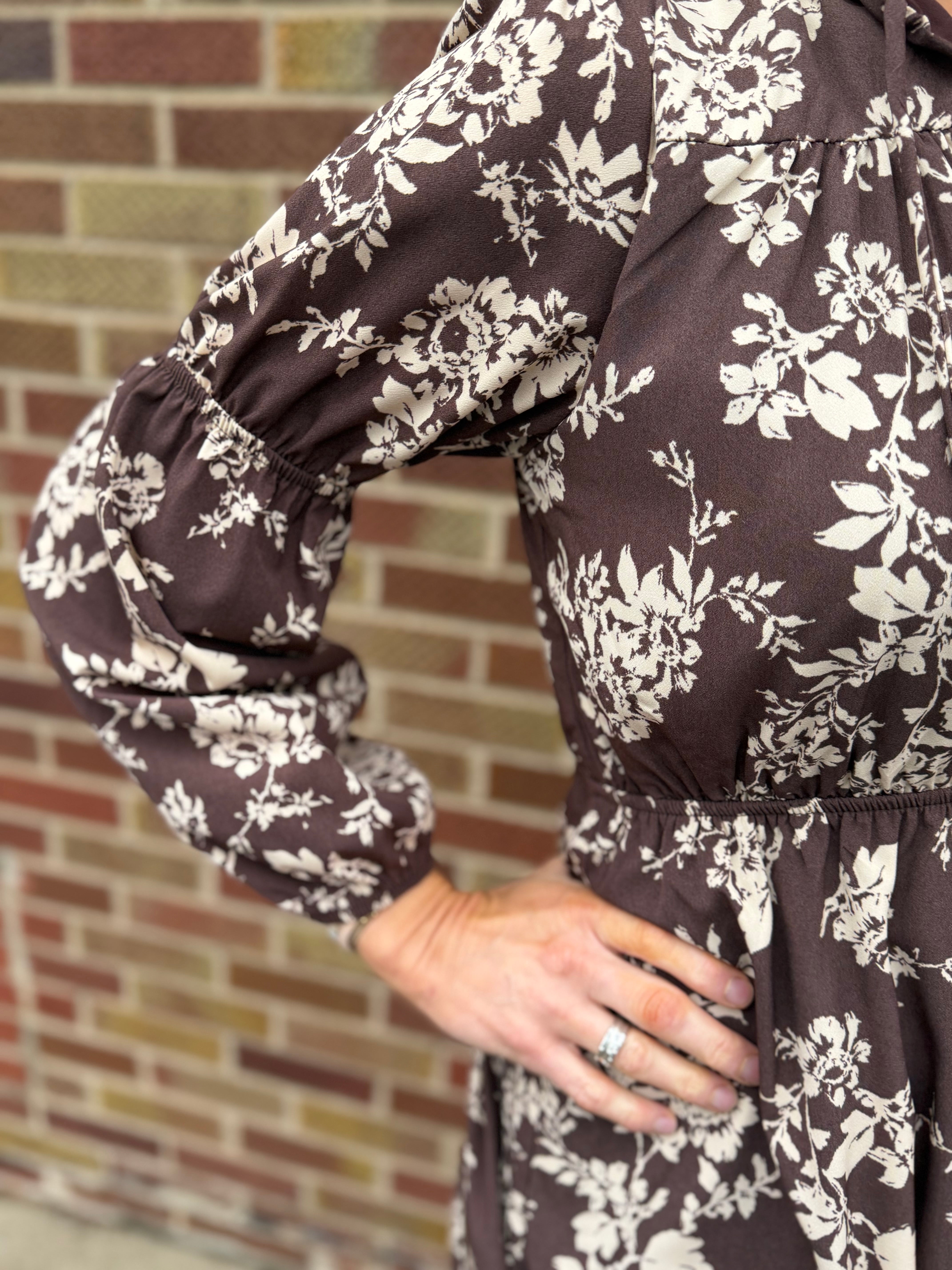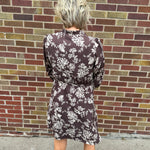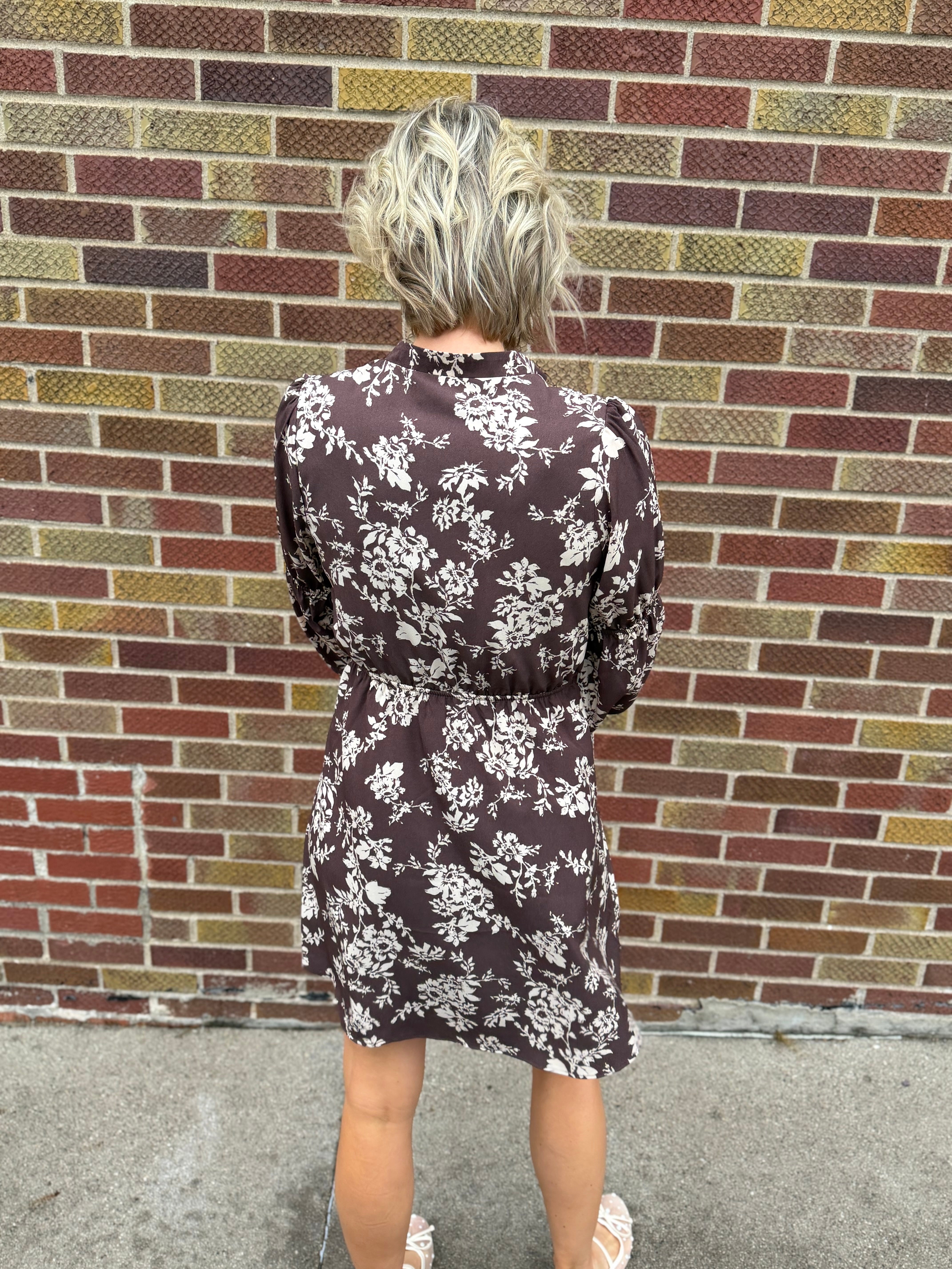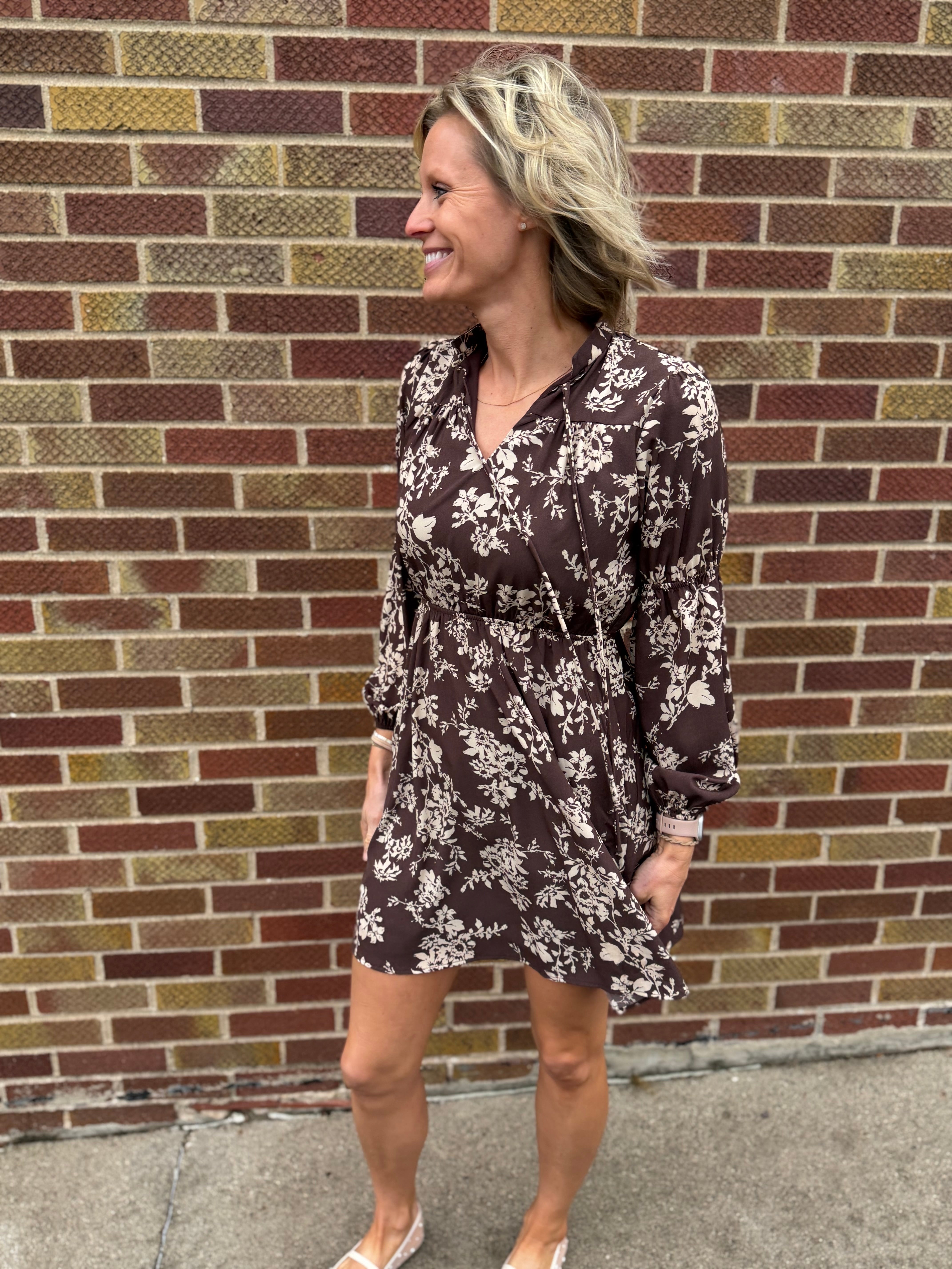 Front Tie Puff Long Sleeve Floral Mini Dress