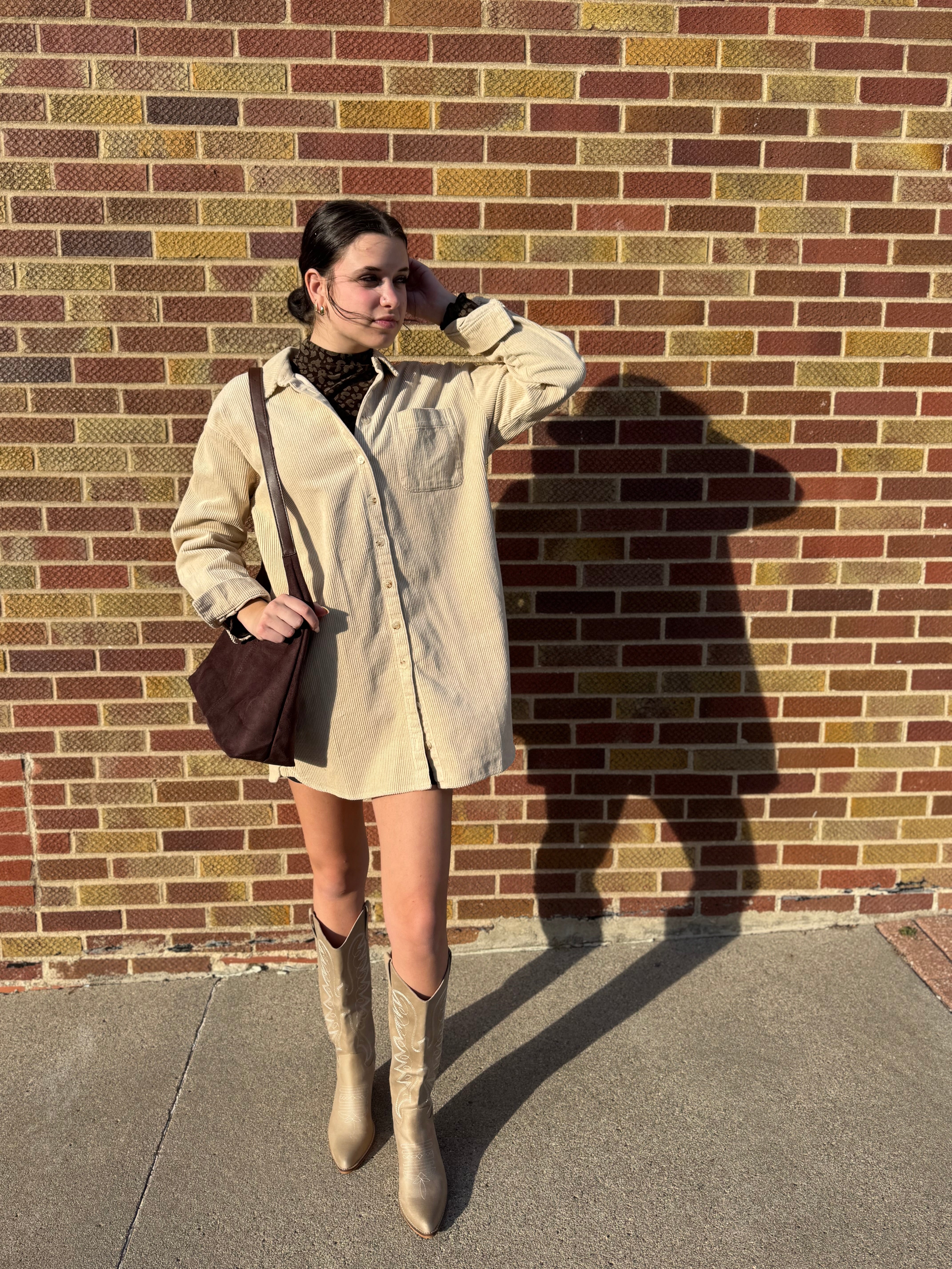 Bring cozy charm to your wardrobe with this Long Sleeve Corduroy Dress. Its soft, textured fabric keeps you snug while the playful silhouette moves with you from day to night. Perfect for layering or rocking solo, this dress adds vintage flair and comfy confidence to any look.