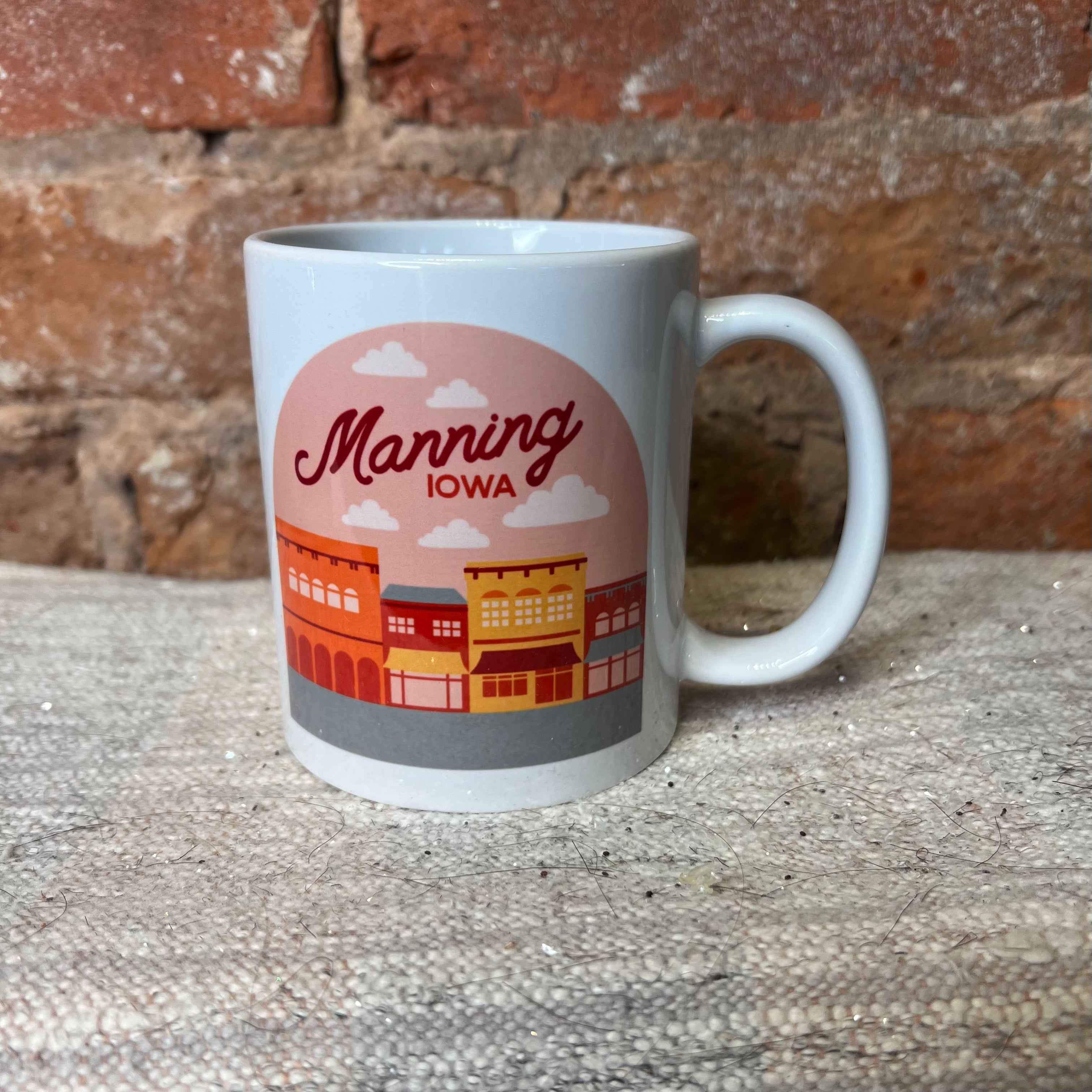 Start your day with a splash of color and hometown pride! This white mug features a cheerful pink and orange design that brightens every sip. Perfect for cozy mornings or sharing a smile with friends, it’s a fun way to celebrate Small Town/Manning IA wherever you are.