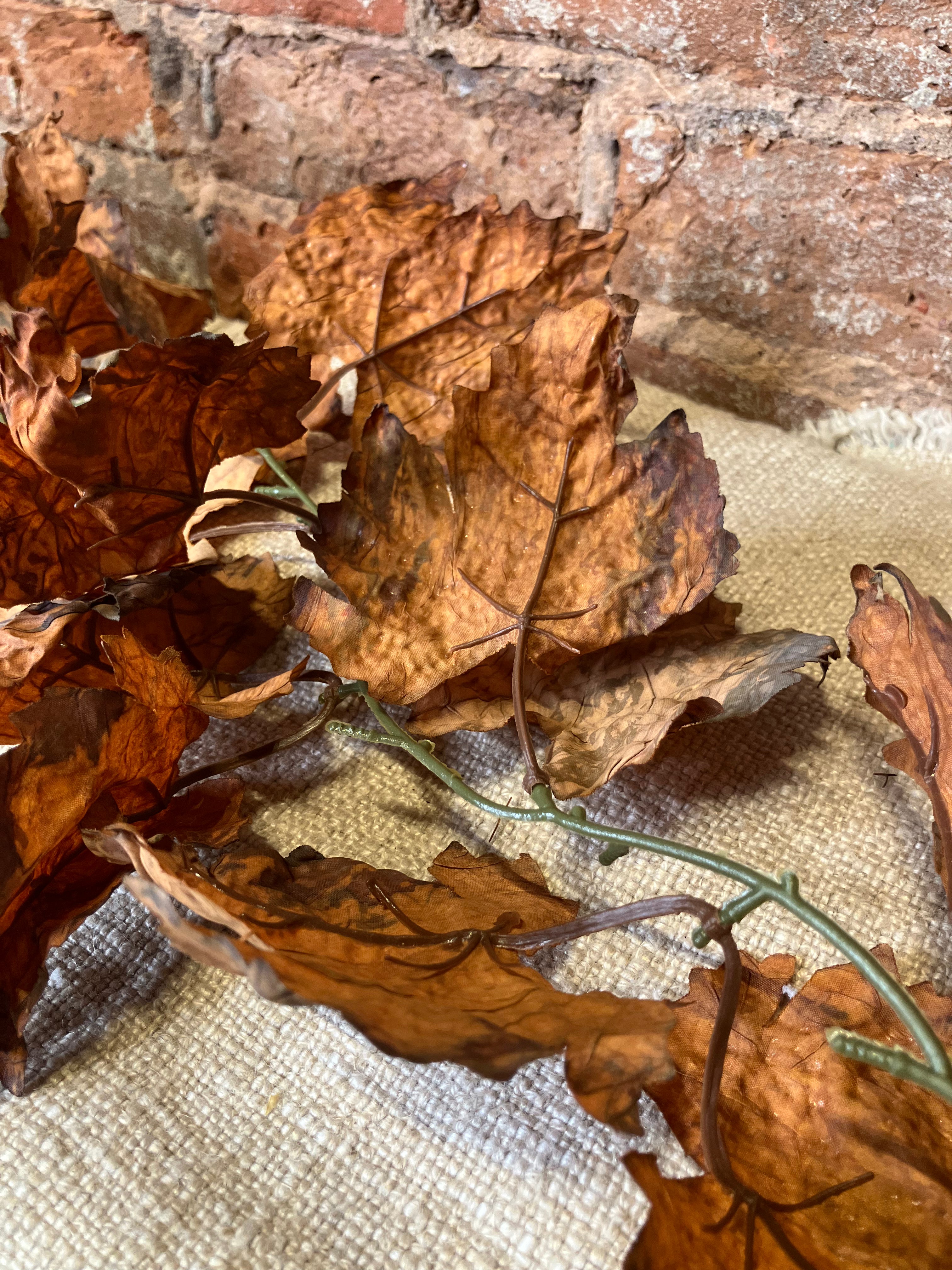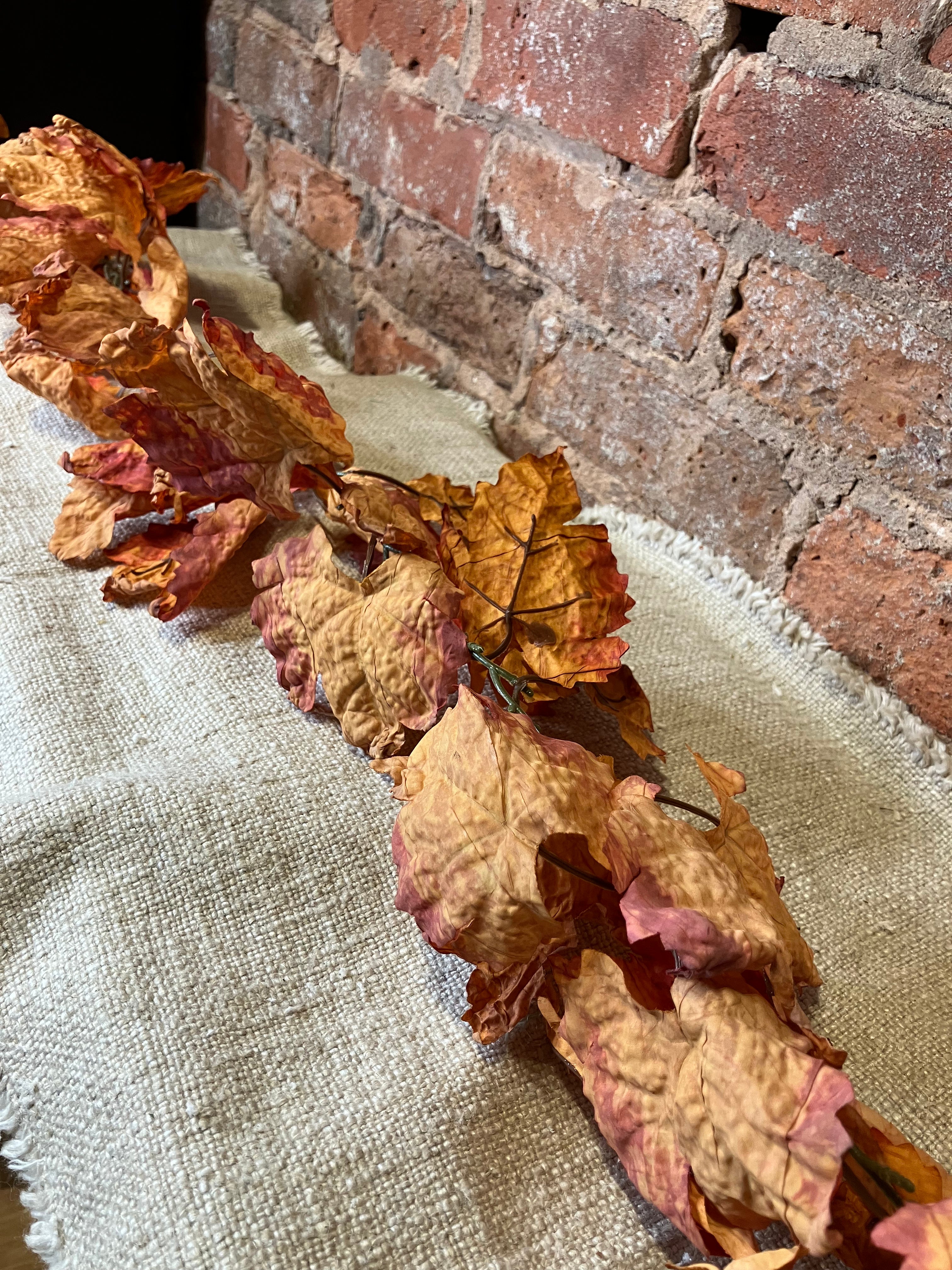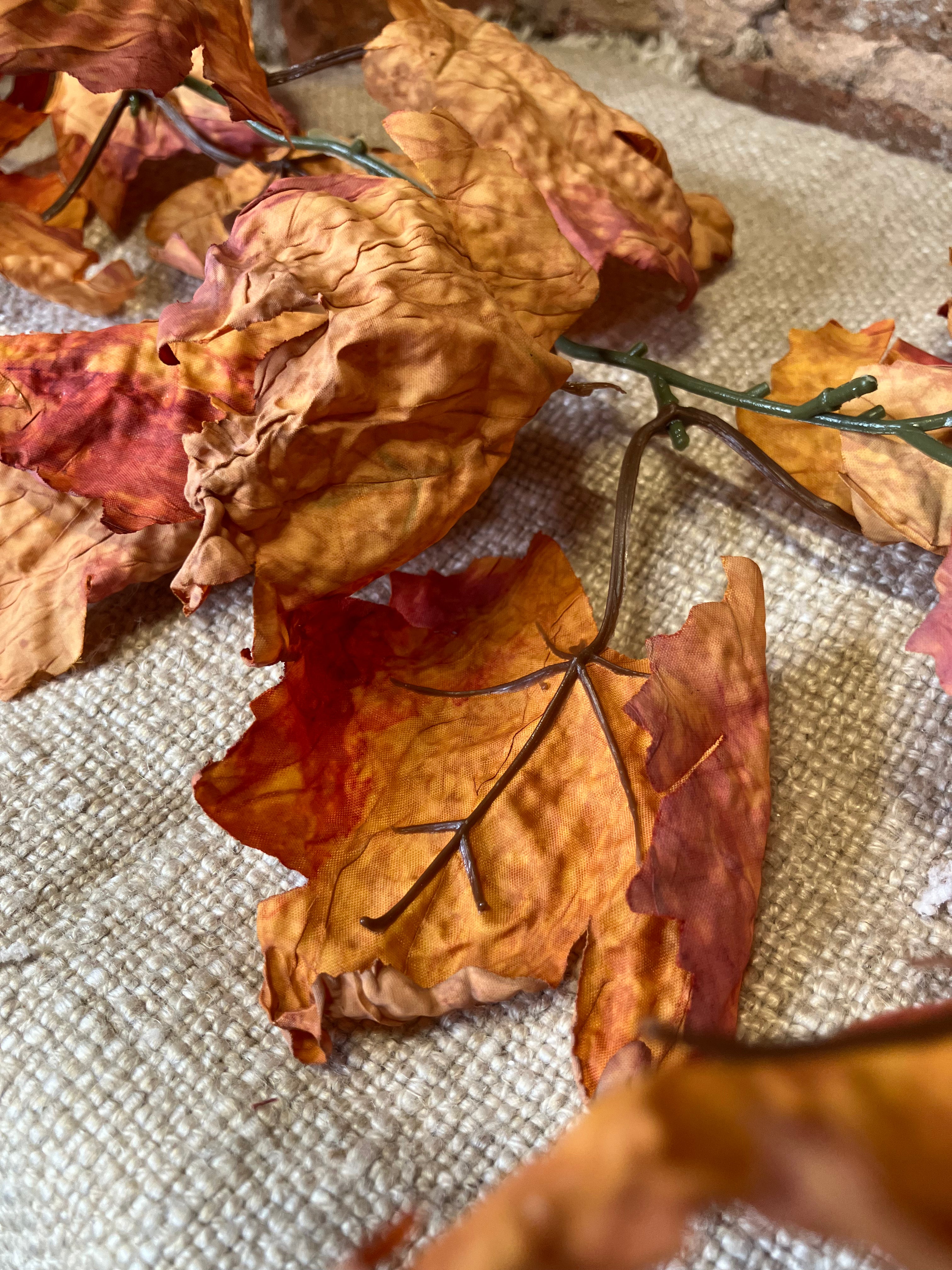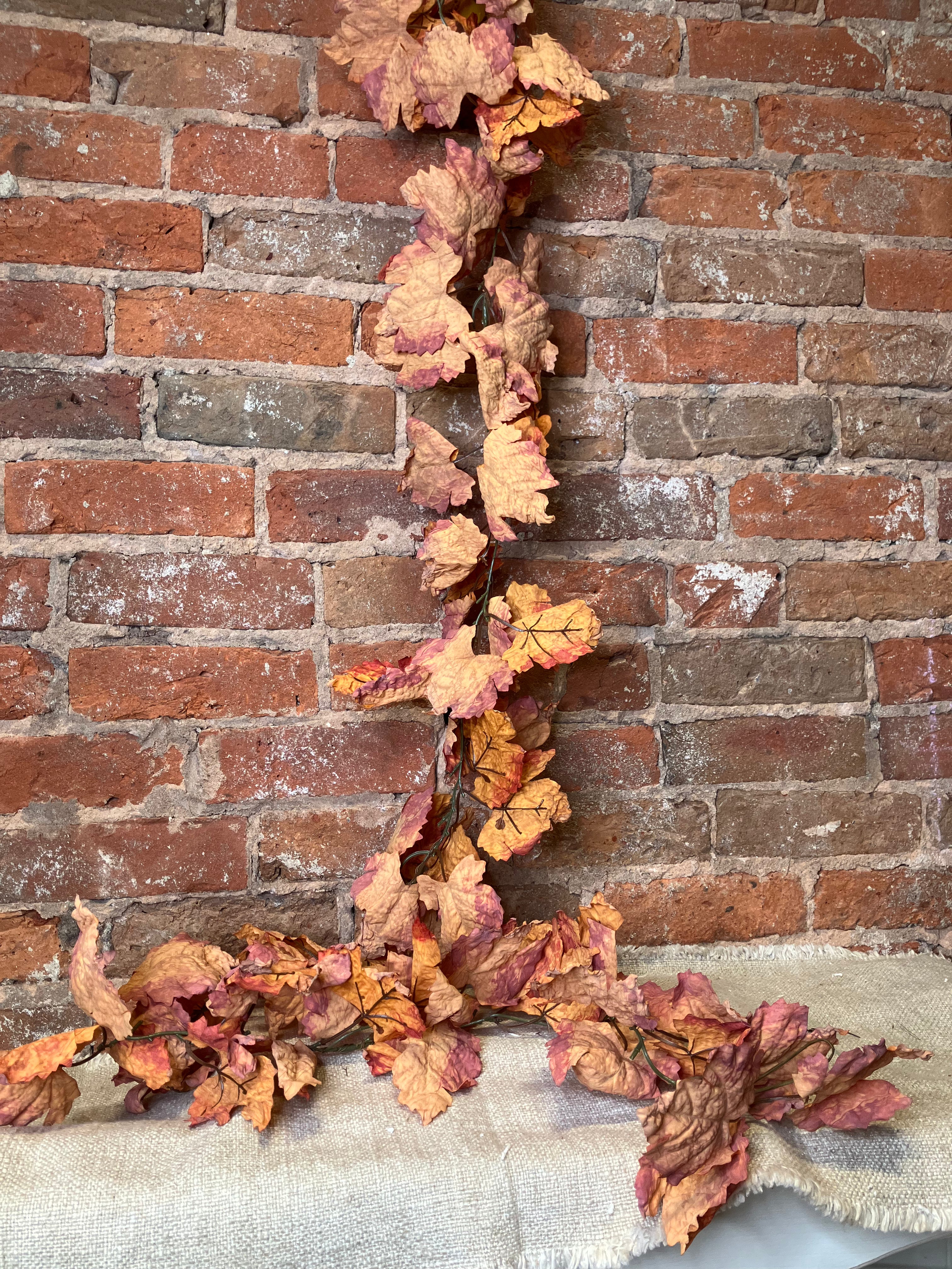 Add a touch of autumn magic with this 72” Faux Leaf Garland in vibrant orange and warm brown hues. Realistically designed to mimic the beauty of fall foliage, it’s perfect for sprucing up your space with cozy, festive vibes. Easy to drape anywhere, this garland brings a playful burst of seasonal charm without any of the cleanup!
