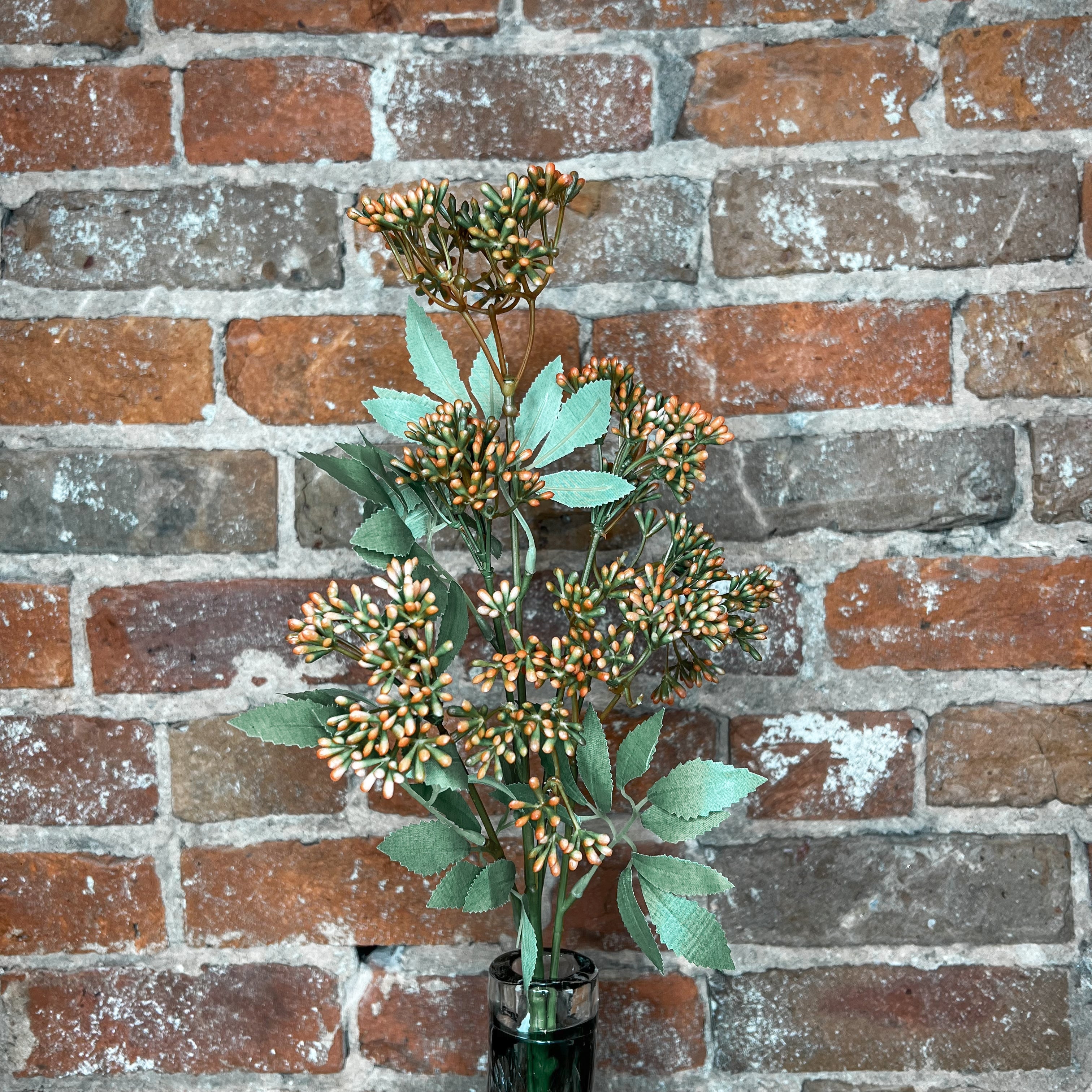 Enhance your home decor with our Rust Seed Berry Spray, measuring 32 inches tall. The rich rust color brings a touch of warmth and nature to any space. Made of high quality materials, this spray is a perfect addition to your seasonal or year-round arrangements.