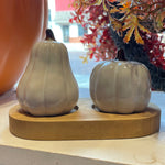 Stoneware Pumpkin Salt & Pepper Shaker w/ Wood Tray 6x3.25”