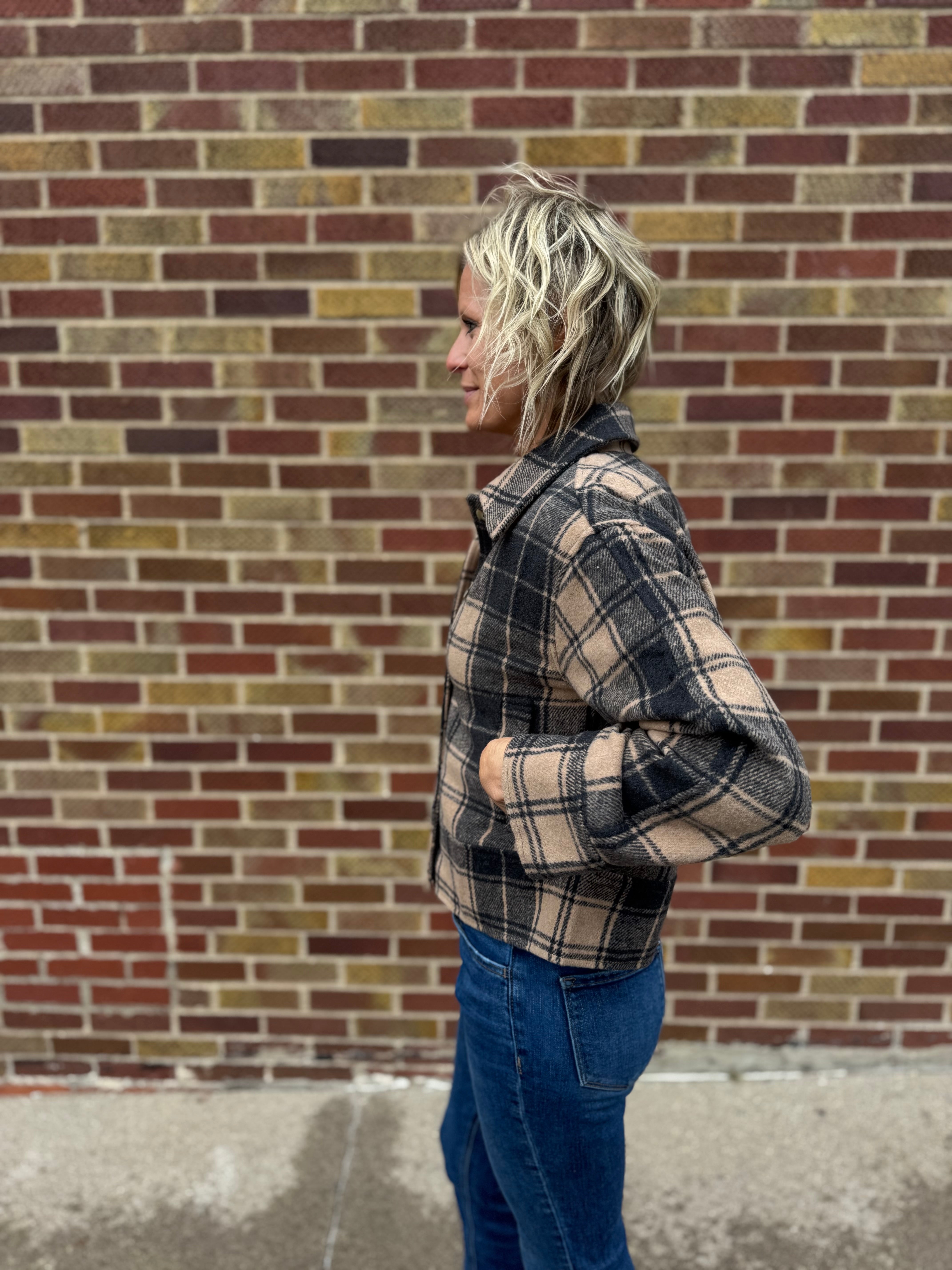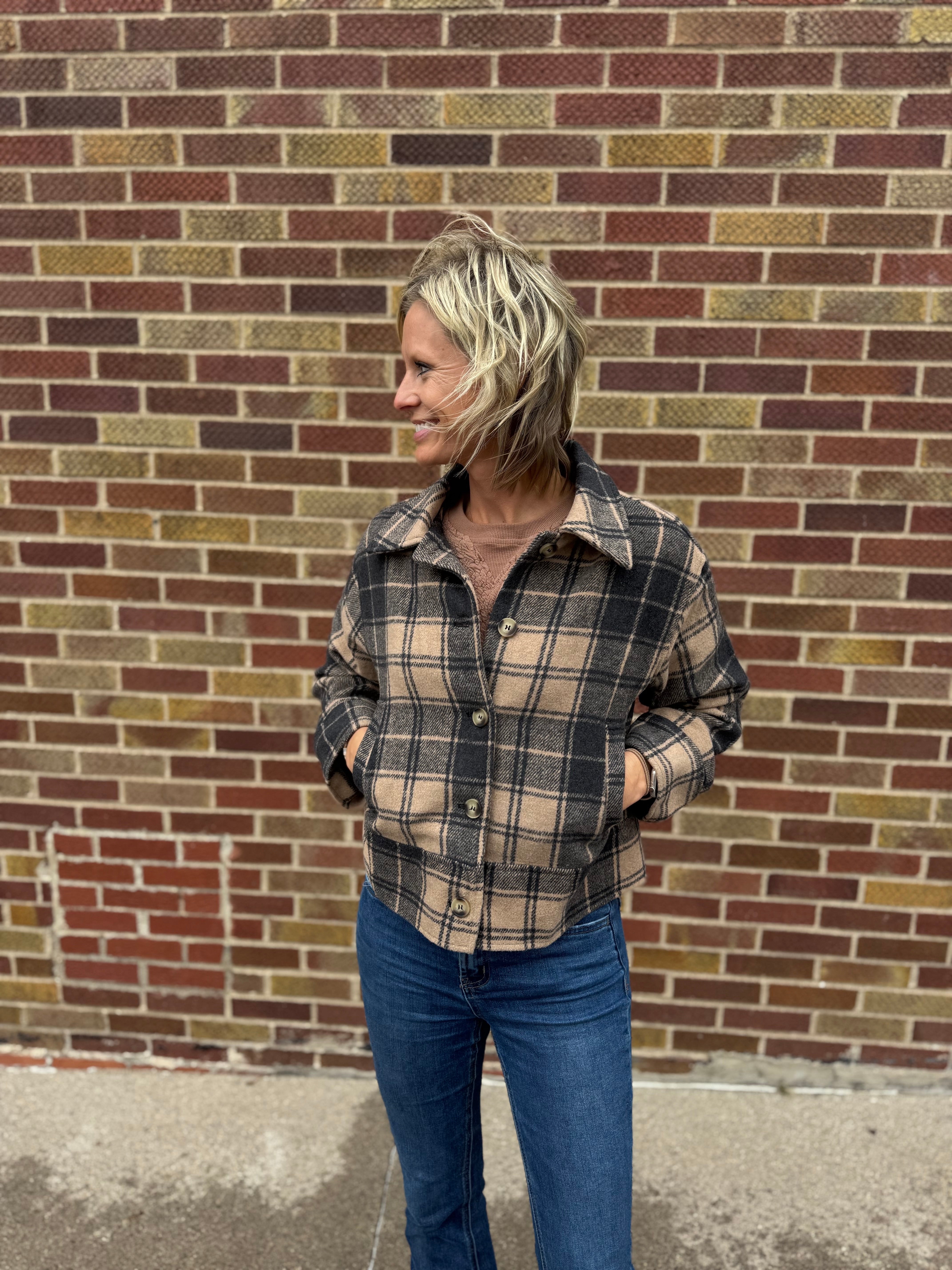 Embrace fall vibes with the Cropped Plaid Button Down Jacket! Cozy and perfect for the season, this playful jacket has handy pockets and a flattering cropped fit. Add a splash of autumn charm to your wardrobe and stay snug while turning heads!