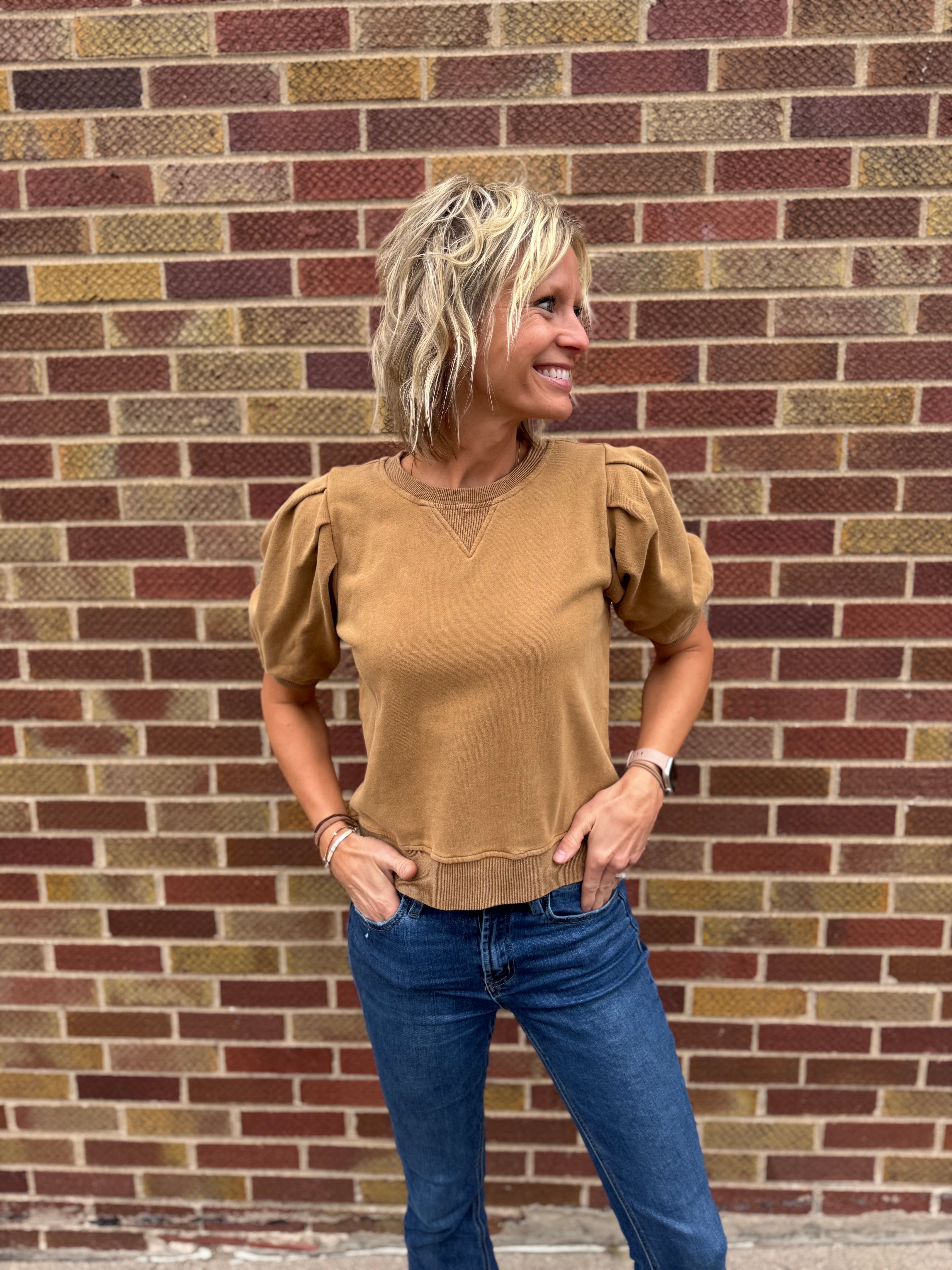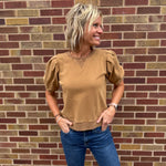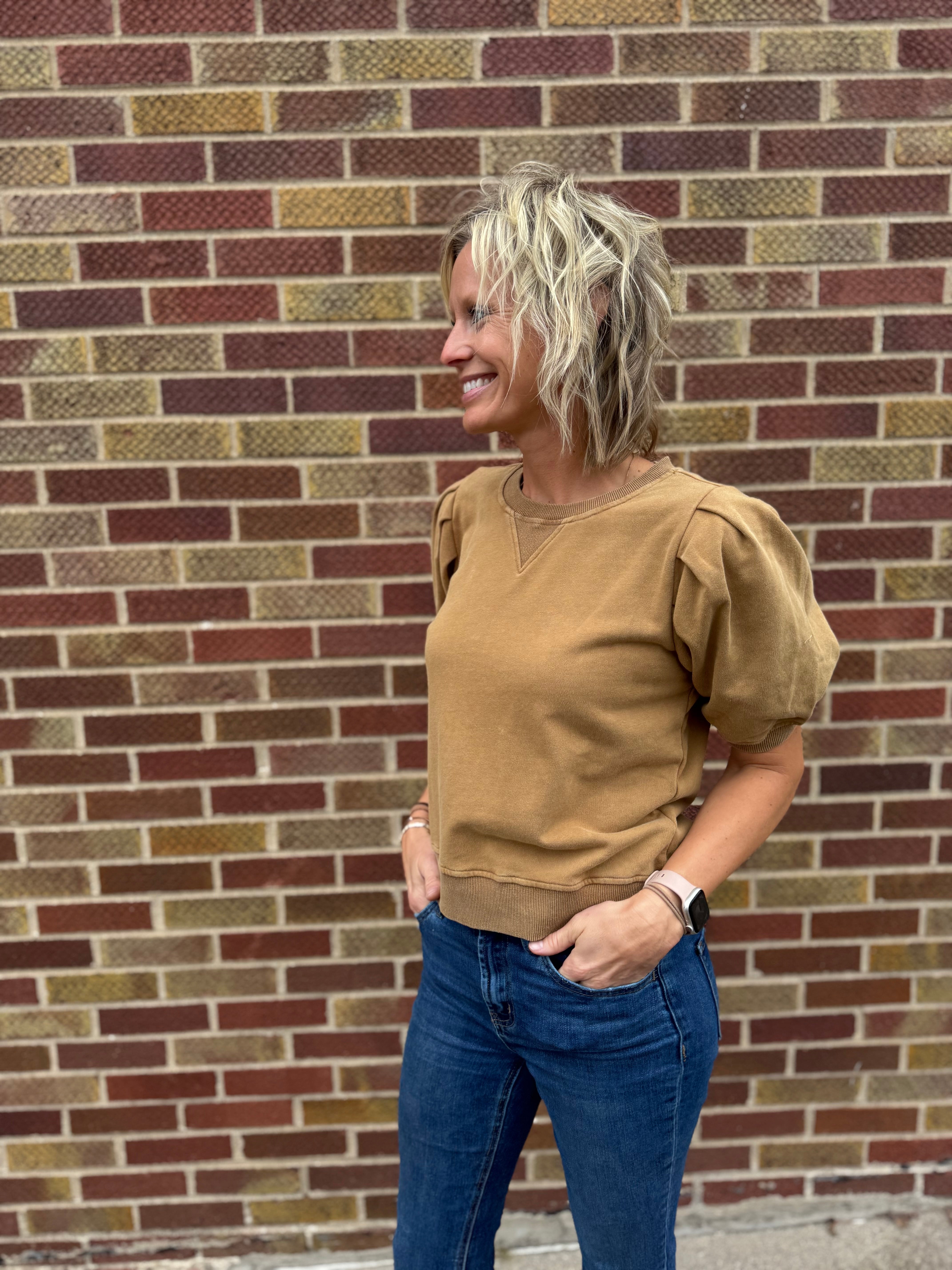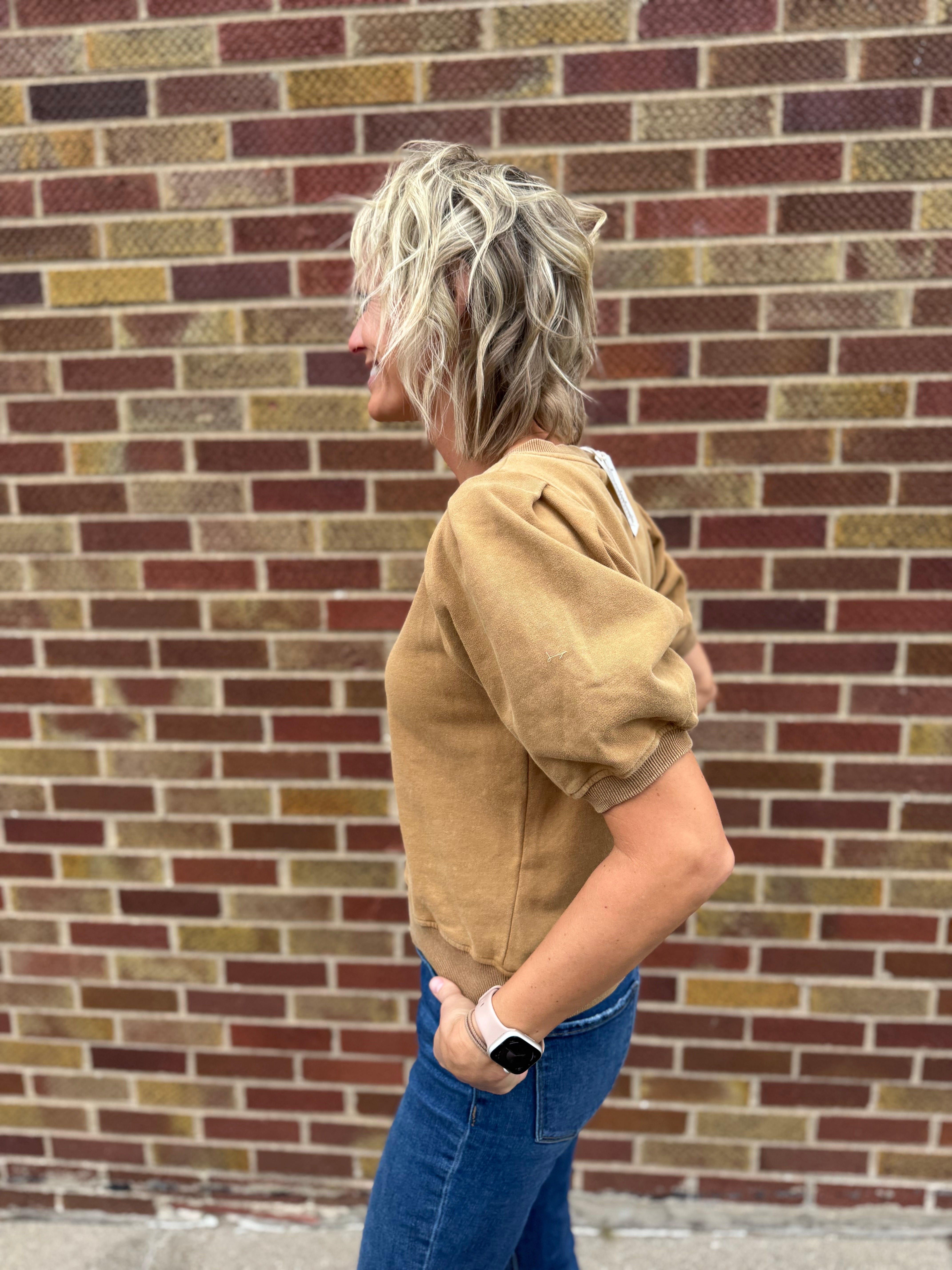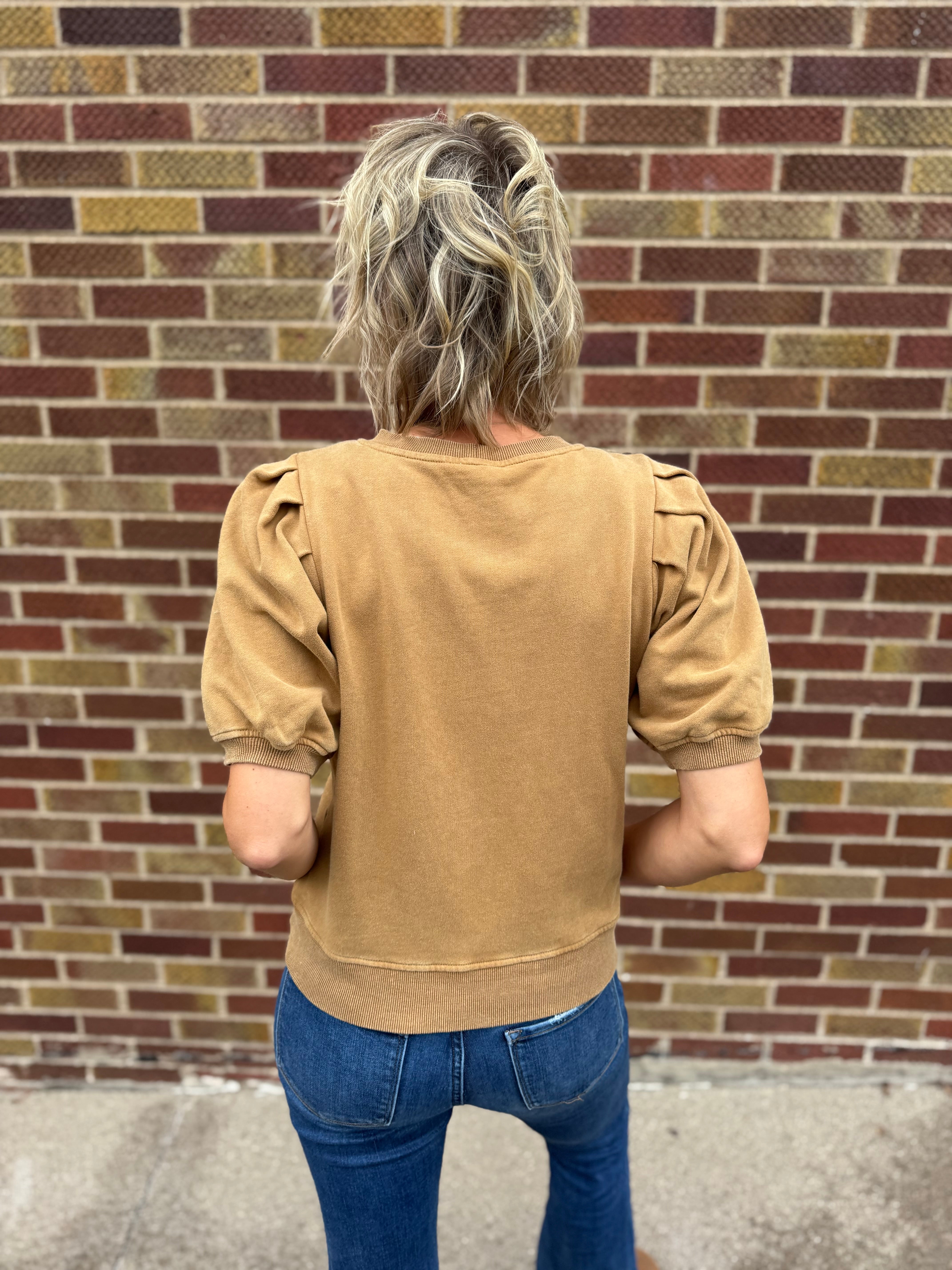 Pleated Sleeve Cotton Washed Top
