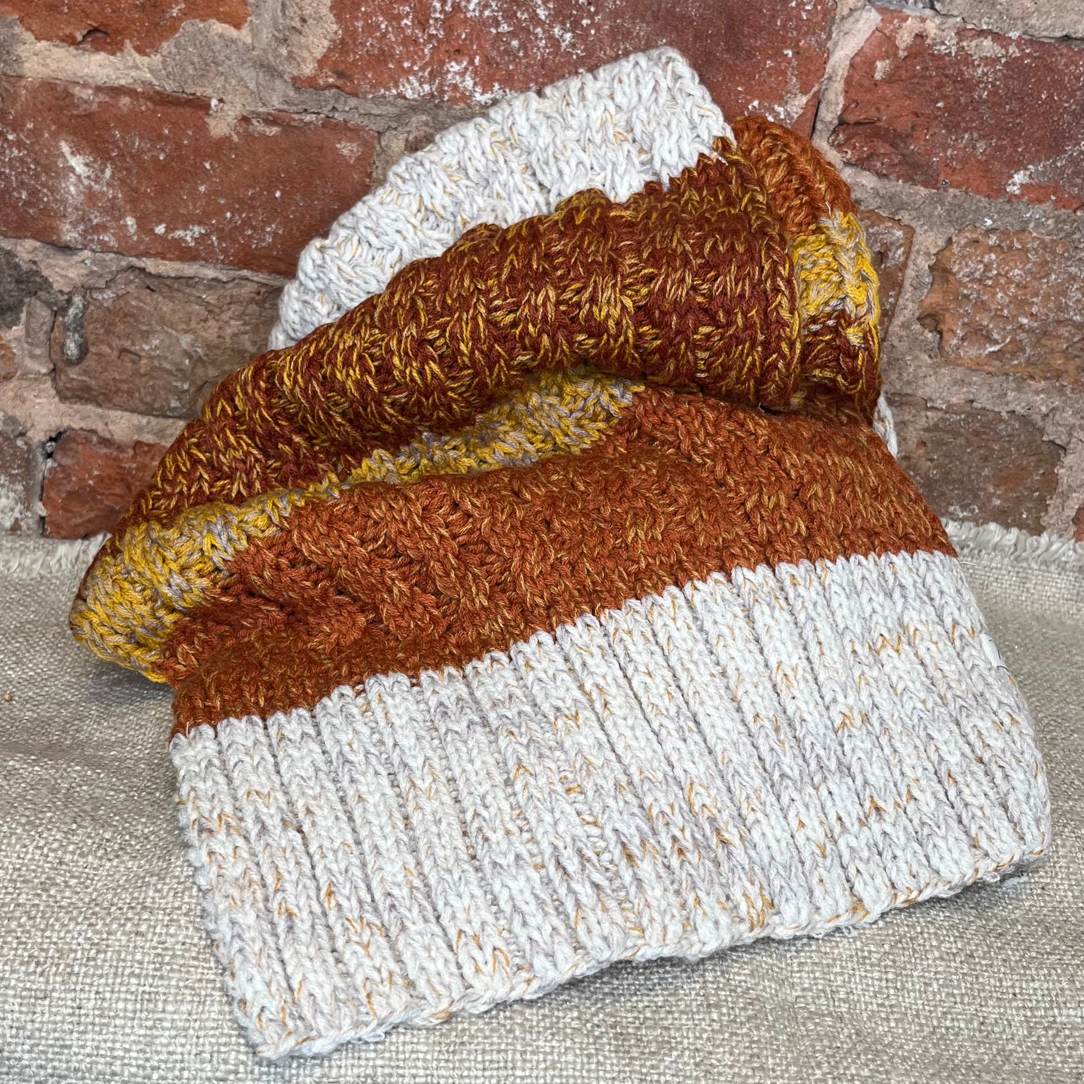 Crafted from a soft blend of 68% polyester and 32% acrylic, the School Days Scarf combines durability with comfort. Available in two refined color options—cider, cream, and gold or blue, olive, and gold—this scarf offers versatile style for cooler days. Designed for easy care, it should be hand washed and laid flat to dry to maintain its quality and shape. Ideal for adding a polished touch to your ensemble while providing warmth and lasting wear.