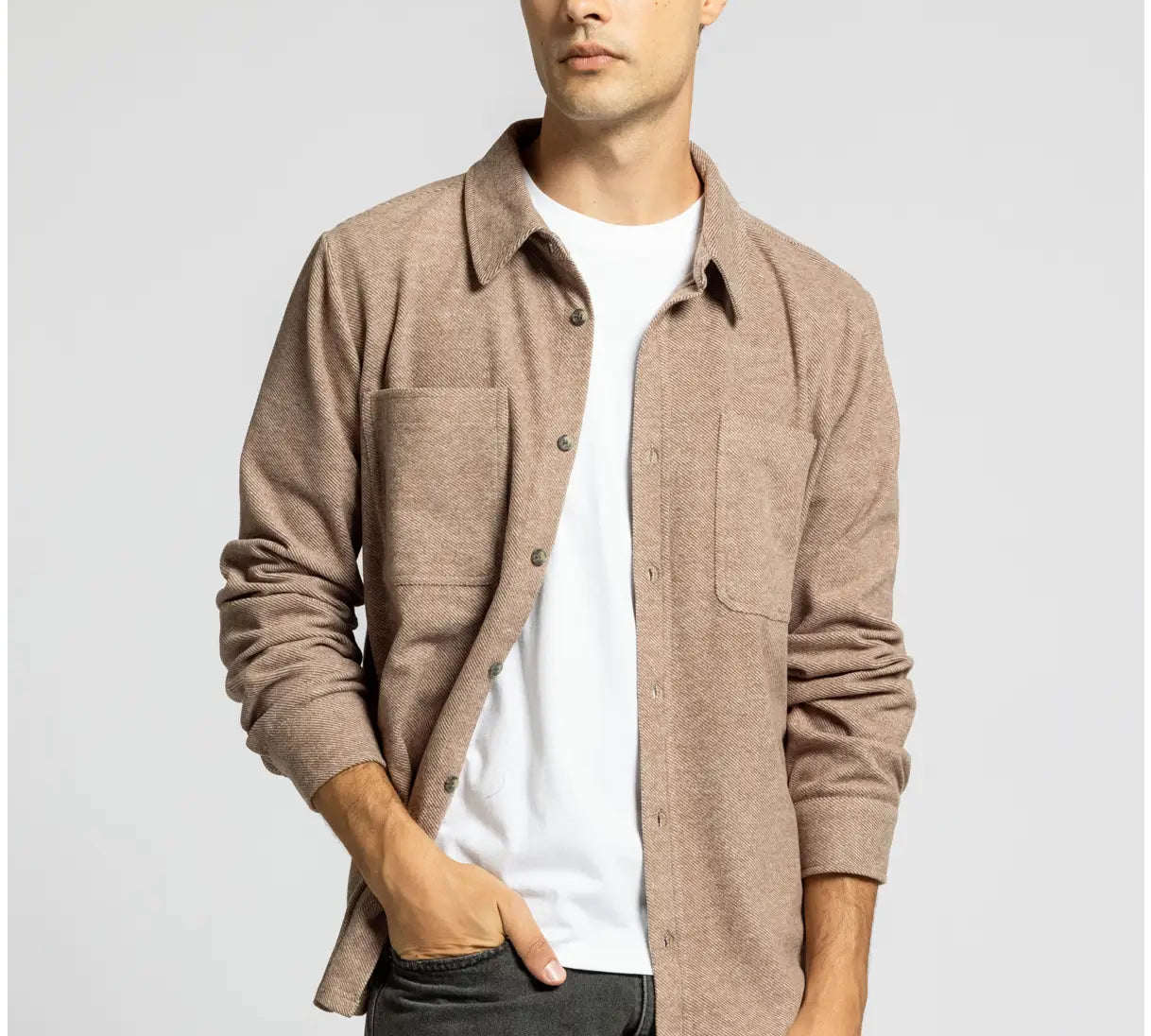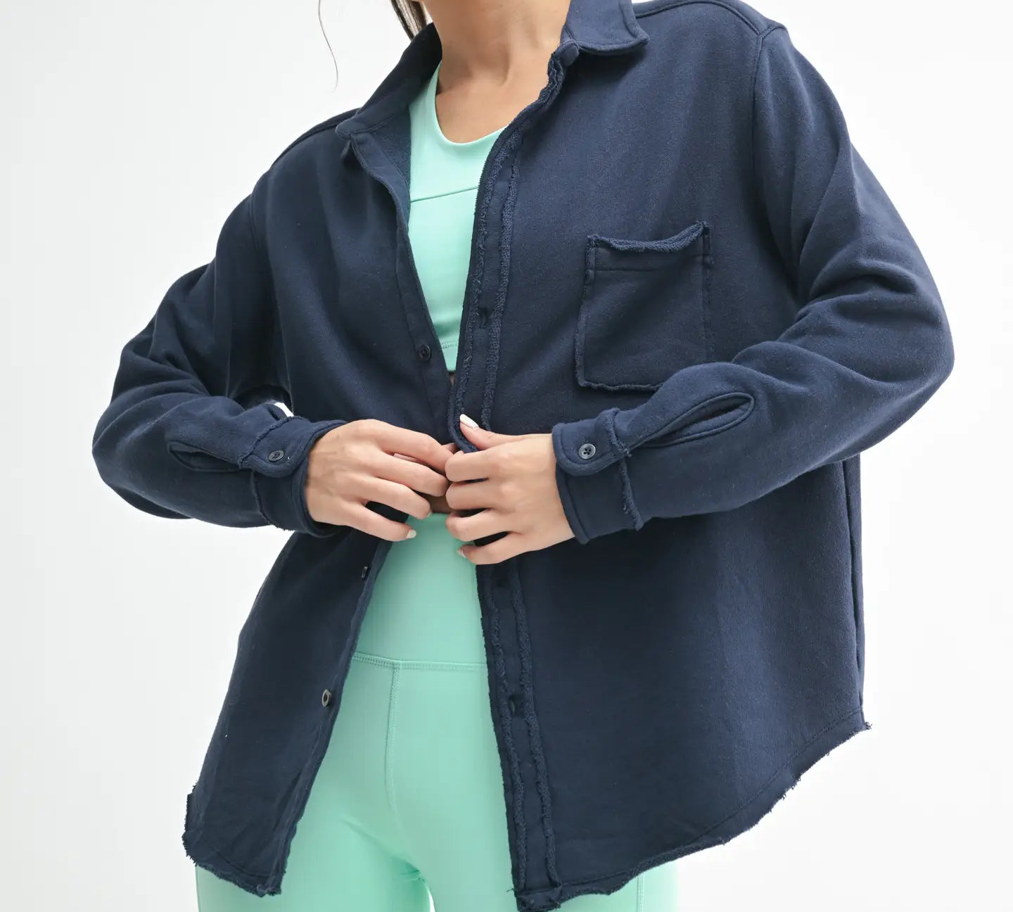Raw Edge Cotton Button Down Shacket