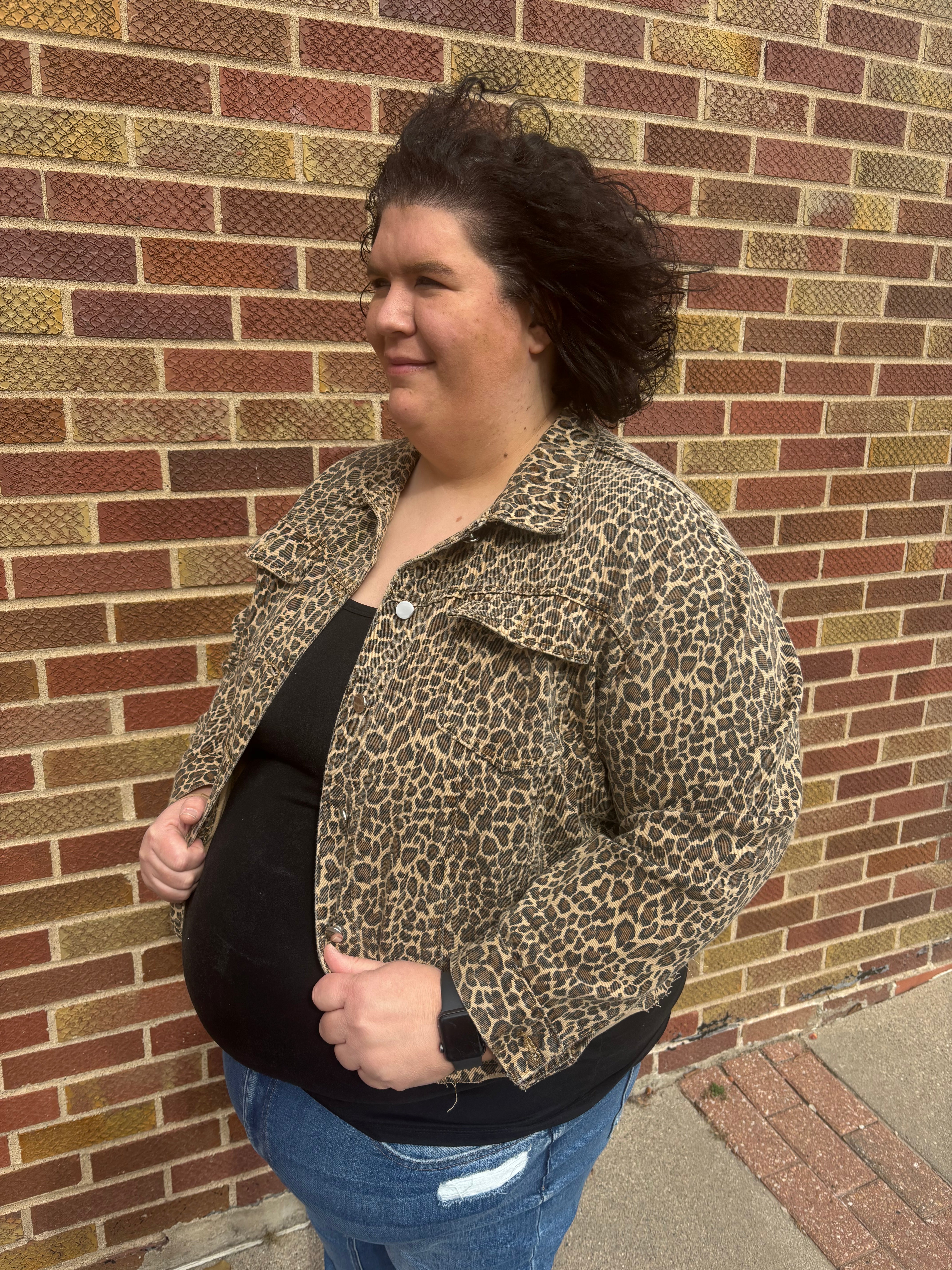 Plus Button Down Leopard Jacket