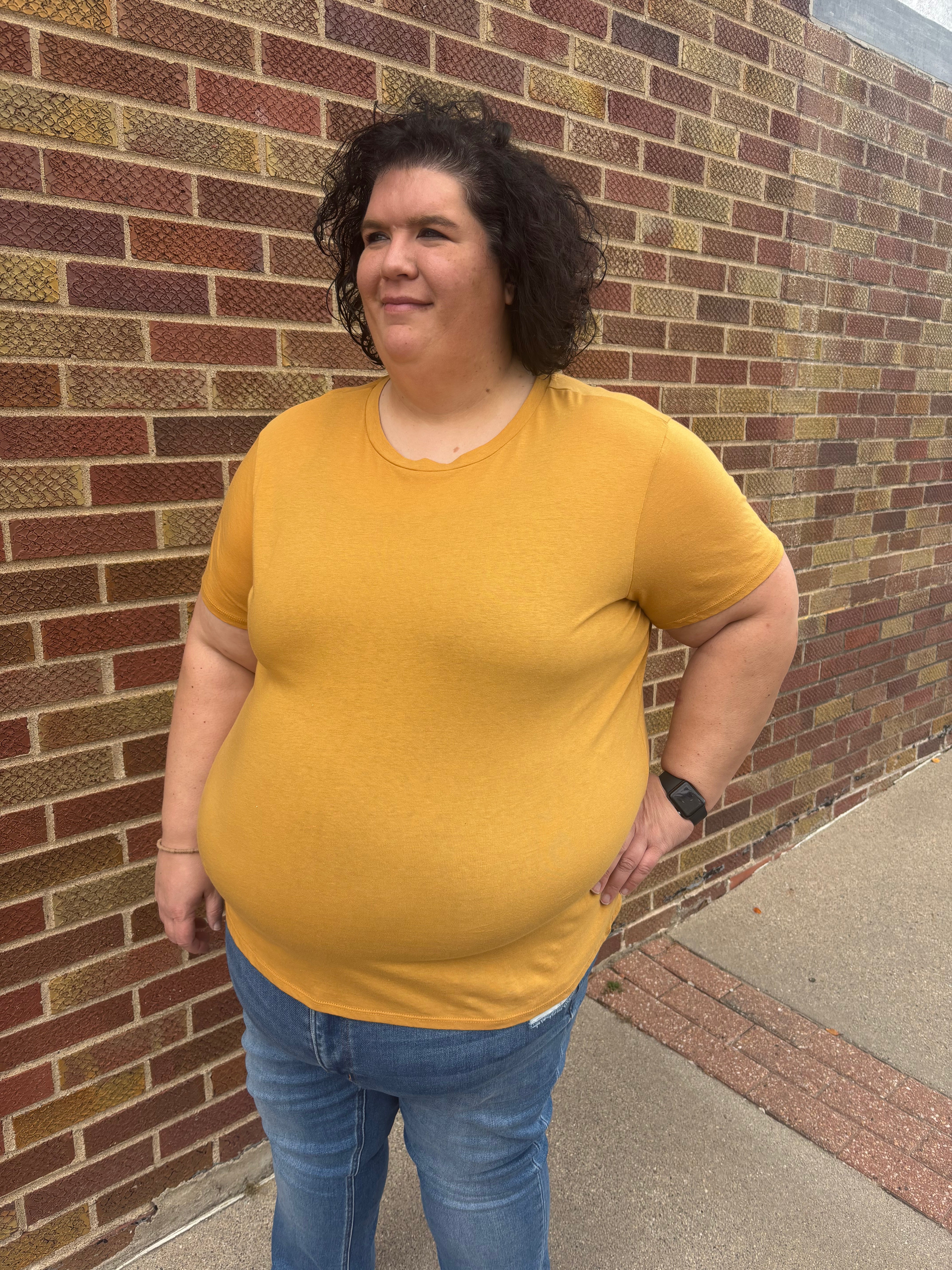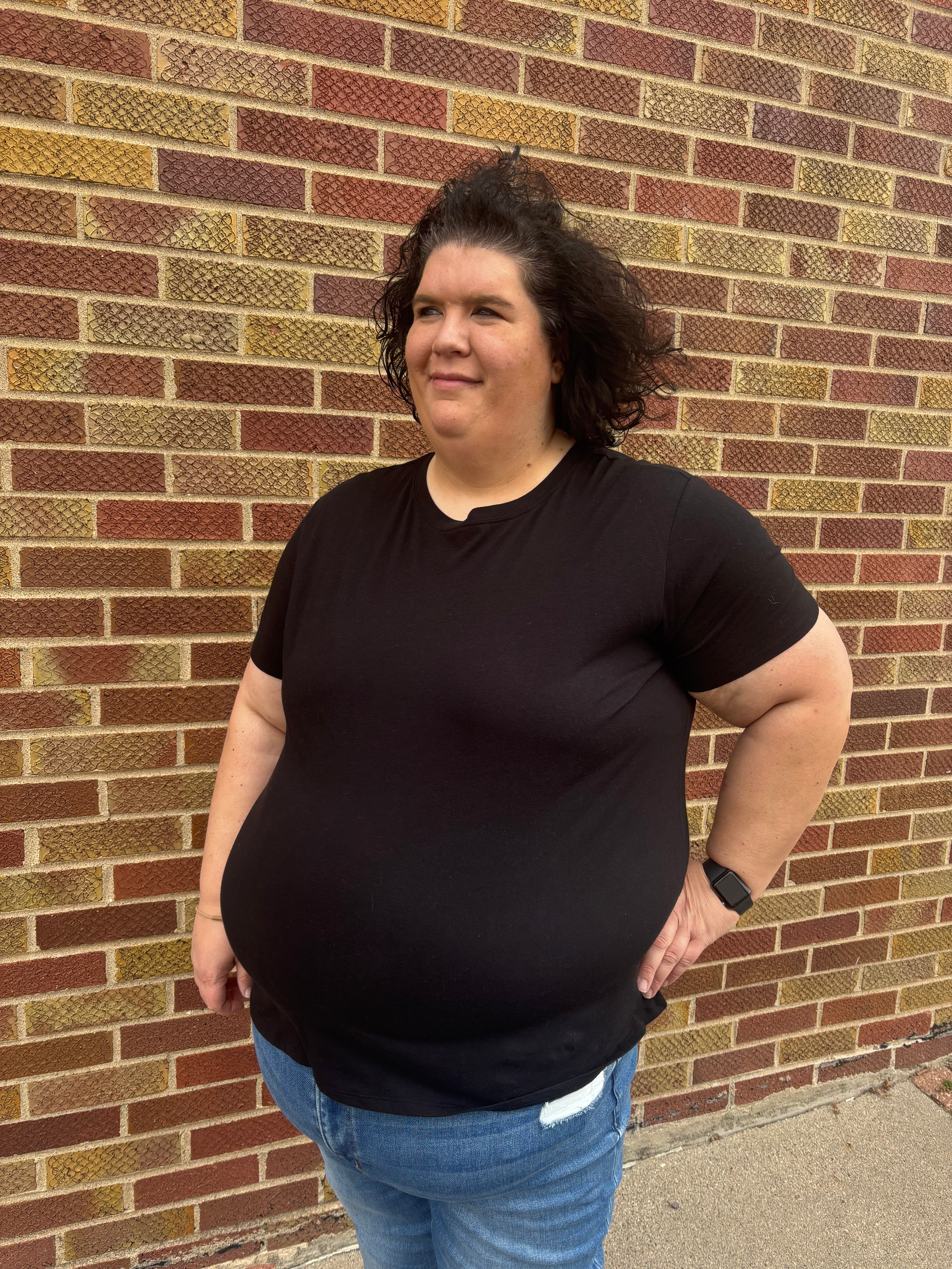 This versatile basic tee is a must-have in any wardrobe. With its short sleeves and round neck, it's perfect for any occasion. Don't miss out on this essential piece that offers both comfort and style.