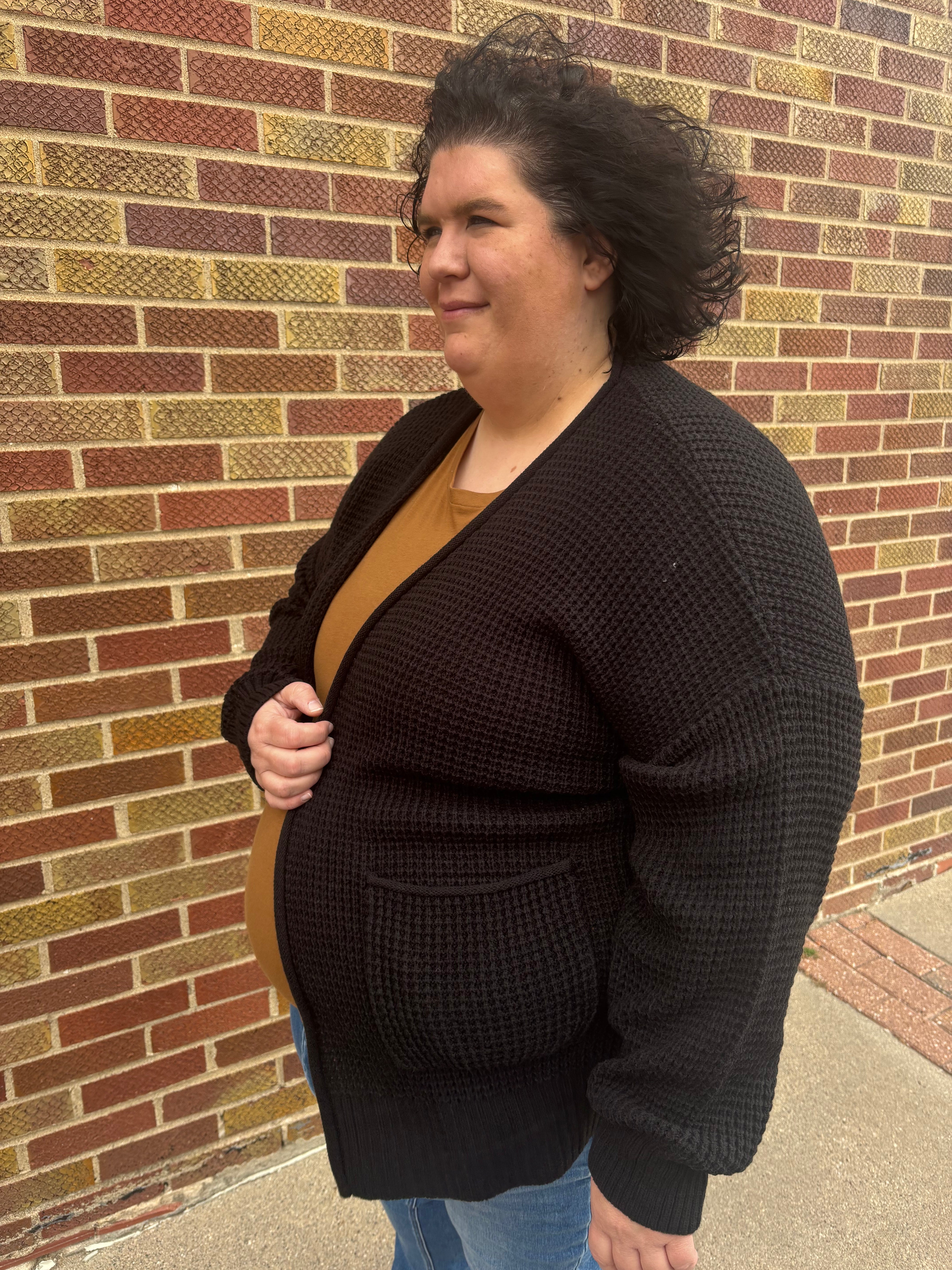 Cozy up in the Plus Waffle Cardigan Sweater, your new go-to for effortless comfort and style. Its soft waffle-knit fabric wraps you in warmth while adding a fun texture to your outfit. Get ready to snuggle up and step out in comfort!