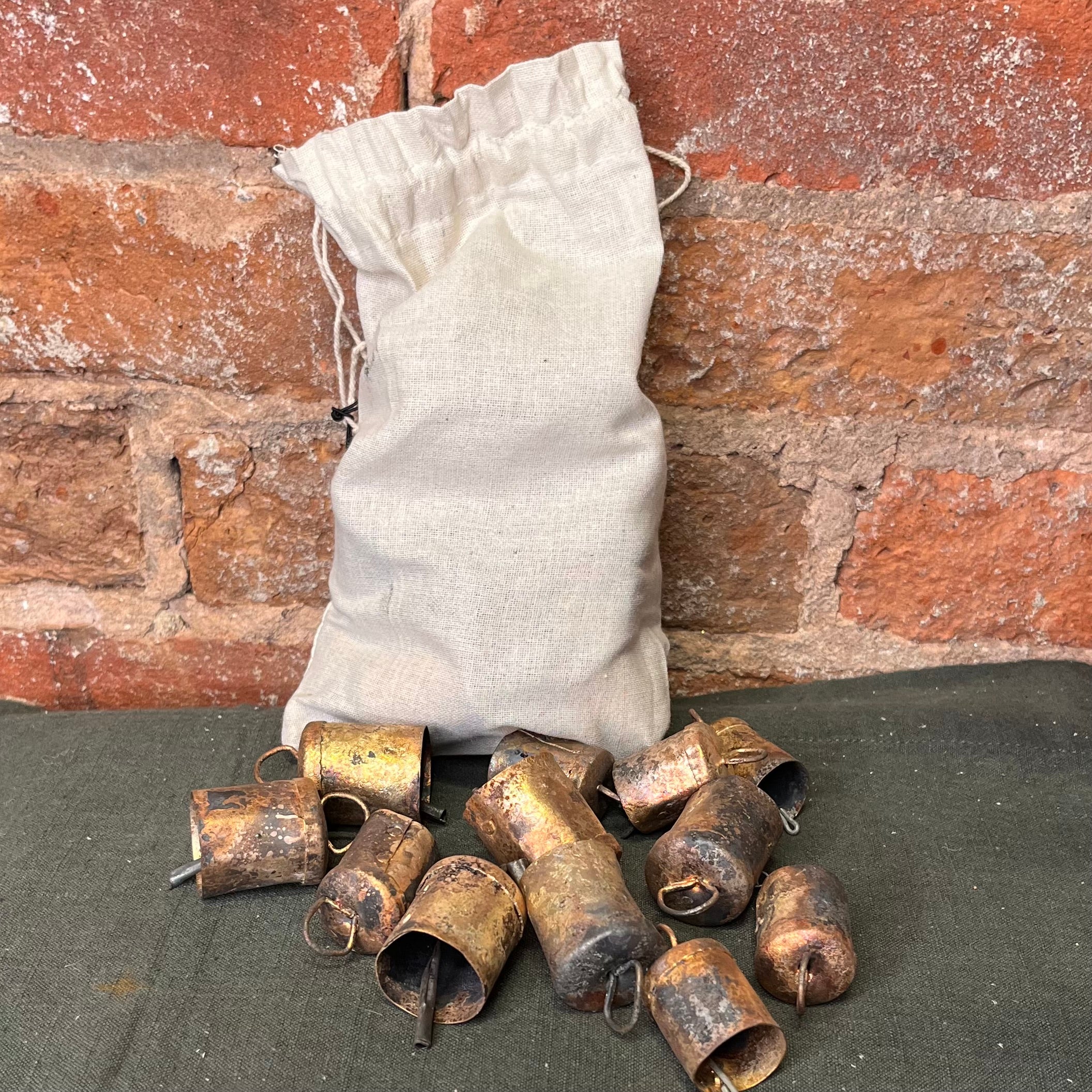 1” Distressed Gold Metal Bell Orns in Bag of 24