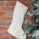 Add a pop of color and charm with this cotton slub stocking, featuring playful hand-embroidered Kantha stitches in red or green. Crafted from soft, breathable cotton, this 20” stocking brings cozy comfort and festive flair to any holiday décor. Perfect for hanging by the hearth or gifting with a smile!