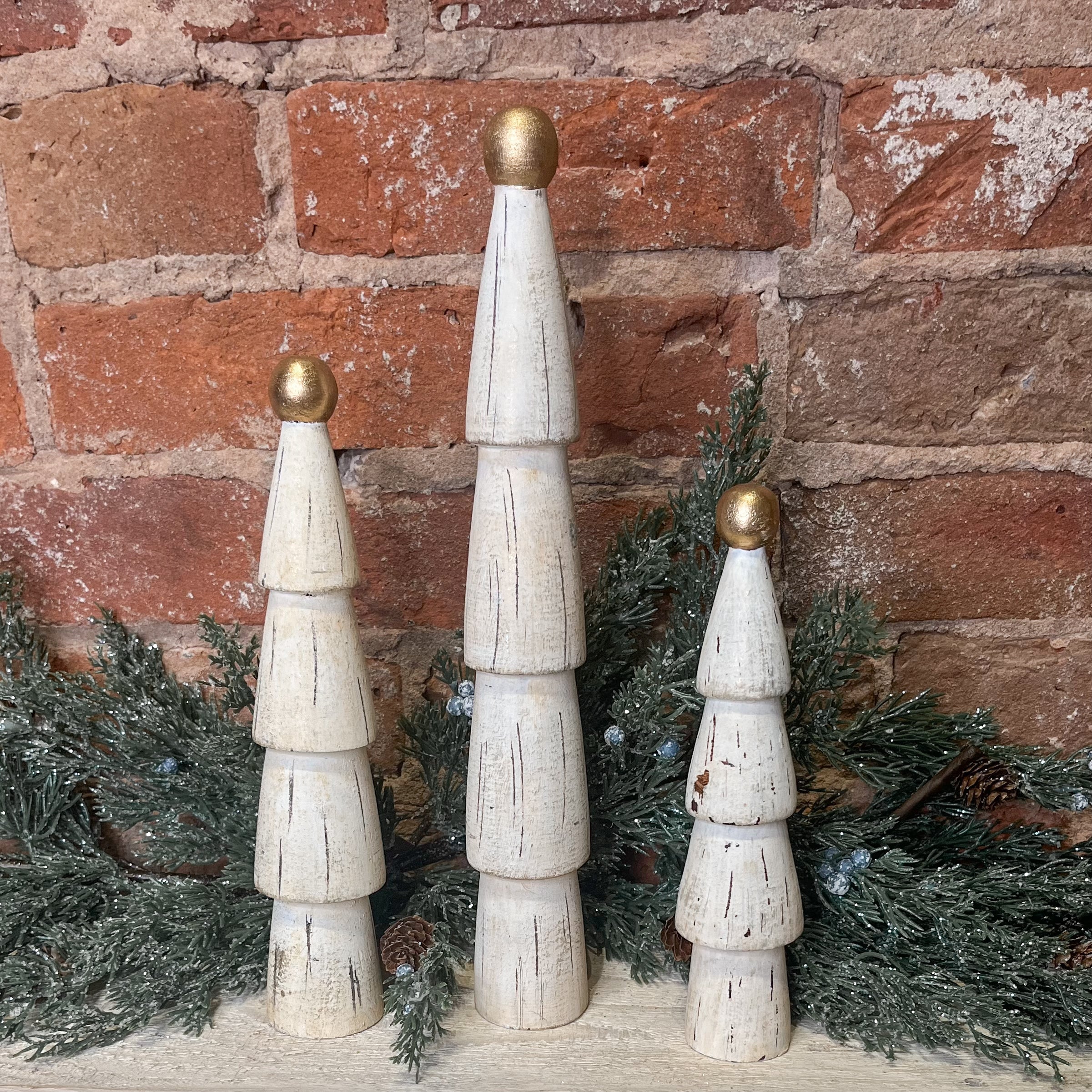 Distressed Cream Carved Mango Wood Tree w/Gold Top