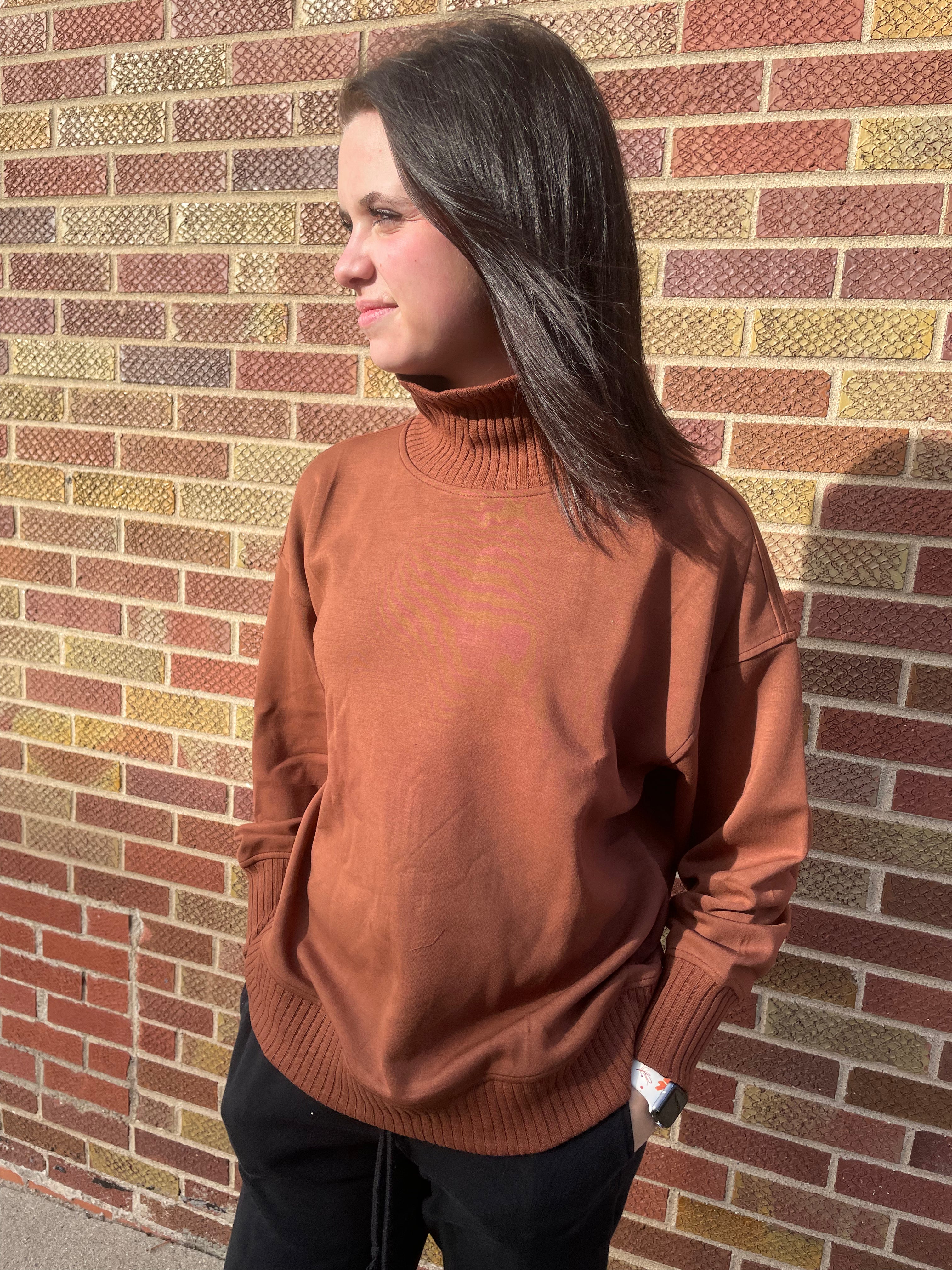 Cozy up in this Modal Scuba Ribbed Mock Neck Pullover—the perfect blend of comfort and style. Crafted from soft modal fabric with a sleek scuba knit, this pullover features a flattering mock neck and ribbed waist and cuffs for a polished fit. Available in six gorgeous colors, it's your go-to piece for effortless layering or standalone wear.