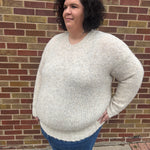 PLUS SIZE TWOTONE COZY ROUND NECK FUZZY SWEATER TOP62% POLYESTER 30% ACRYLIC 8% MOHAIR