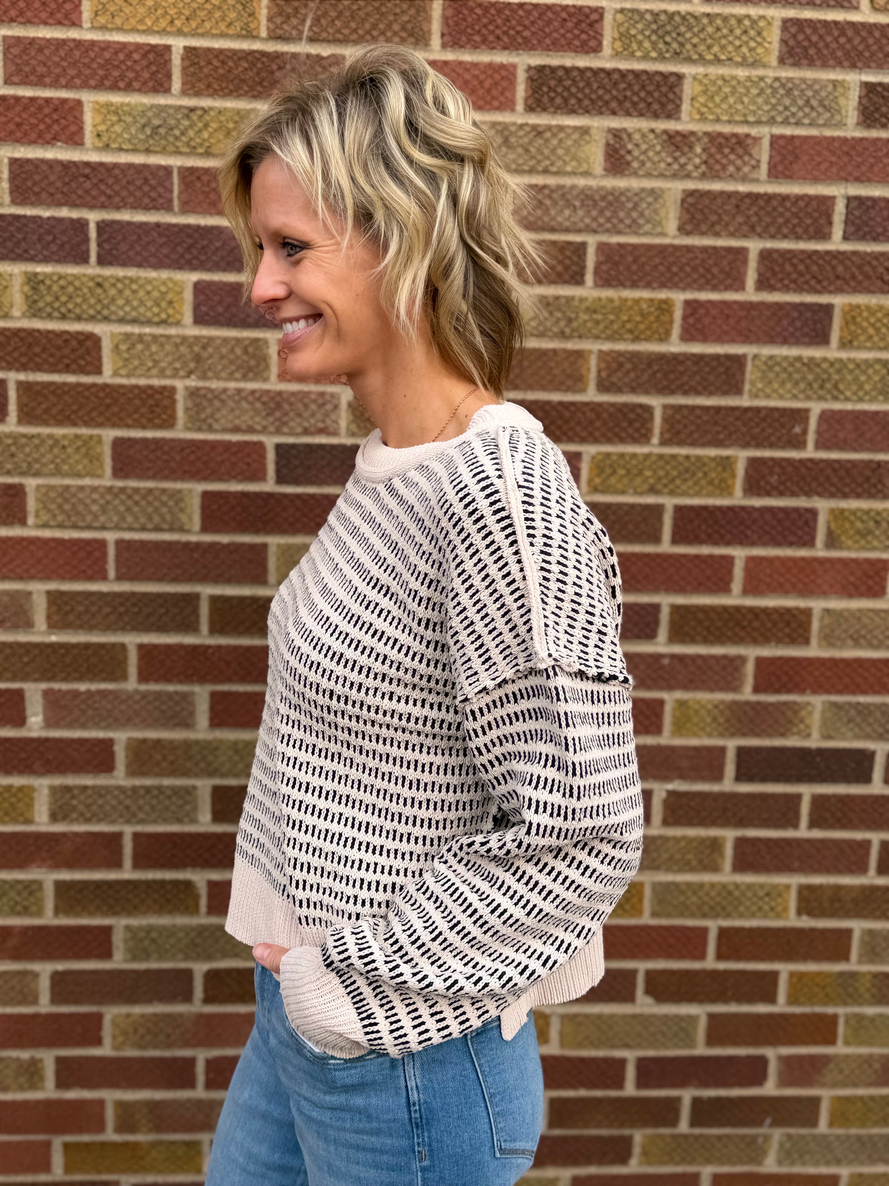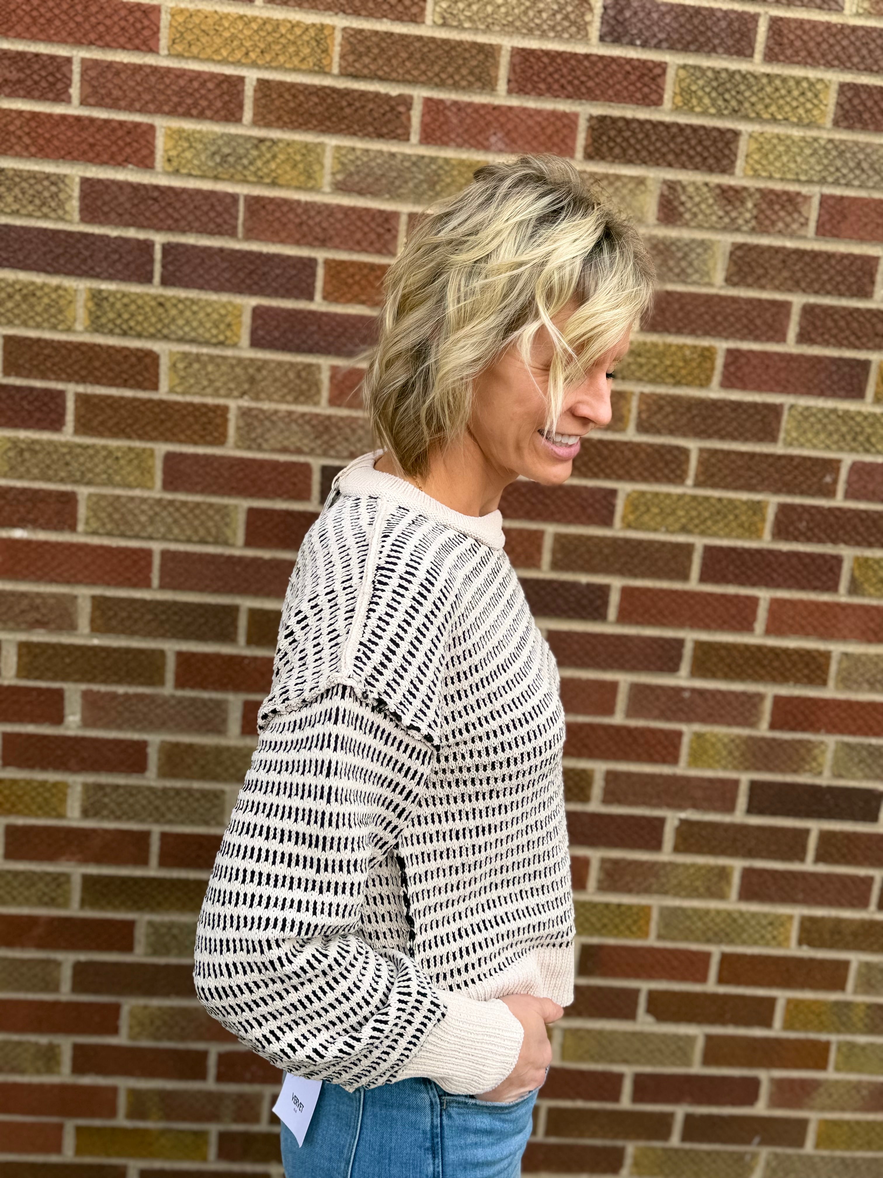 Oversized- Drop Shoulder- Long Sleeve- Round Neck- Ribbed Hem- Side Slit