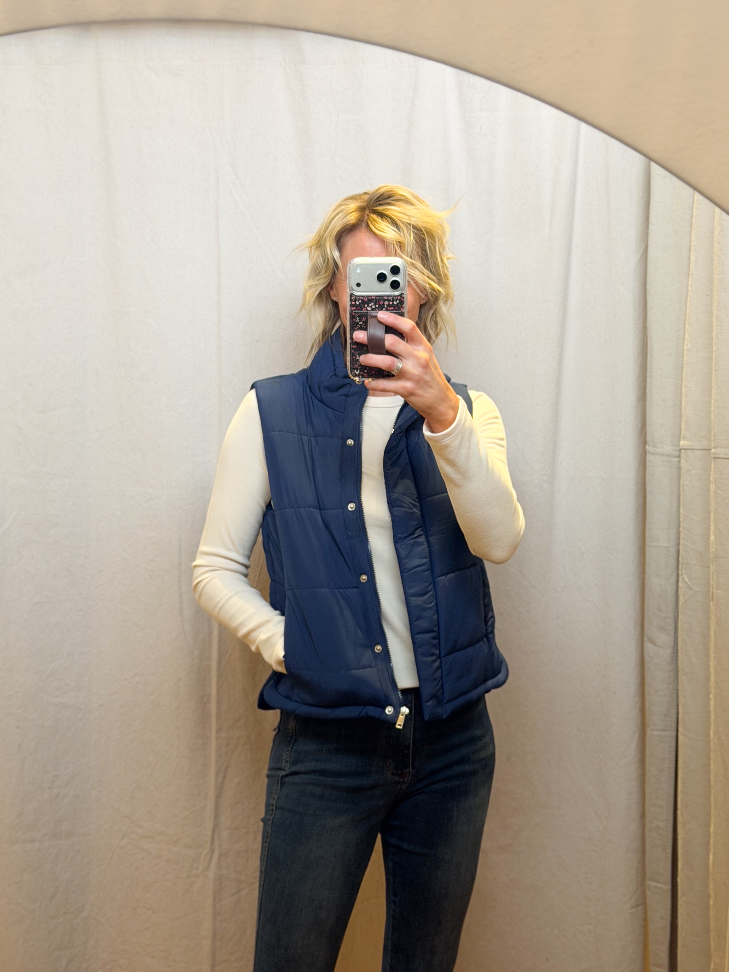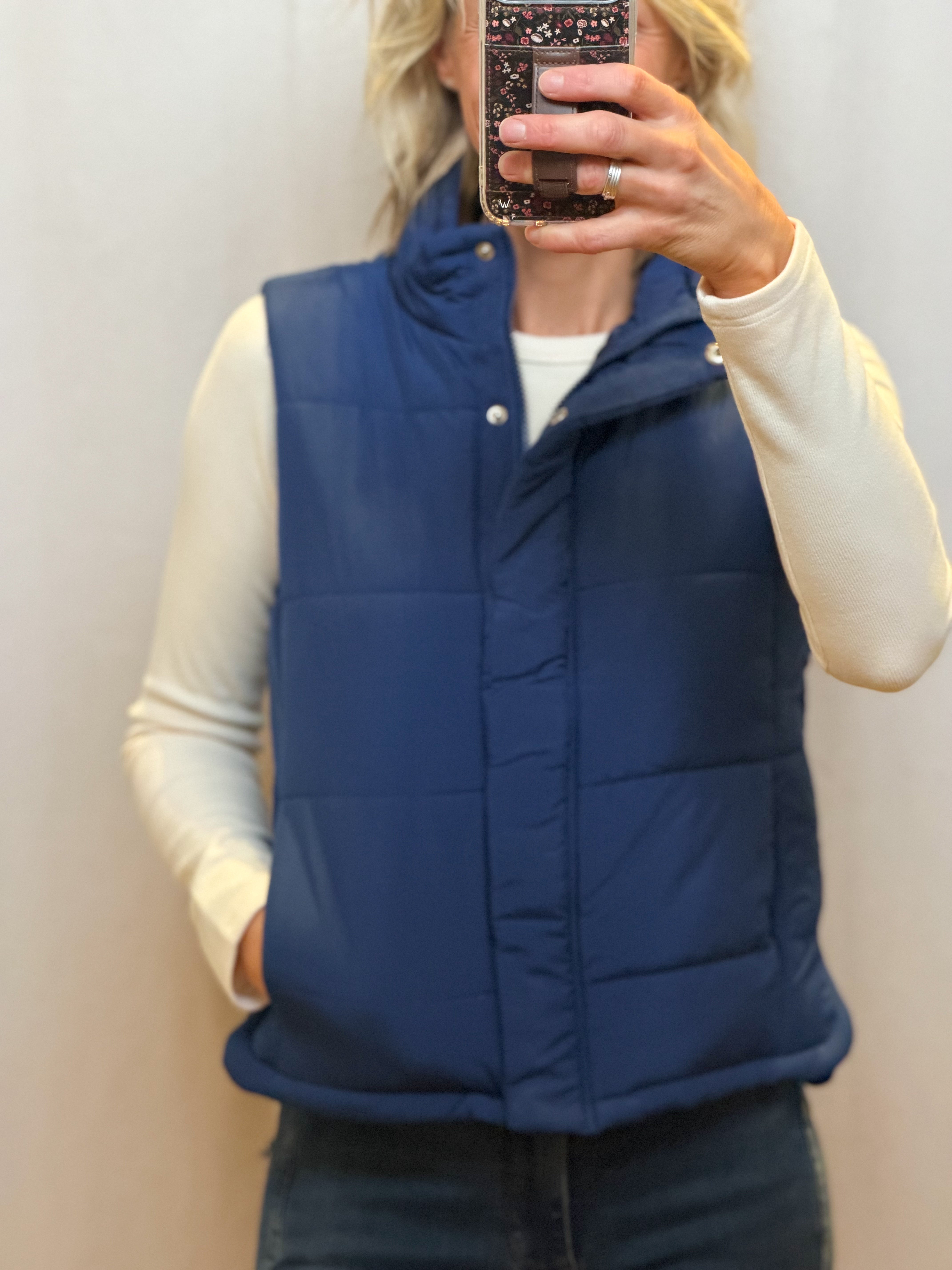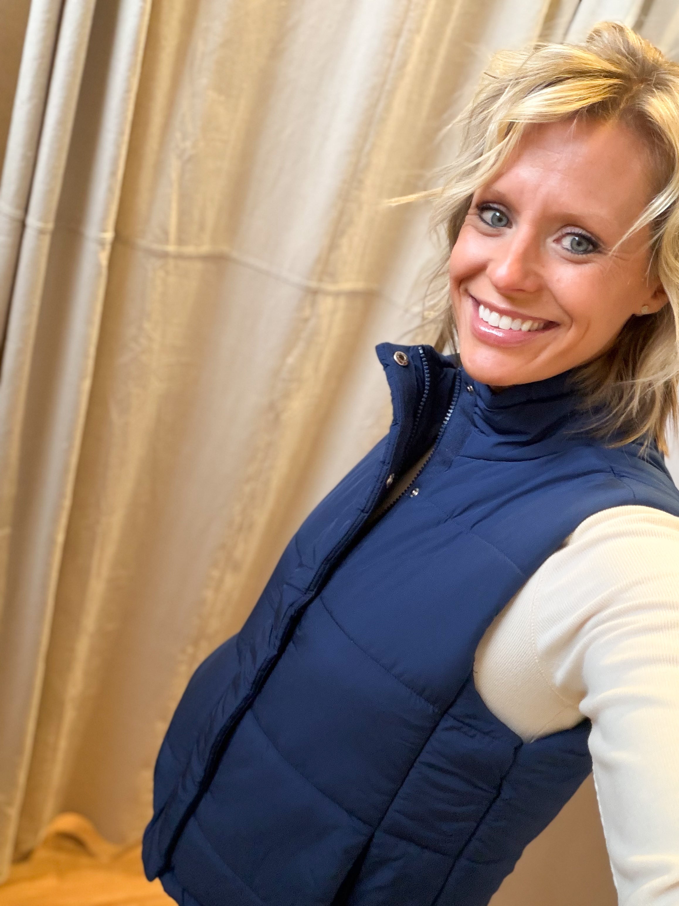 Ready to layer up with a splash of fun? This sleeveless quilted vest offers cozy warmth without the bulk, perfect for those cool days when a jacket feels like too much. Its quilted design adds a trendy touch while keeping you comfy and snug.