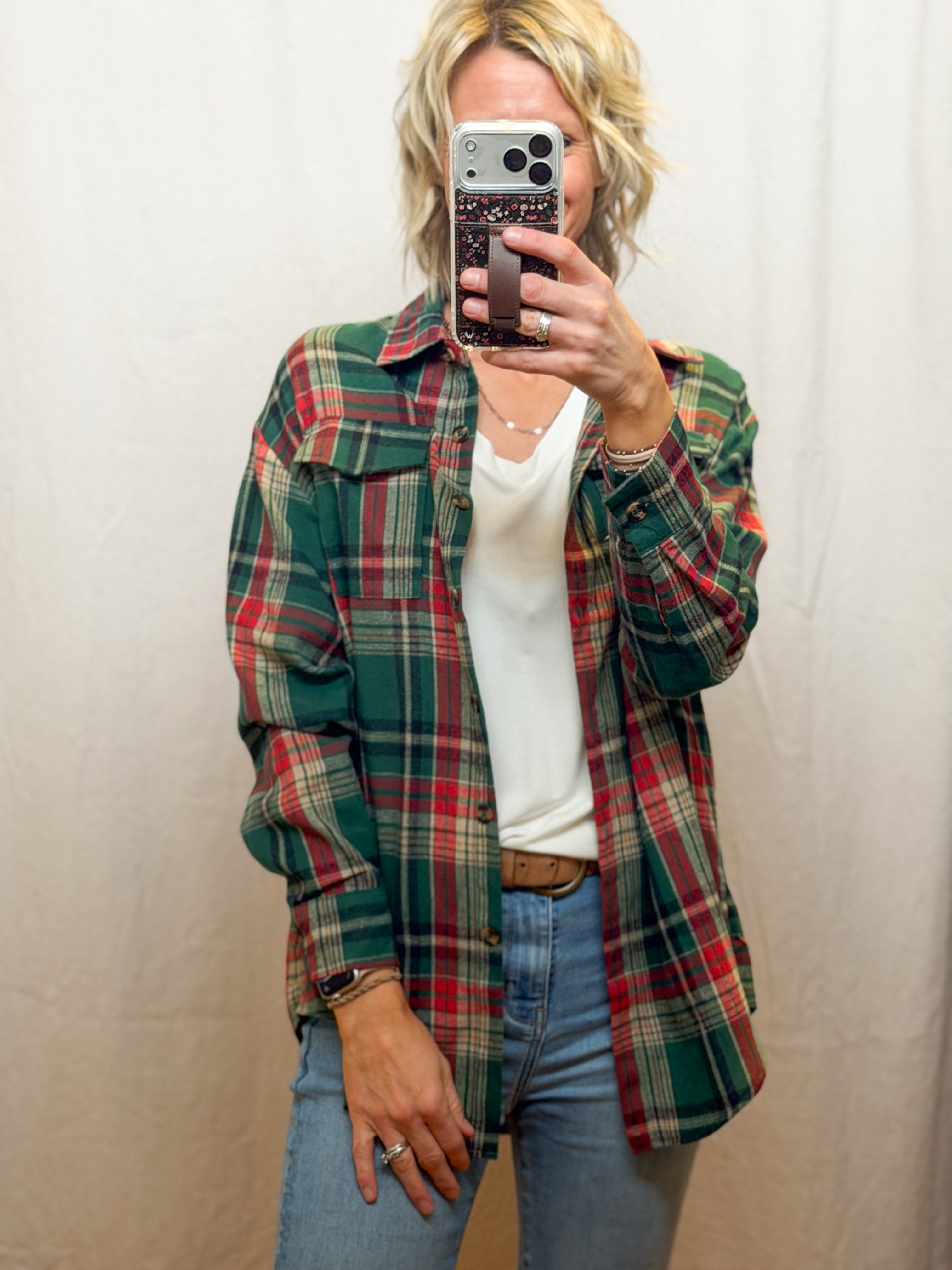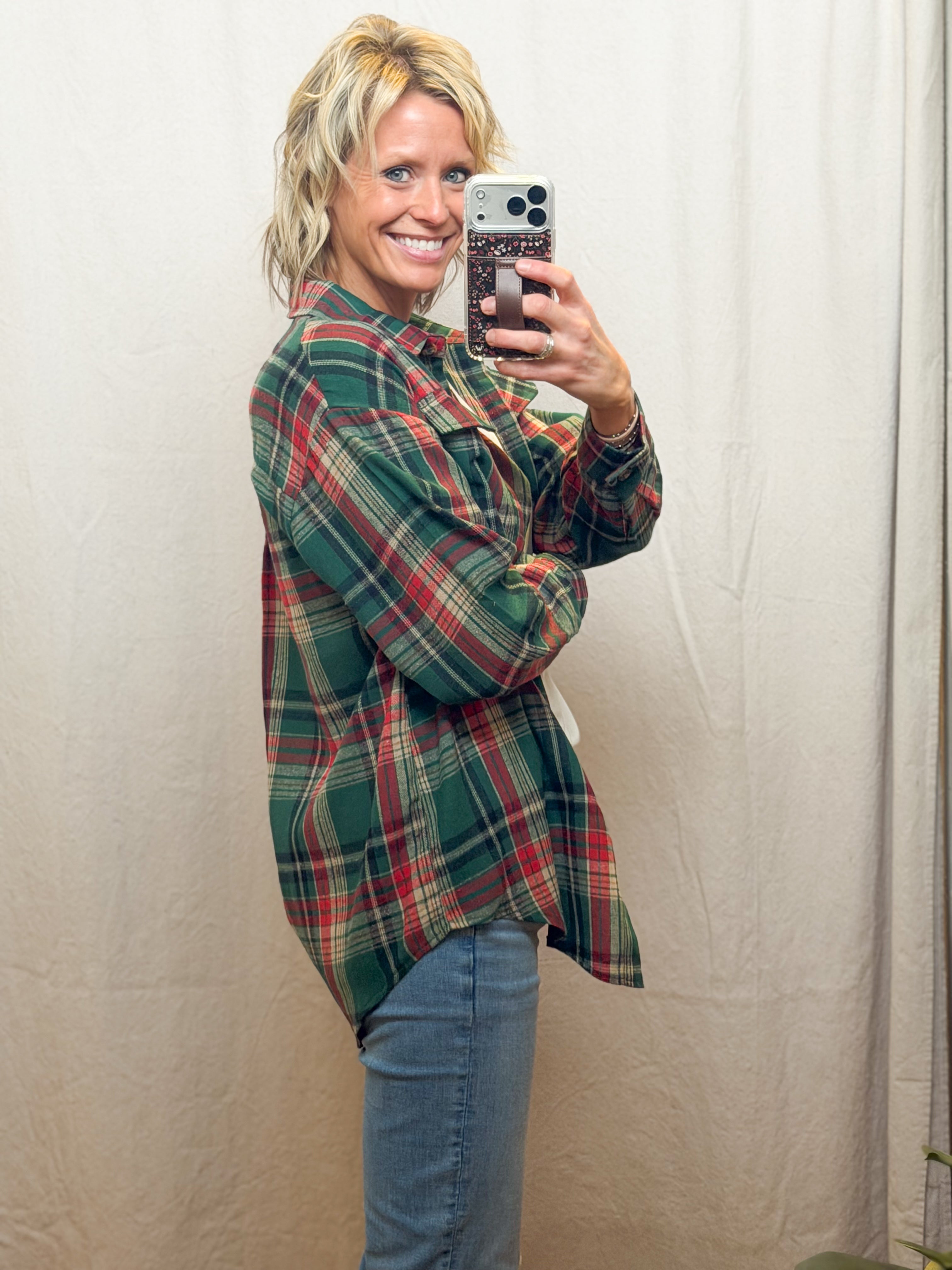 Rock that effortless vibe with this casual plaid button-down featuring a relaxed loose fit that's perfect for layering or going solo. The classic collar and shirt tail hem adds authentic charm. Dual breast pockets give you functional style—because looking good shouldn't mean sacrificing practicality. Throw it on over a tee, tie it at the waist, or wear it open for maximum cool-girl energy.