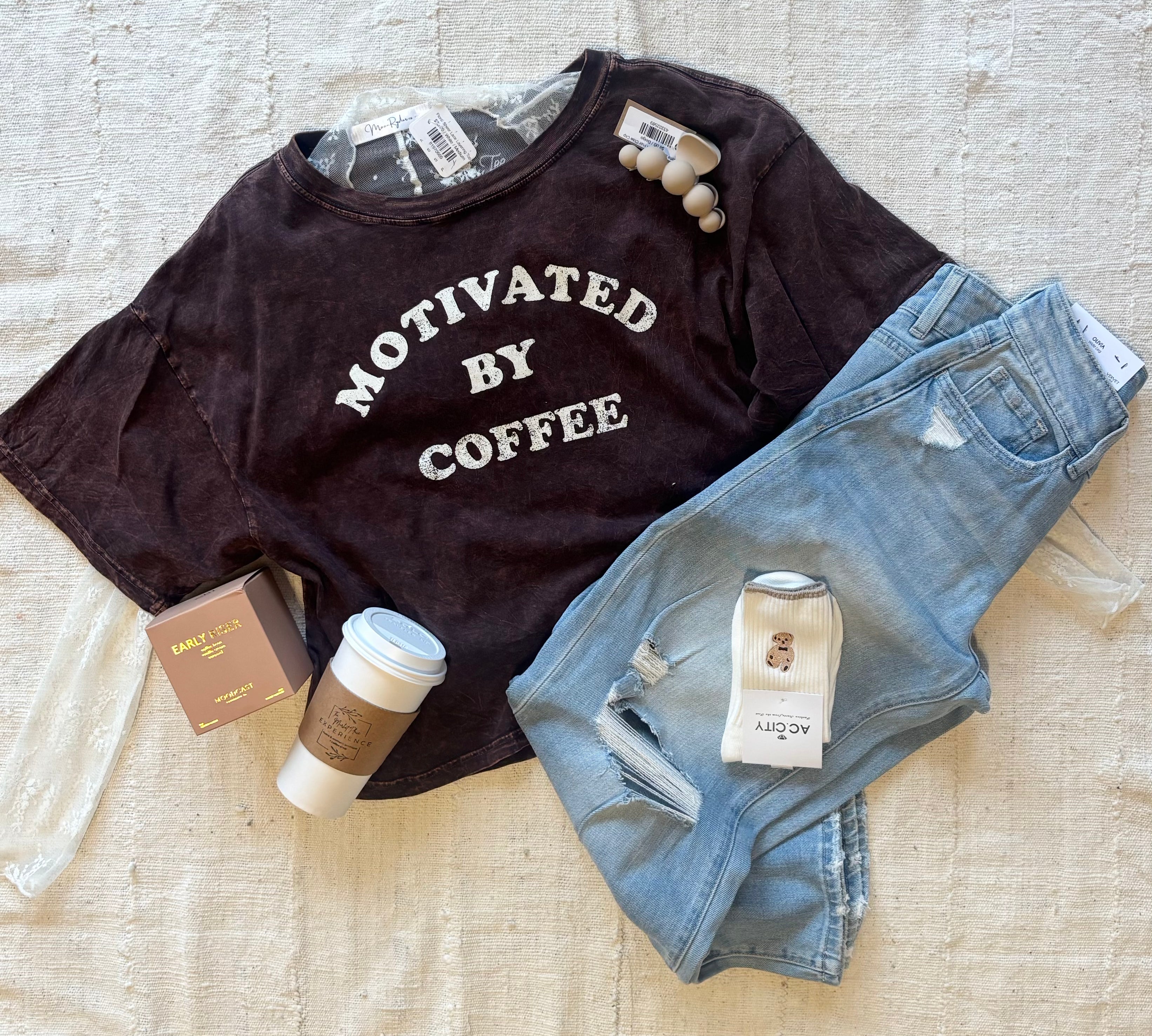 Motivated By Coffee Long Crop Top
