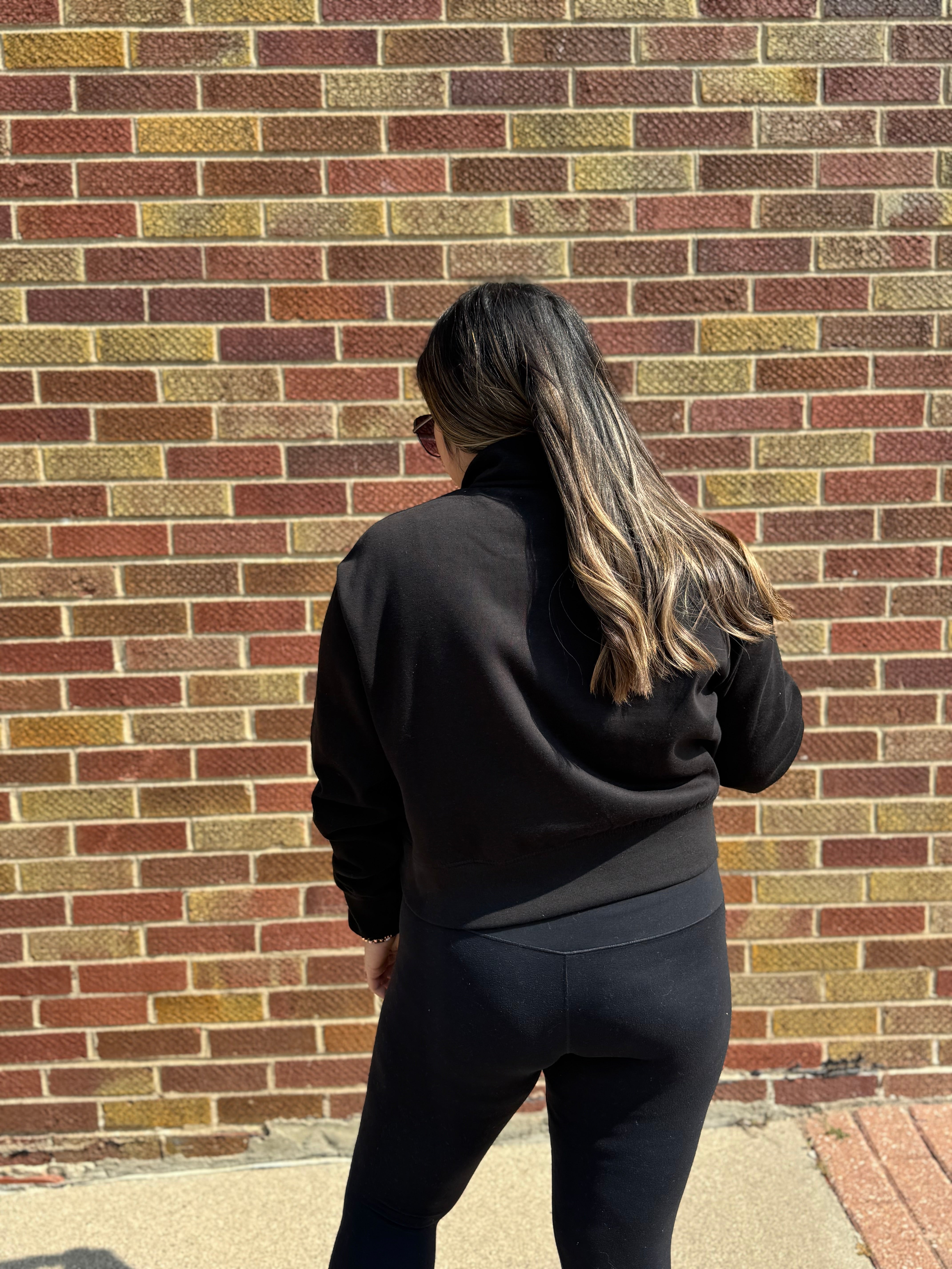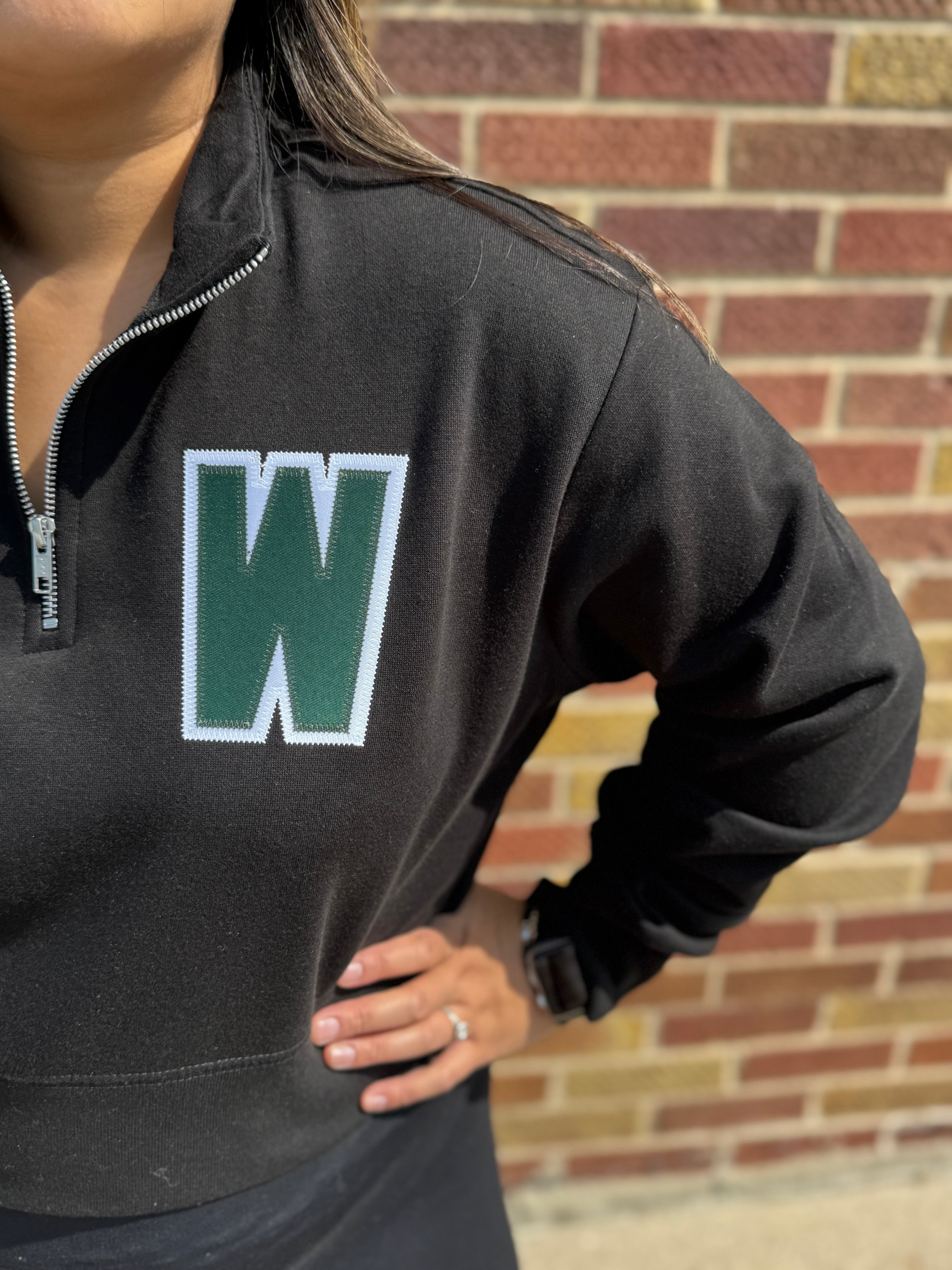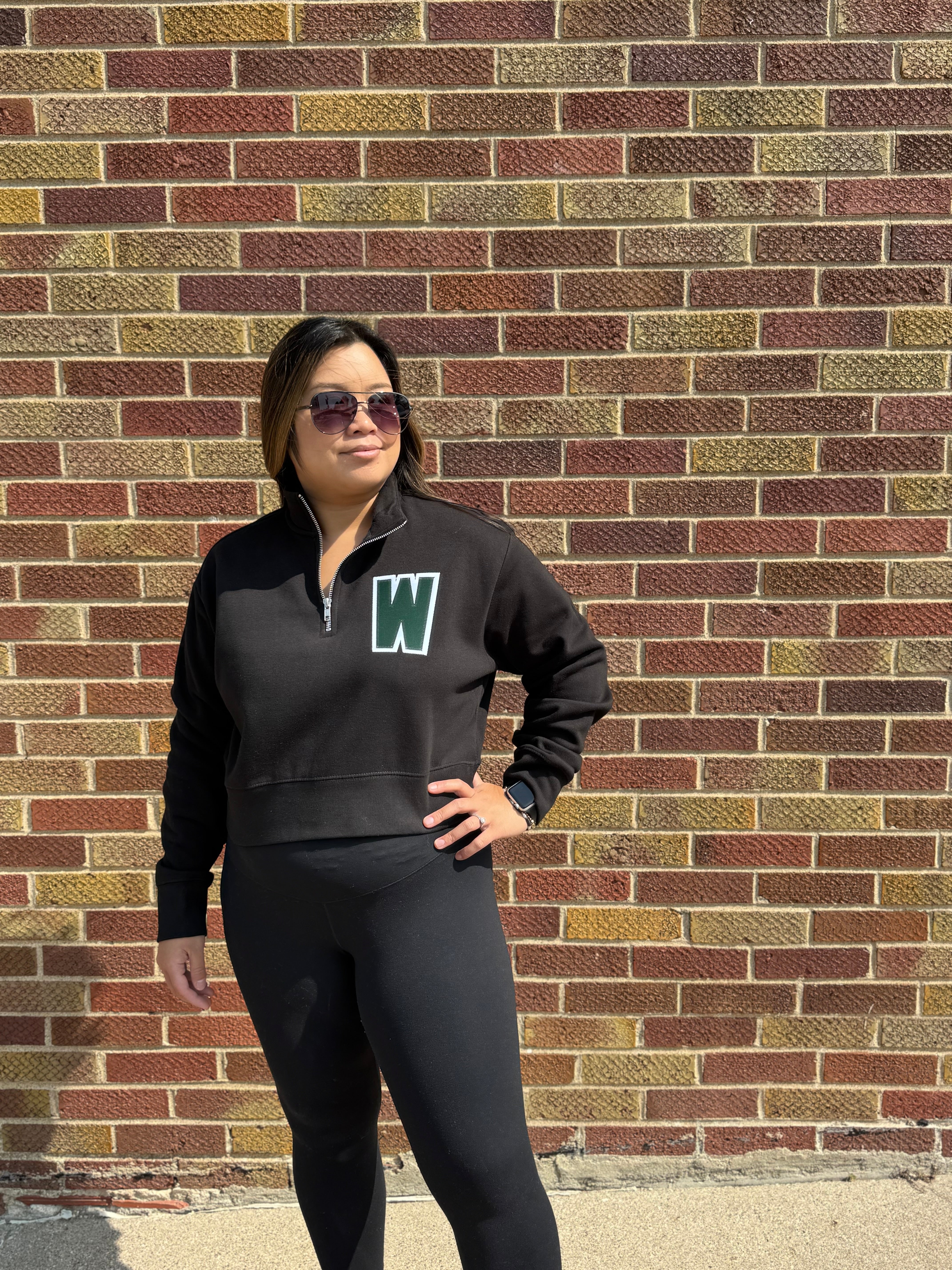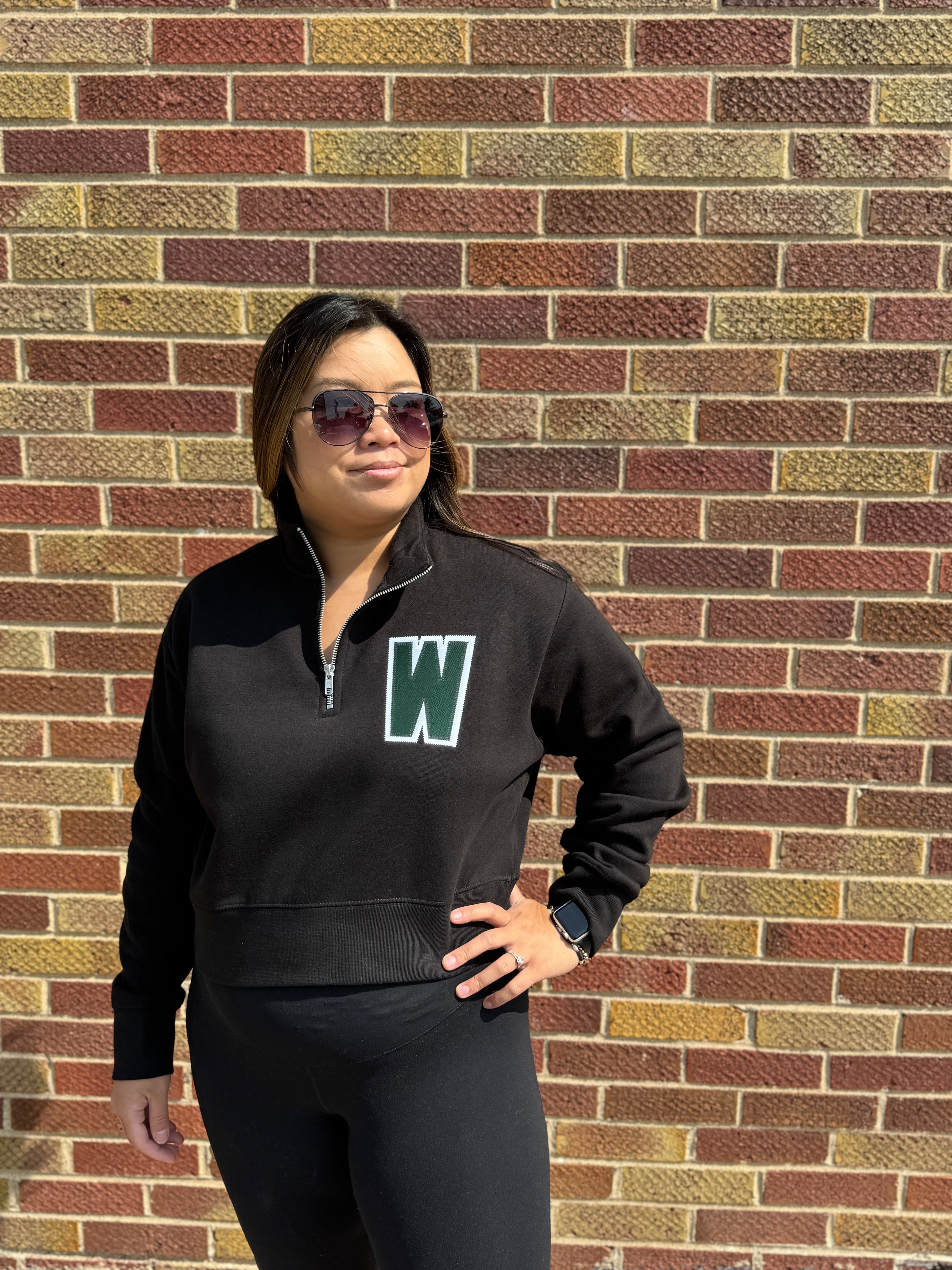 Black Crop 1/4 Zip Wolves Sweatshirt
