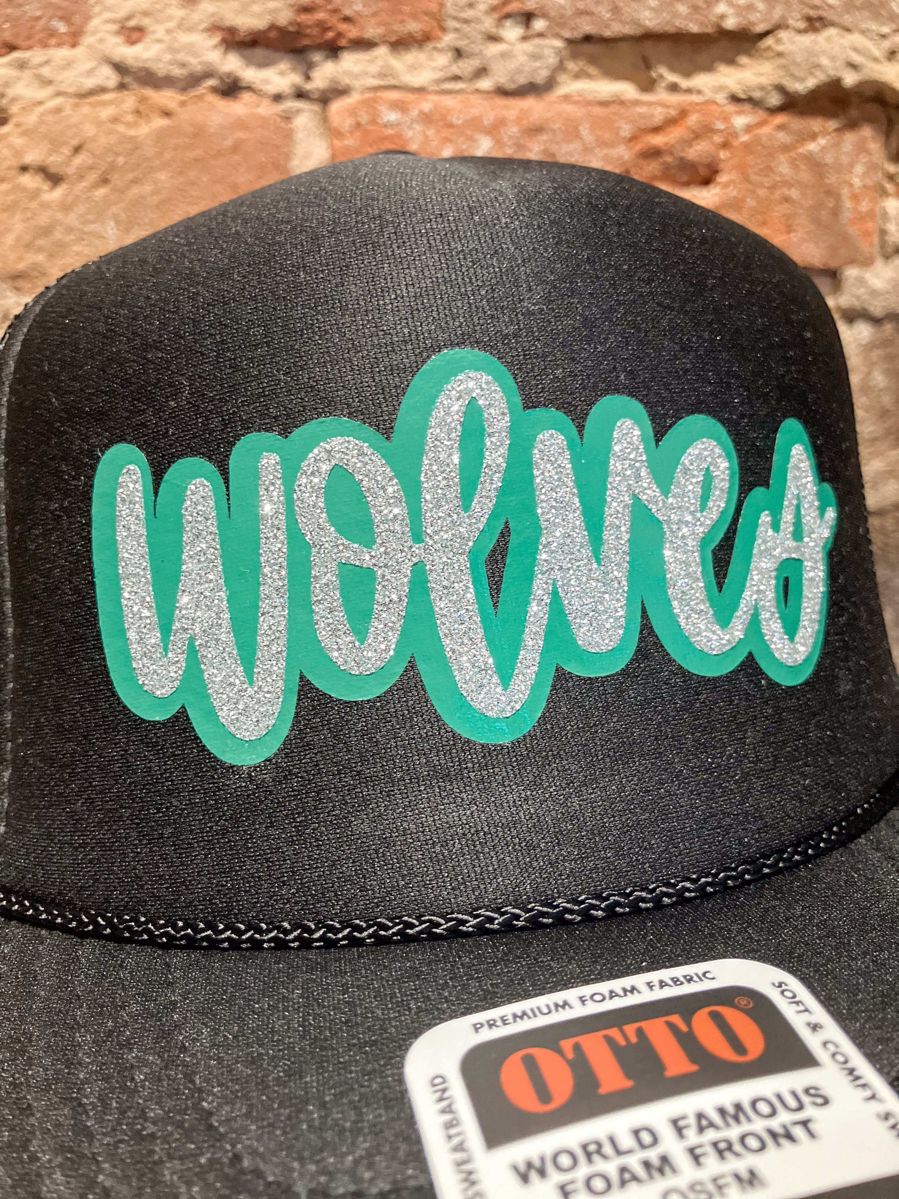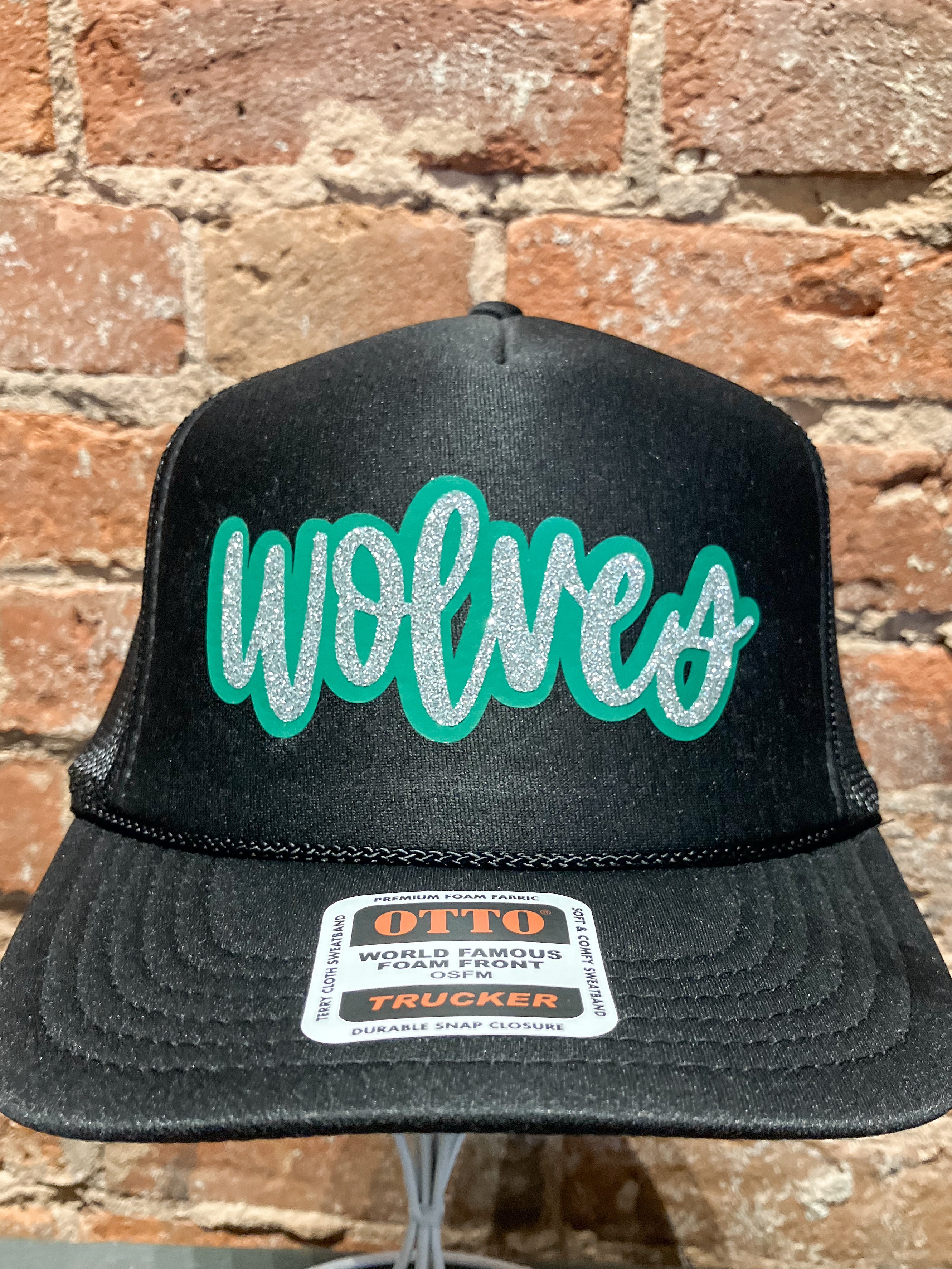 Bring a touch of wild sparkle to your look with this Black Silver Glitter Wolves Hat. Featuring shimmering silver glitter and bold wolf design, it’s perfect for those who love to stand out with a bit of fierce fun. Whether you're heading to a game or just want to add some playful edge to your outfit, this hat has got you covered.