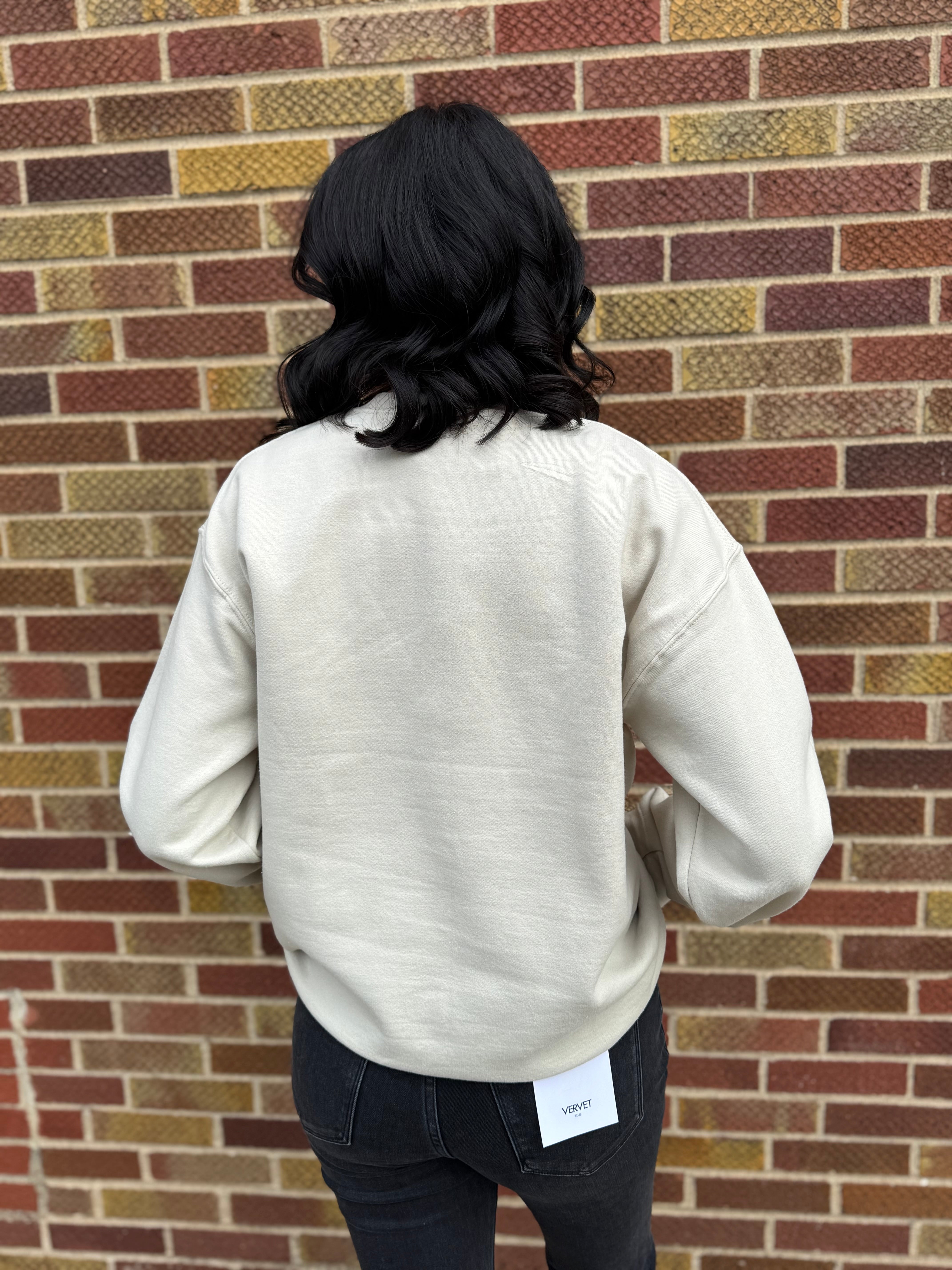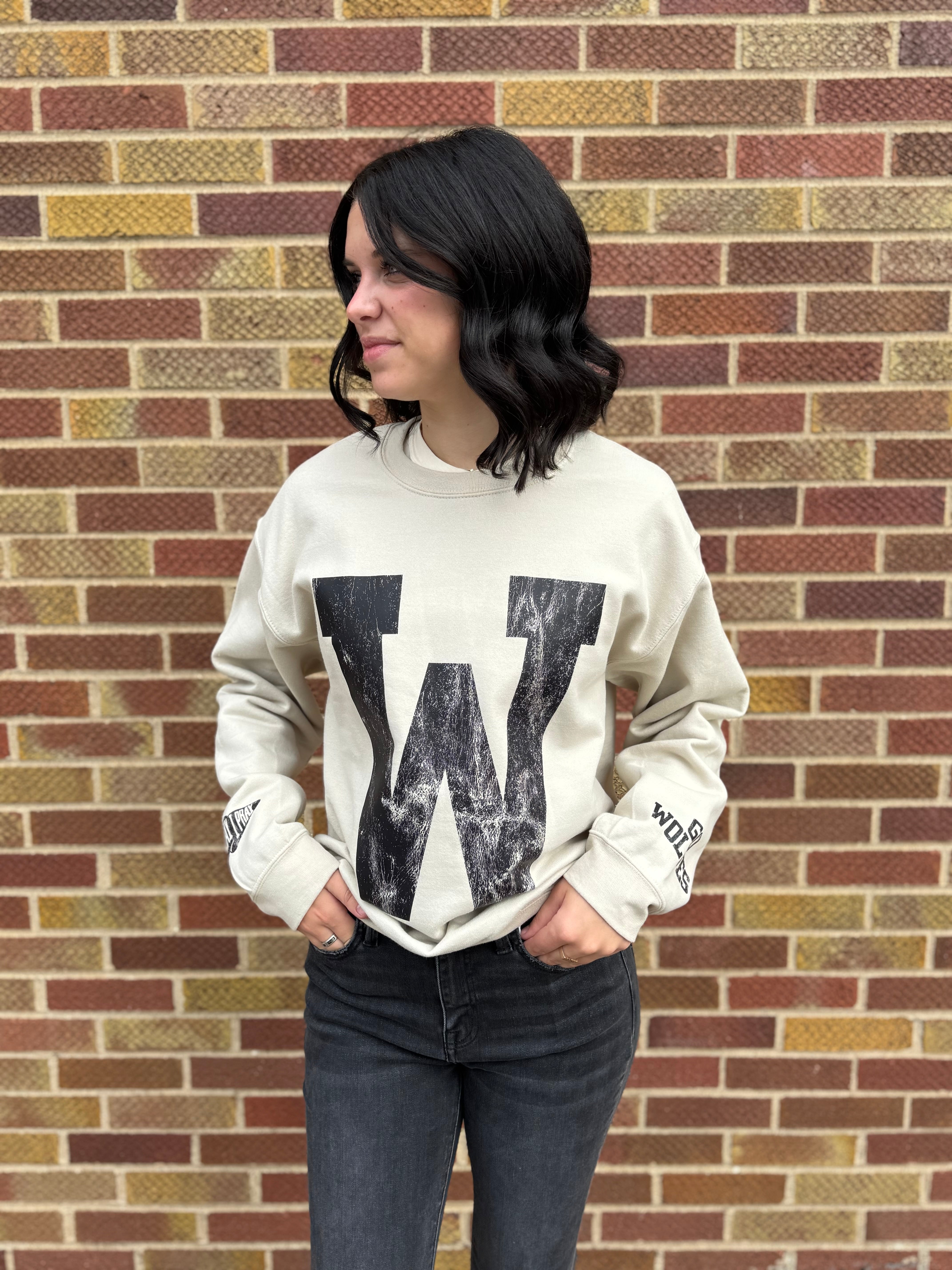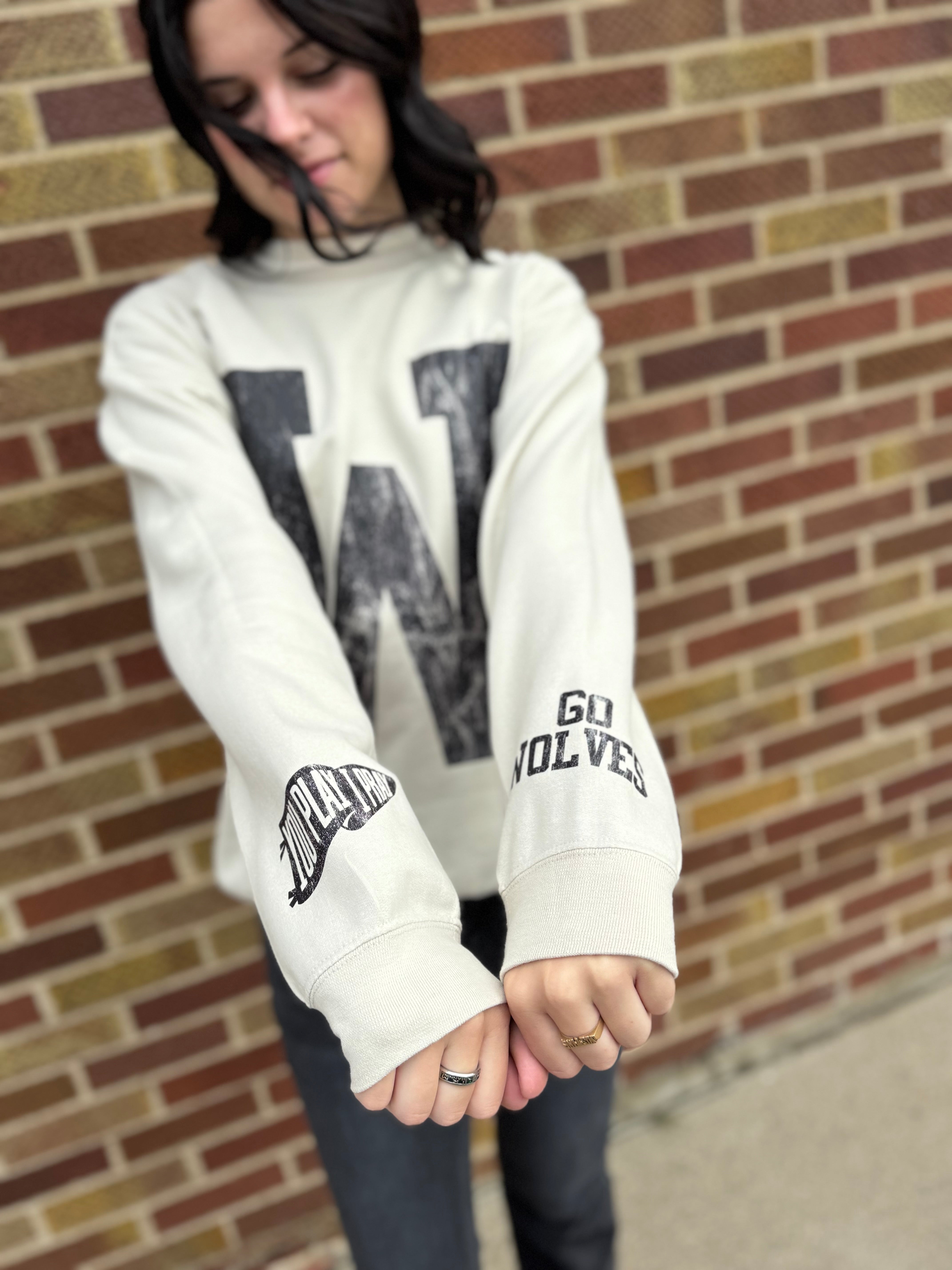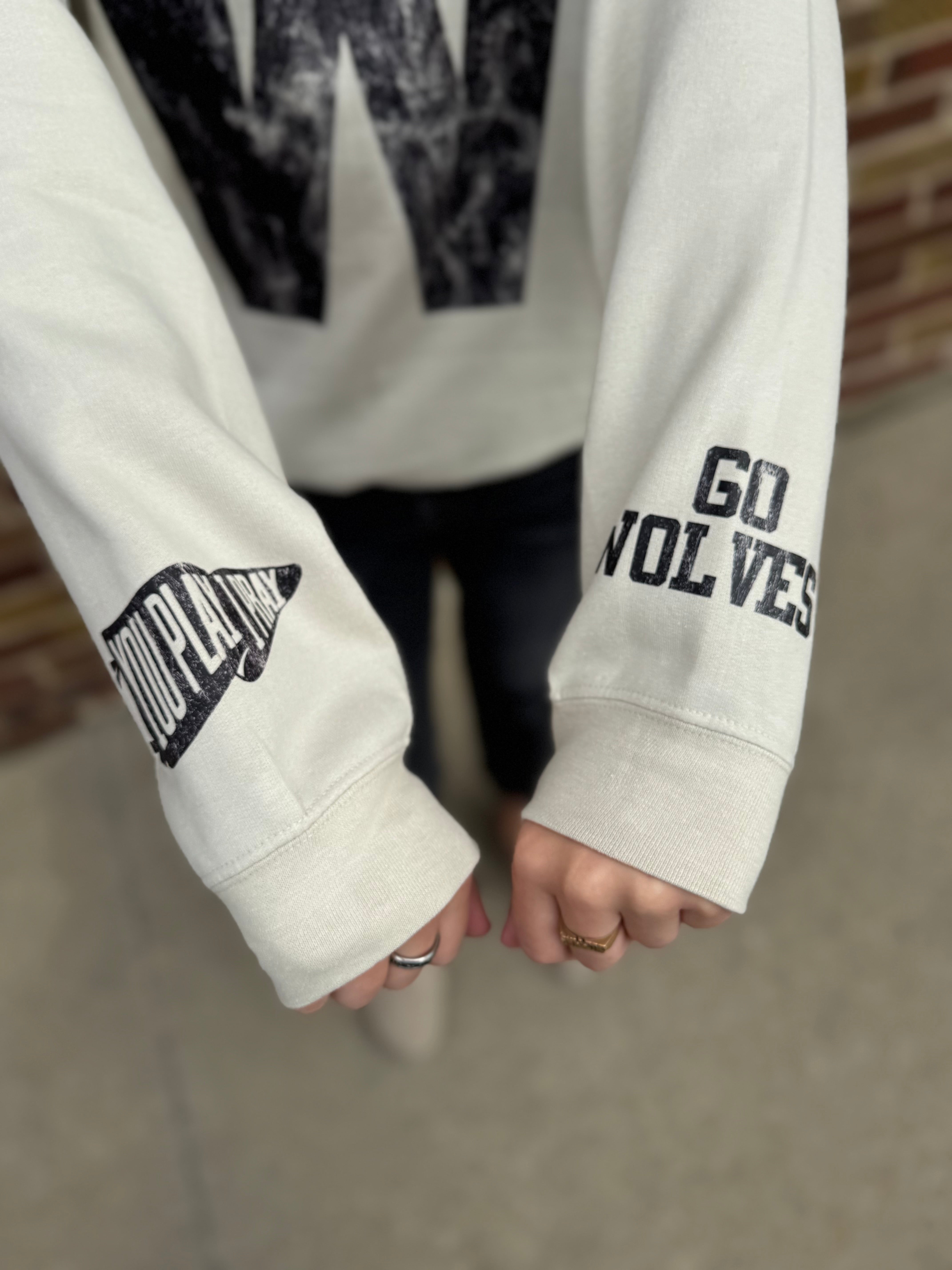 Stay wild and cozy with the Cream Go Wolves Crewneck!  Whether you're out exploring or lounging at home, it keeps you snug while adding a fun, fearless edge to your look. Embrace your inner wolf and let your style run free.