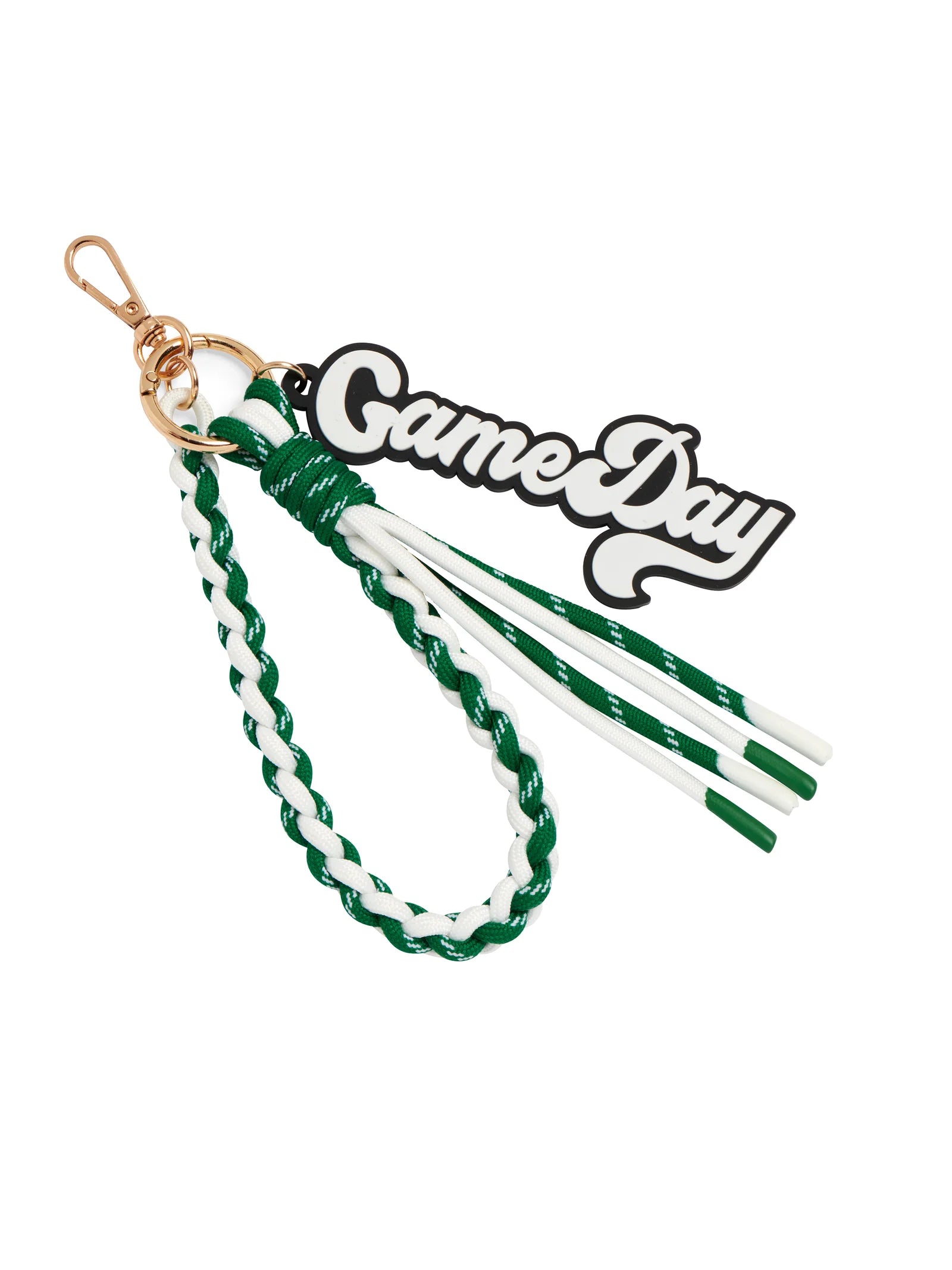 Show off your team spirit in style with the Game Day Bag Charm/Key Ring! Featuring braided cords in vibrant game-day colors, a playful "Game Day" tag, and a mix of textured tassels, this charm adds instant personality to your favorite bag. The gold-tone key ring and easy clasp hook make it a breeze to attach to any purse, tote, or backpack. Whether you're tailgating or just out running errands, this accessory is here to cheer you on!