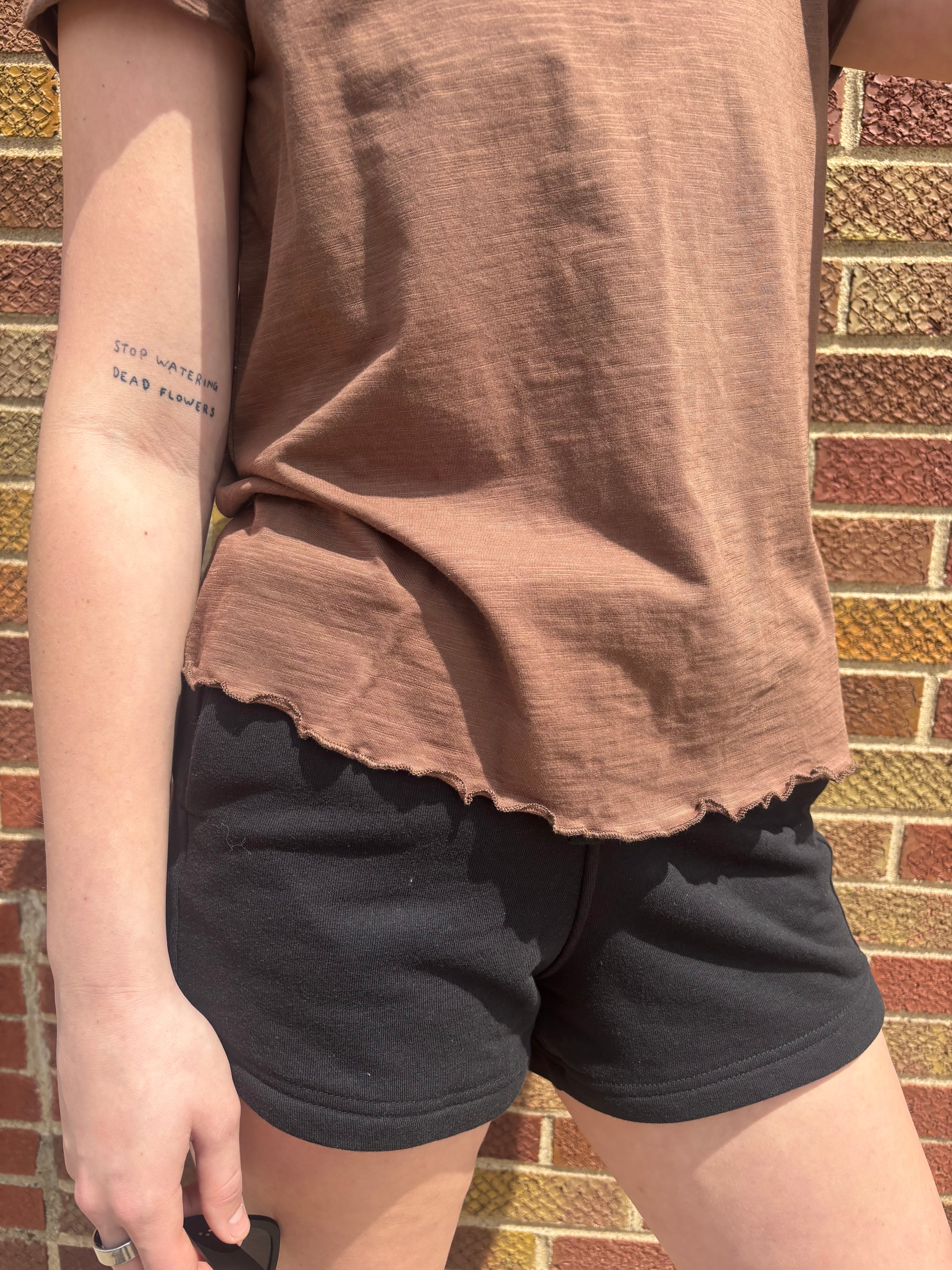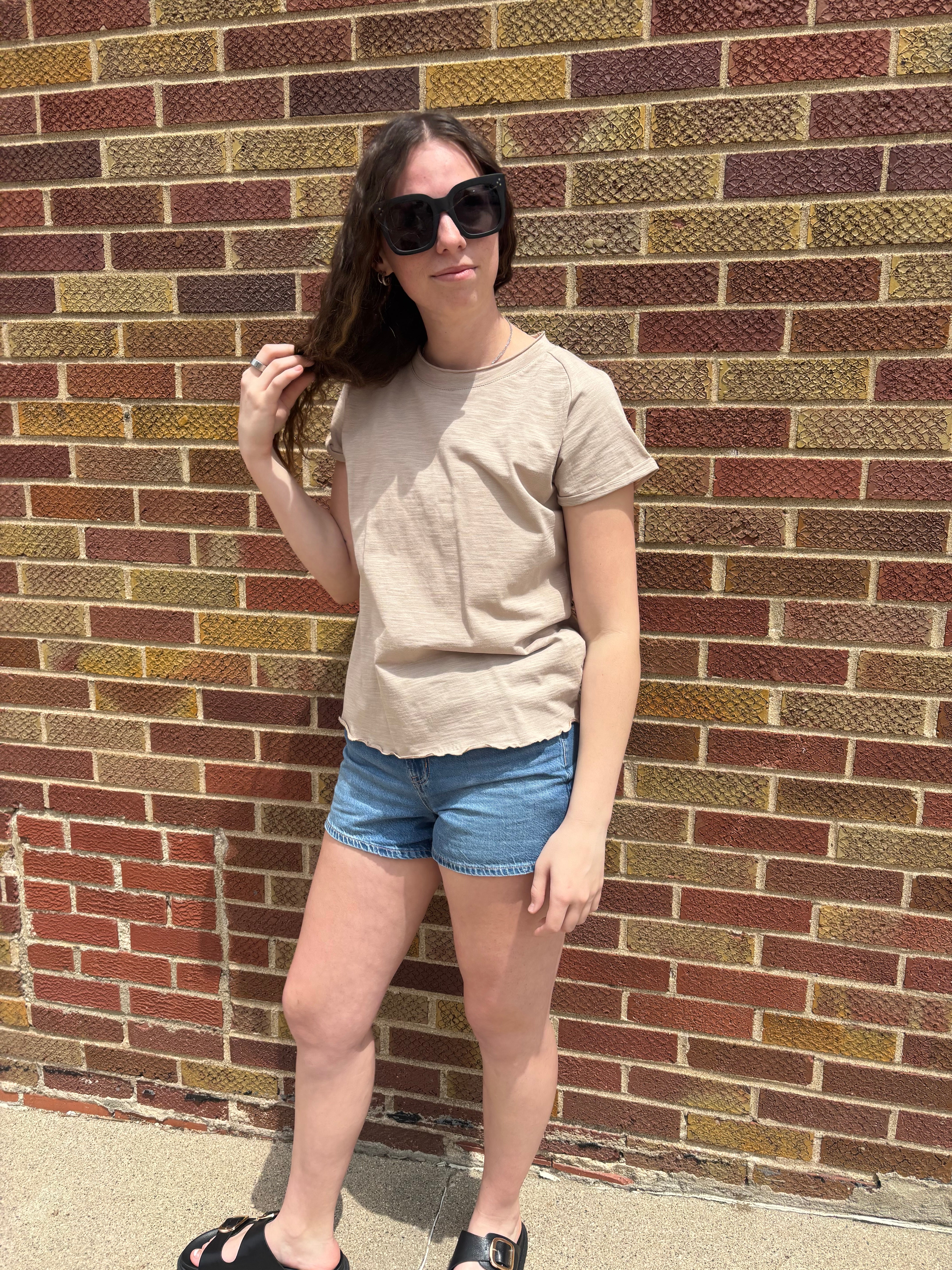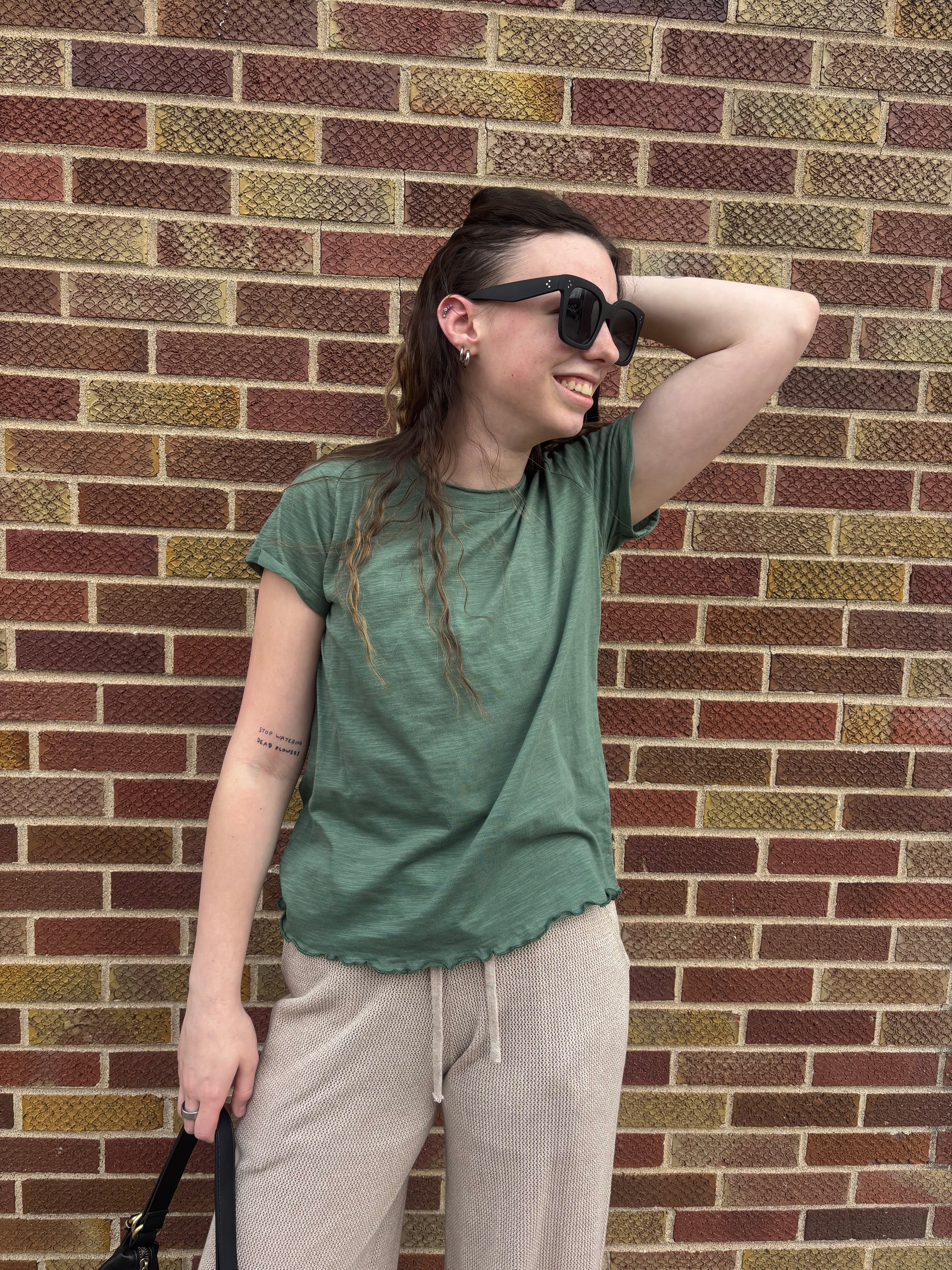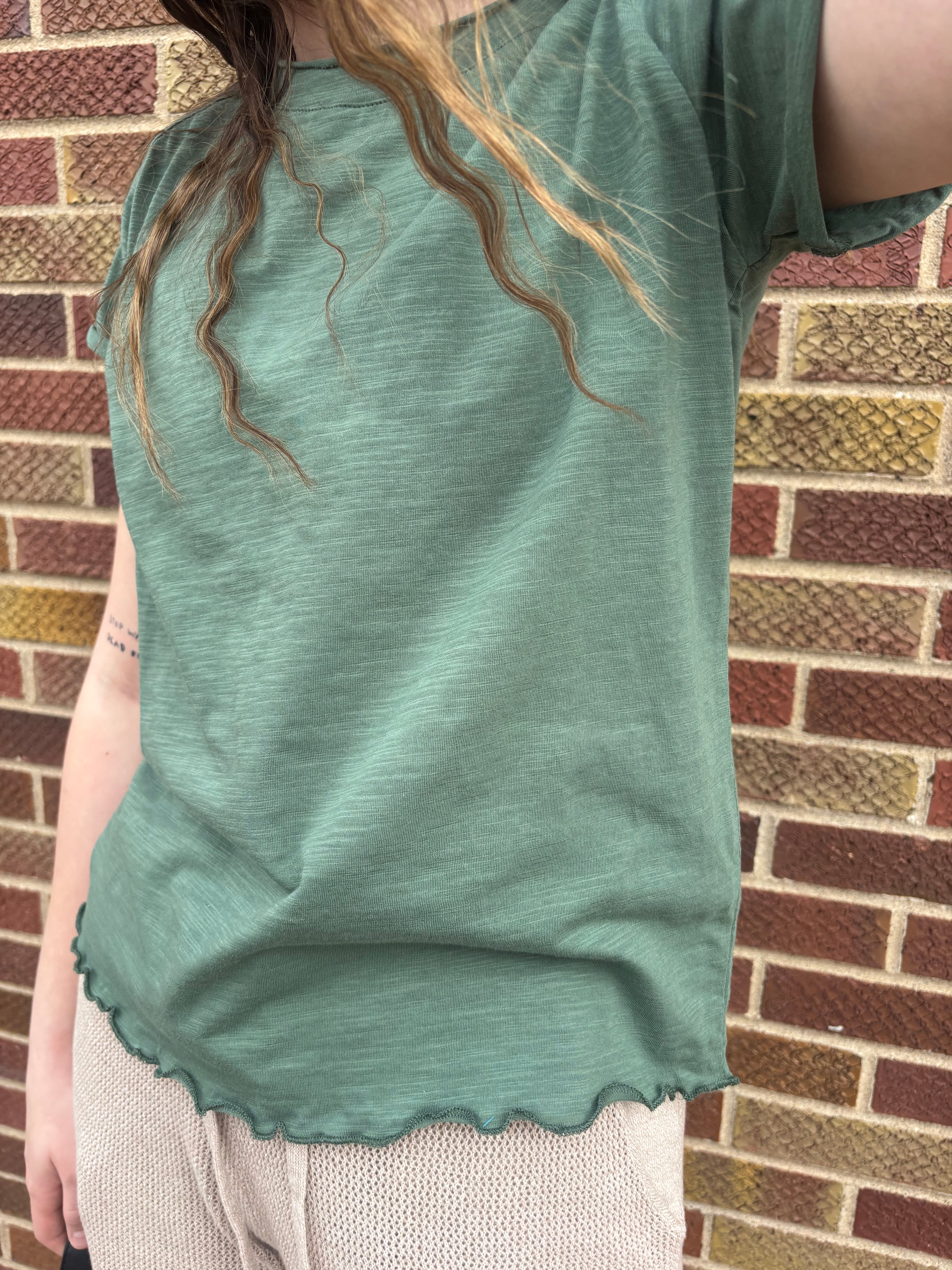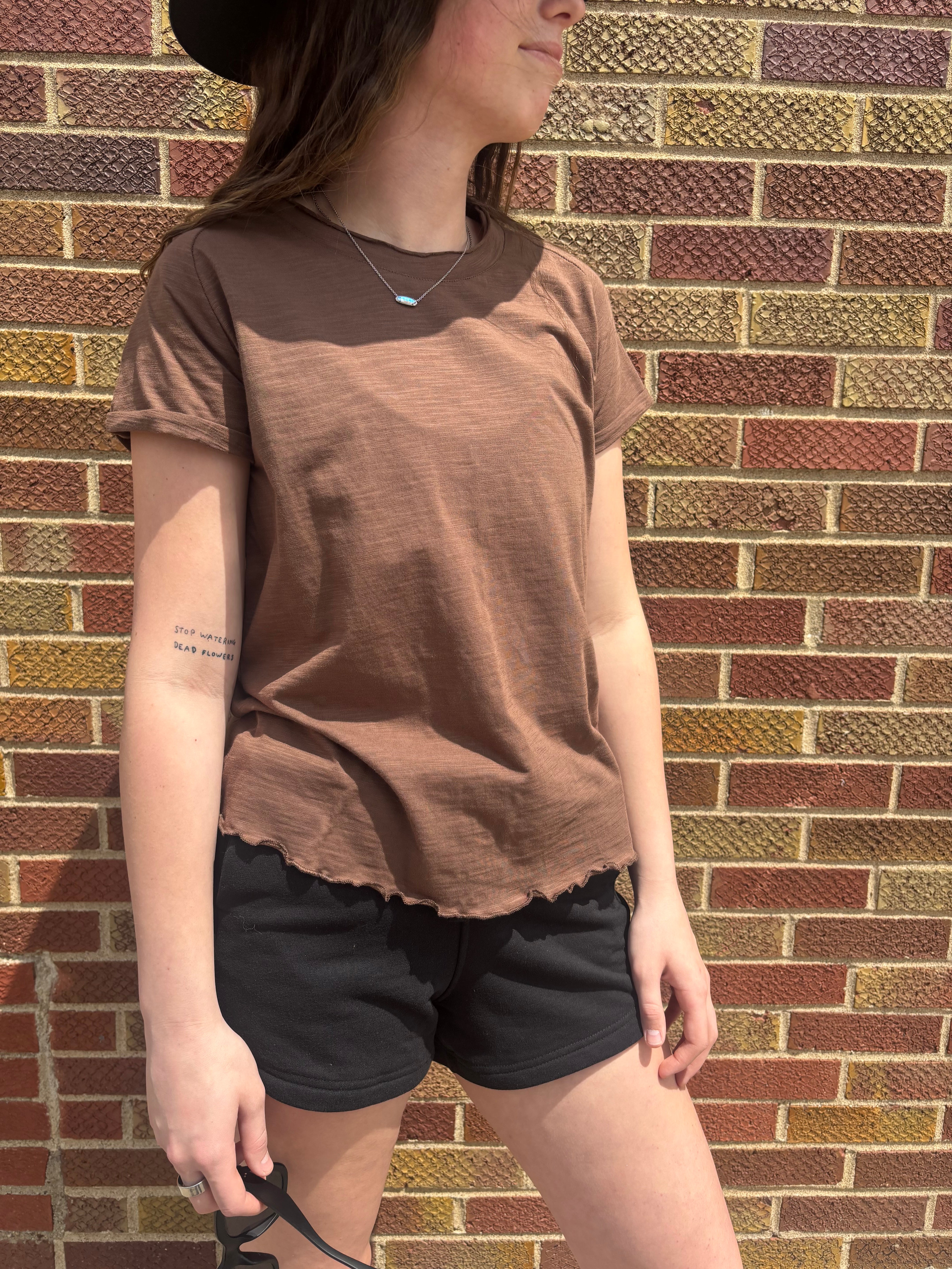 Our Gwen Shirt is an effortless essential you'll gravitate towards all year round. This timeless baby tee is featured in a classic baby silhouette with capped sleeves and cabbage lettuce hem finish for a true lived-in look is a staple every season.
