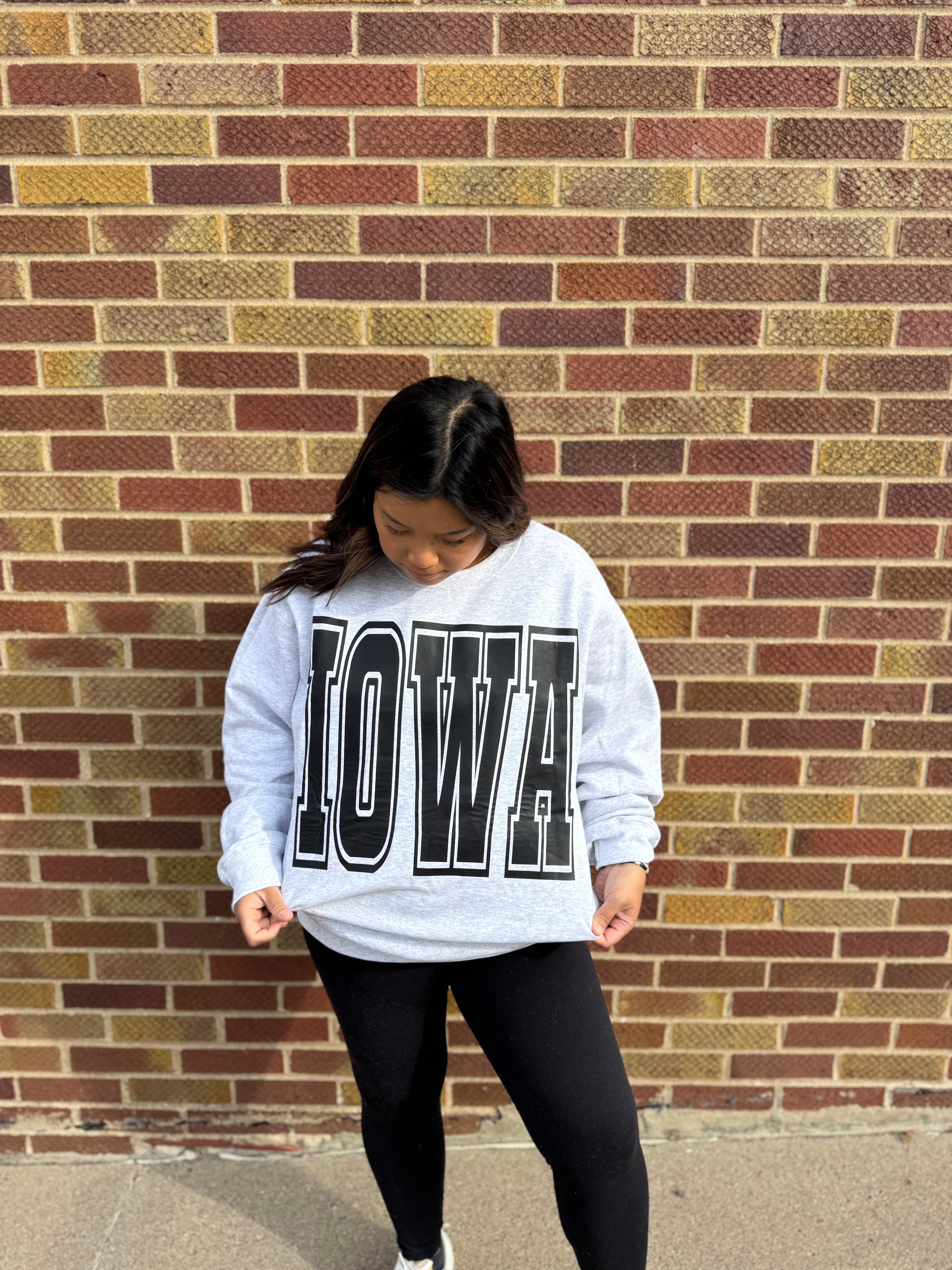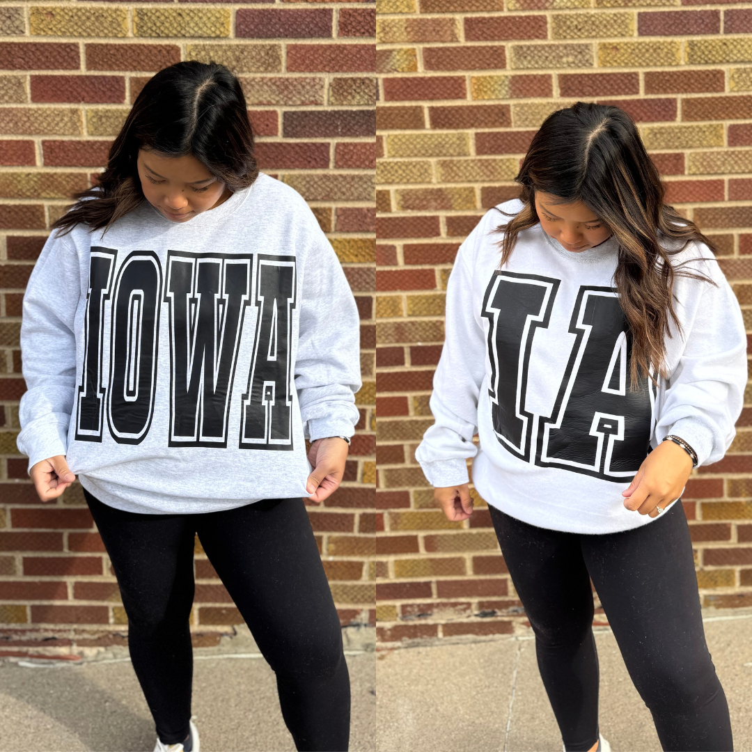 This reversible crewneck sweater is twice the fun! Featuring "IOWA" boldly printed on the front and "IA" hidden on the cozy inner fleece, it’s like getting two stylish sweaters in one. Switch up your look instantly and enjoy double the comfort without doubling the price. Perfect for those who love a playful twist on classic comfort.