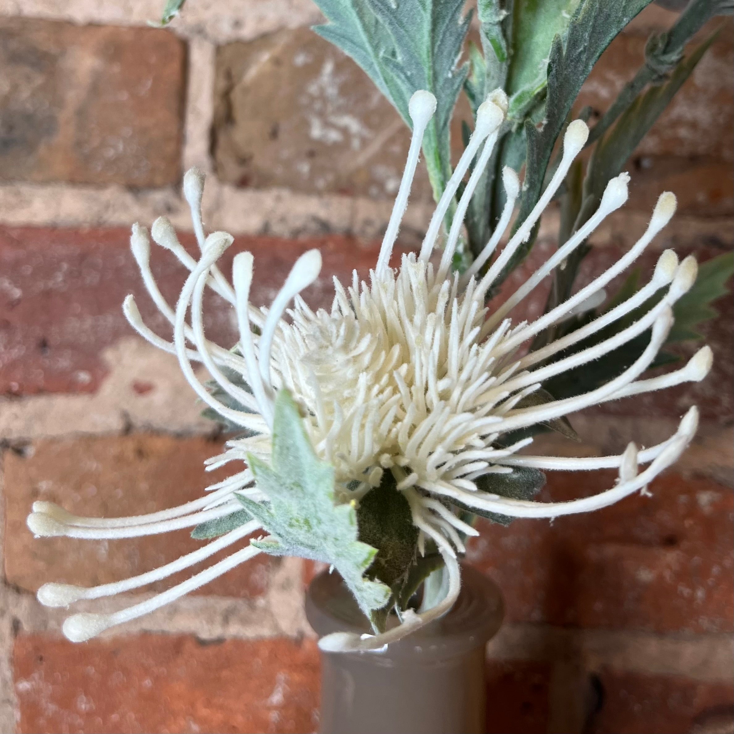 This Flocked Thistle Stem features three heads and a powdery white texture. Perfect for adding a touch of elegance and texture to any floral arrangement or DIY project. Versatile and durable, this 24" stem is a must-have for any floral enthusiast or professional designer.