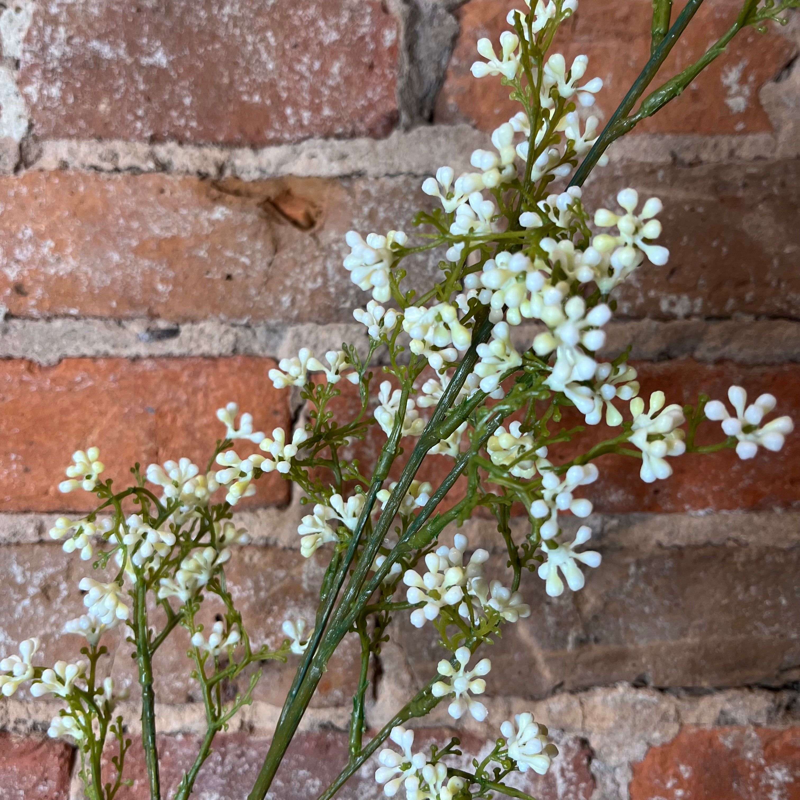 This White Mini Berry Spray adds a touch of delicacy with its beautiful white flowers. Perfect for adding a subtle and elegant touch to any floral arrangement or decor.