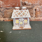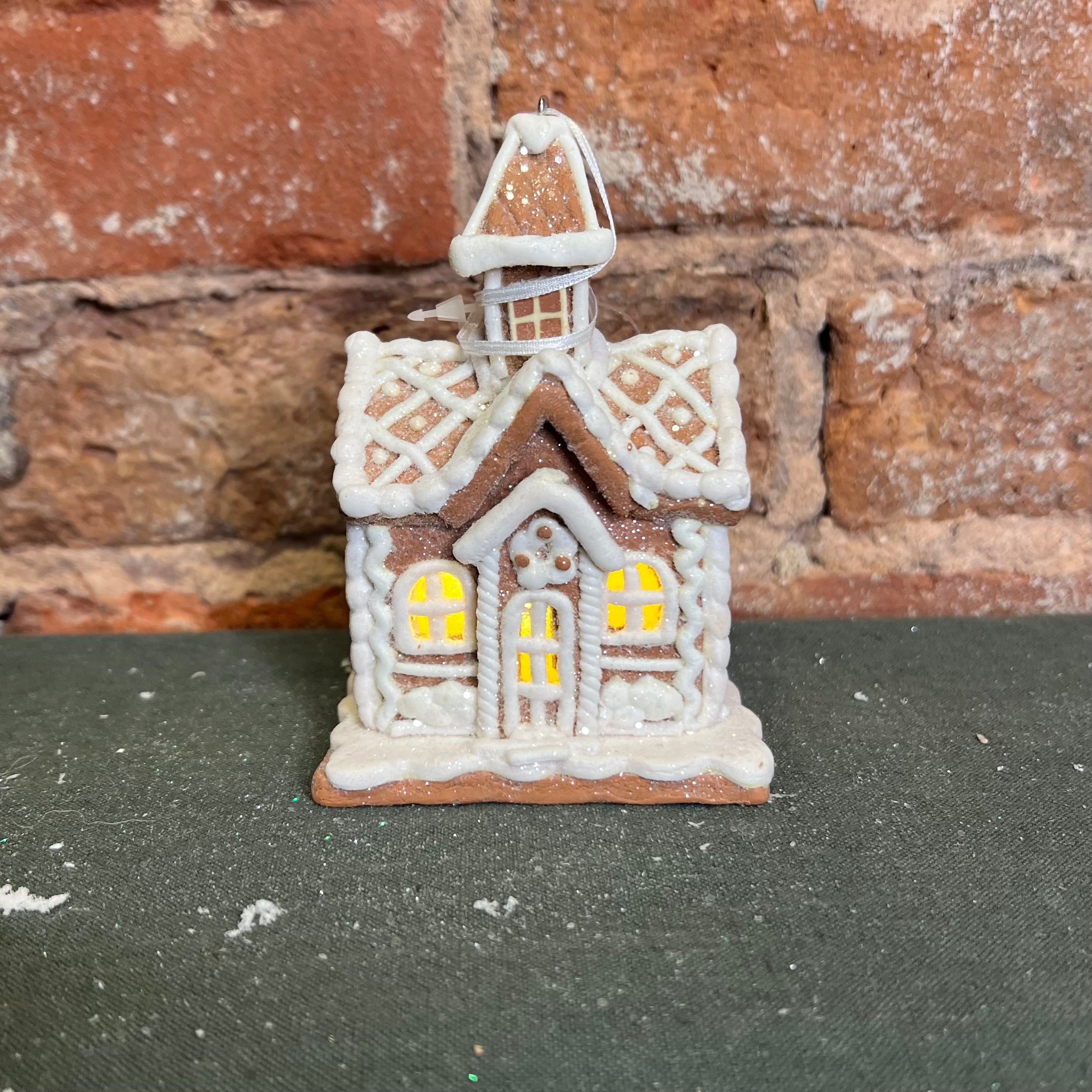 Brown Lighted Frosted Gingerbread House Orn 4.25”
