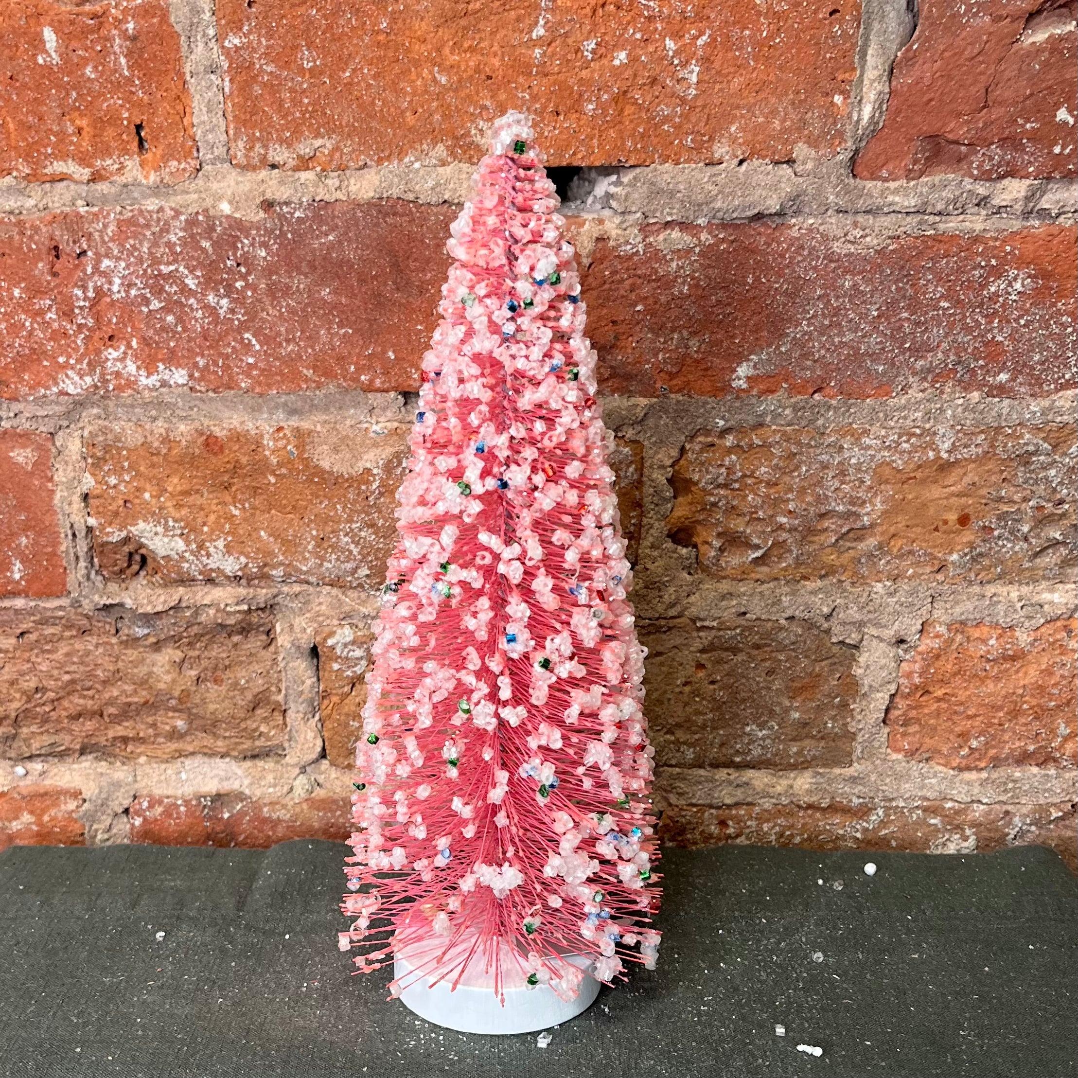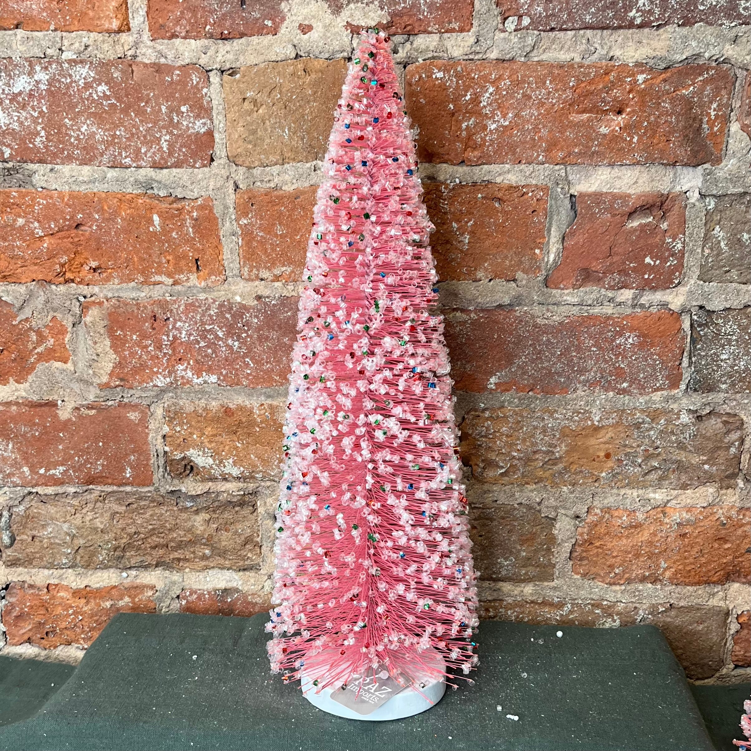 Add a splash of festive fun with the Pink Bottle Brush Tree w/ Sprinkles! Available in three charming sizes, this playful decoration brightens any space with its vibrant pink hue and colorful sprinkle accents. Perfect for creating cheerful holiday vibes, it adds a whimsical touch to your décor whether on a tabletop, shelf, or mantel. Celebrate the season with a pop of color and delightful texture!