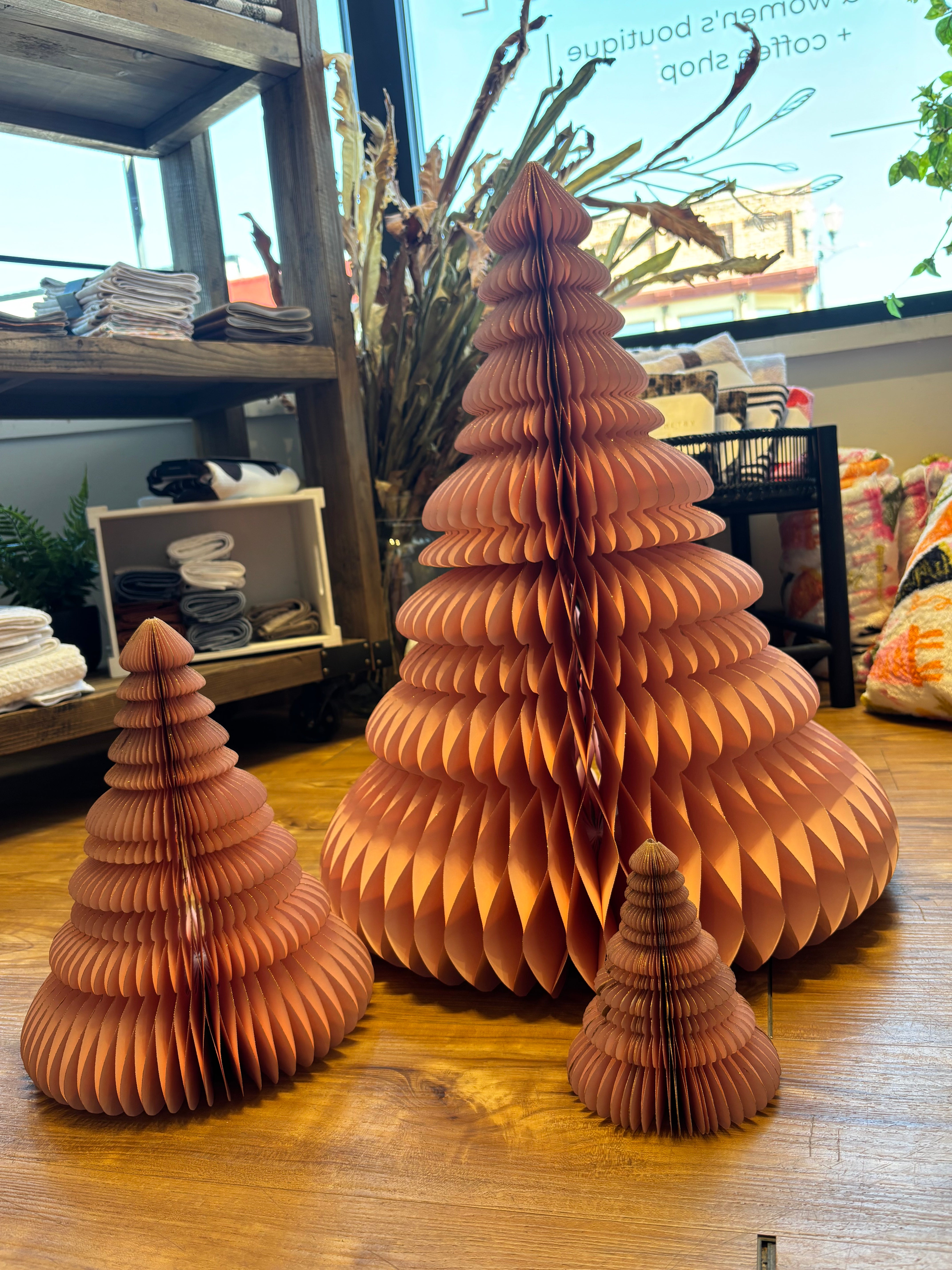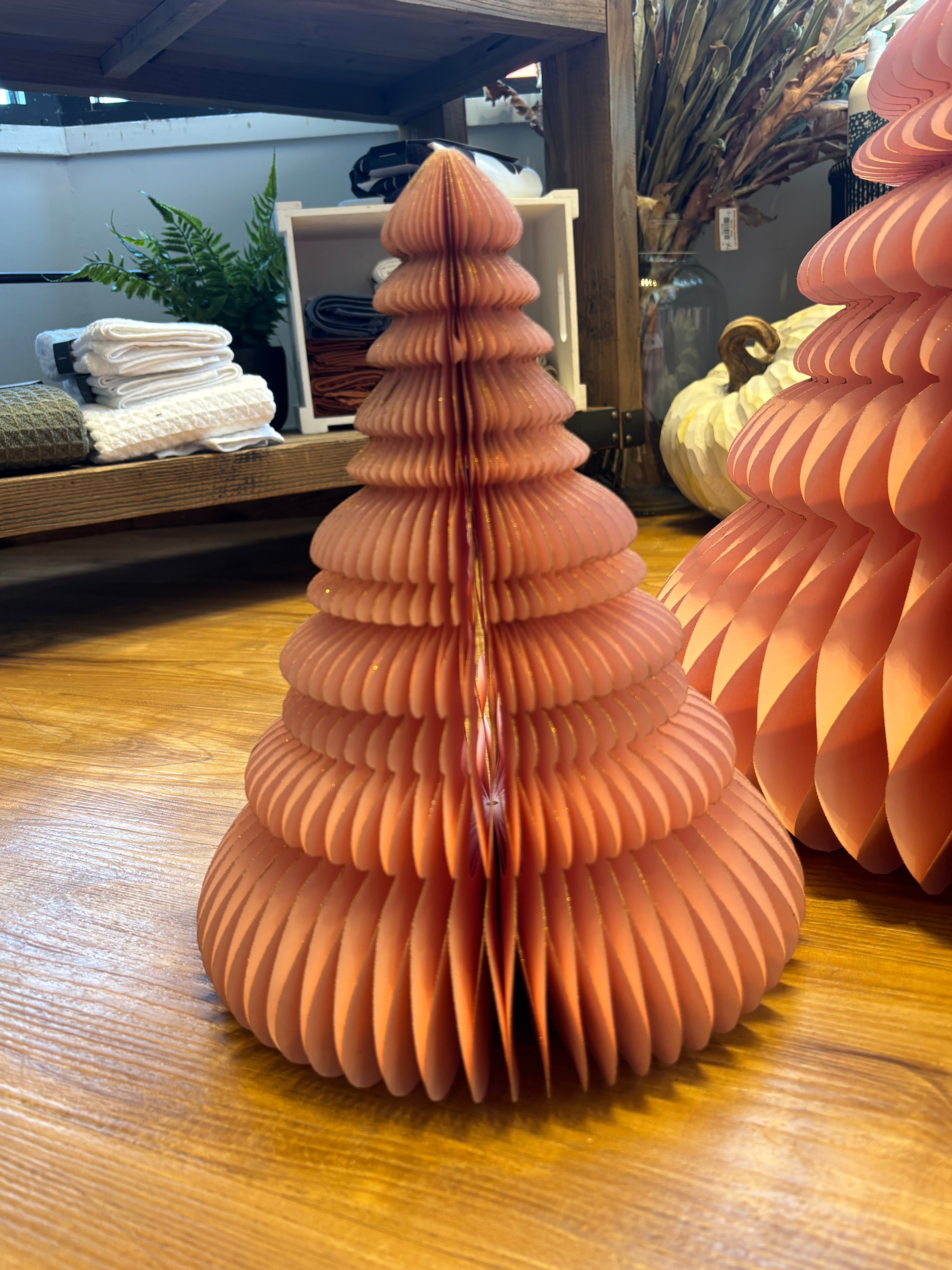 Pink Paper Honeycomb Trees w/ Glitter Edge Set of 3