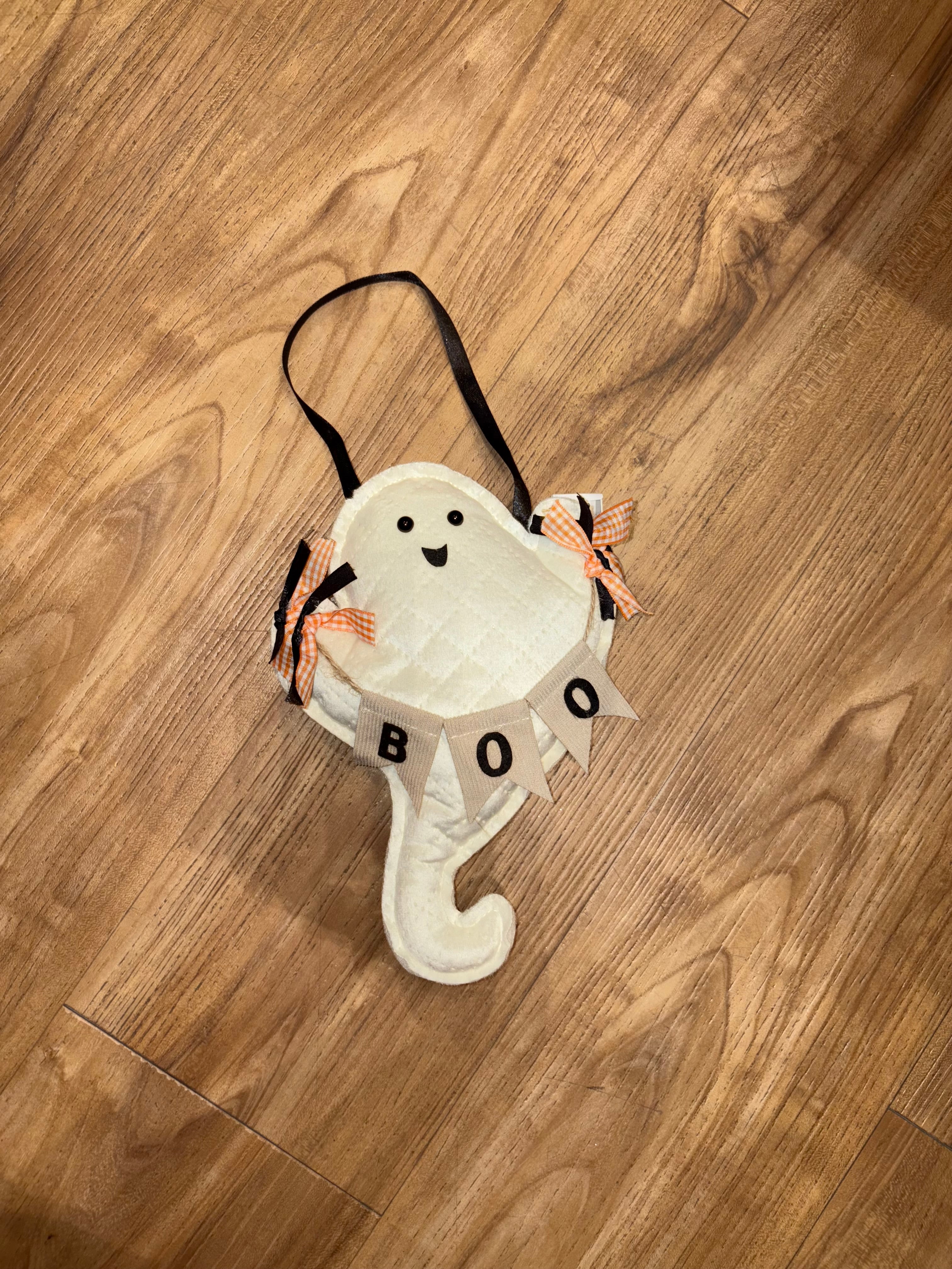 Add a festive touch to your door with this 14-inch soft plush ghost hanger. Featuring a charming "Boo" message, it combines playful design with cozy texture, making it an ideal seasonal decoration that’s both inviting and easy to hang. Perfect for enhancing Halloween ambiance indoors or outdoors.