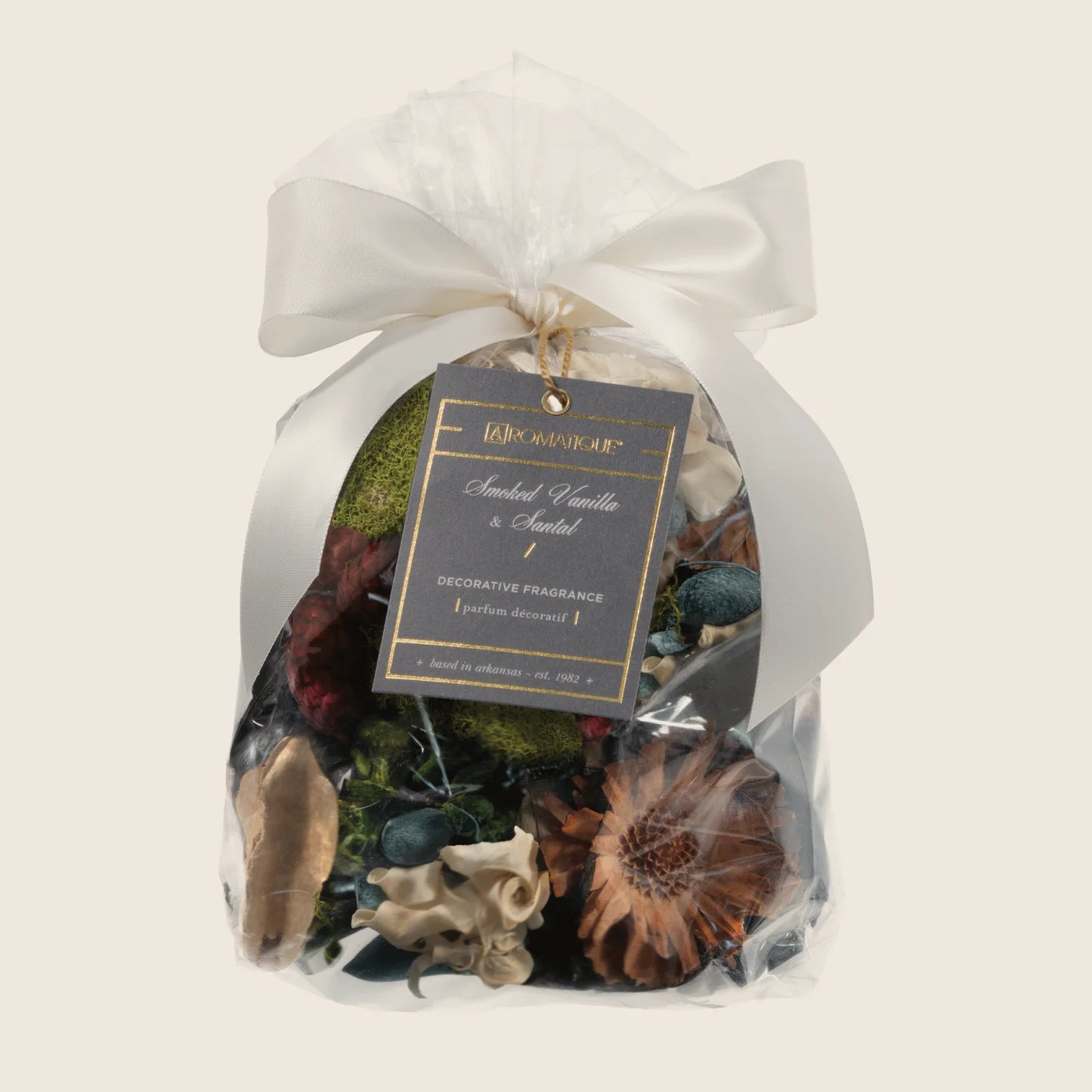Directions: Open bag from the bottom to allow contents to release into the container of your choice. Arrange botanicals to be displayed on the surface as needed. *Note: Our decorative fragrance performs better than other potpourris on the market because we utilize highly fragranced wood chips and other carriers that allow our fragrances to stay fresher longer. These types of porous materials also allow the fragrance to be released into the air for maximum strength, leading you to the best experience possible.