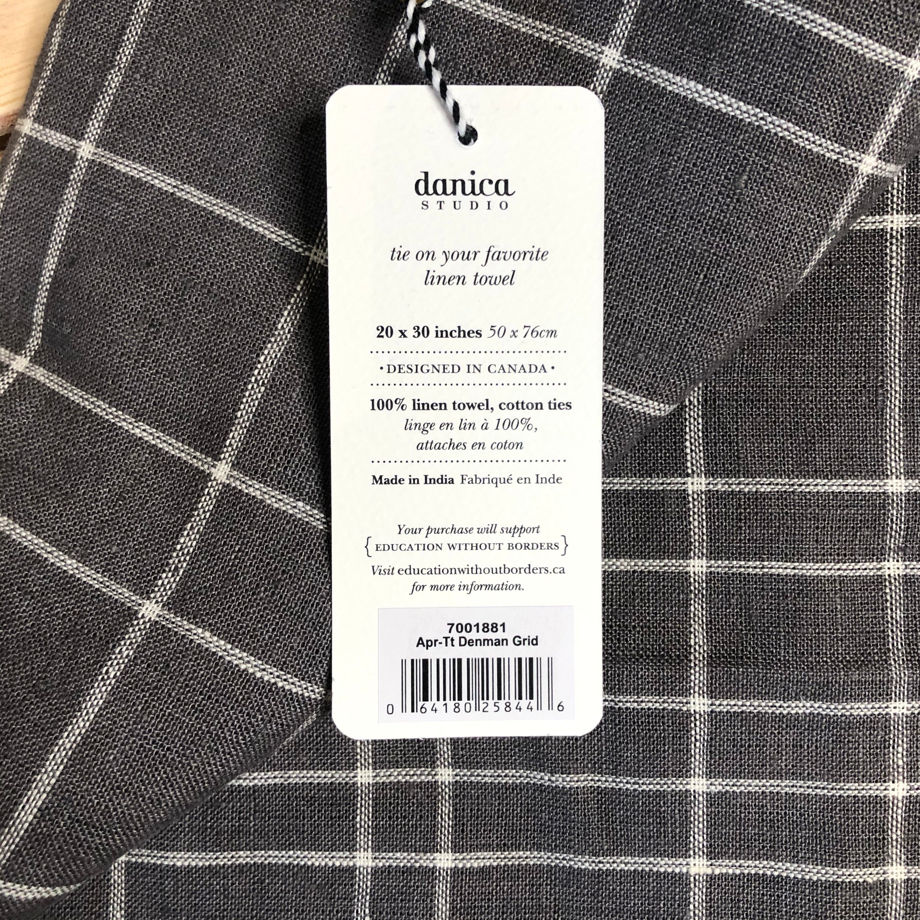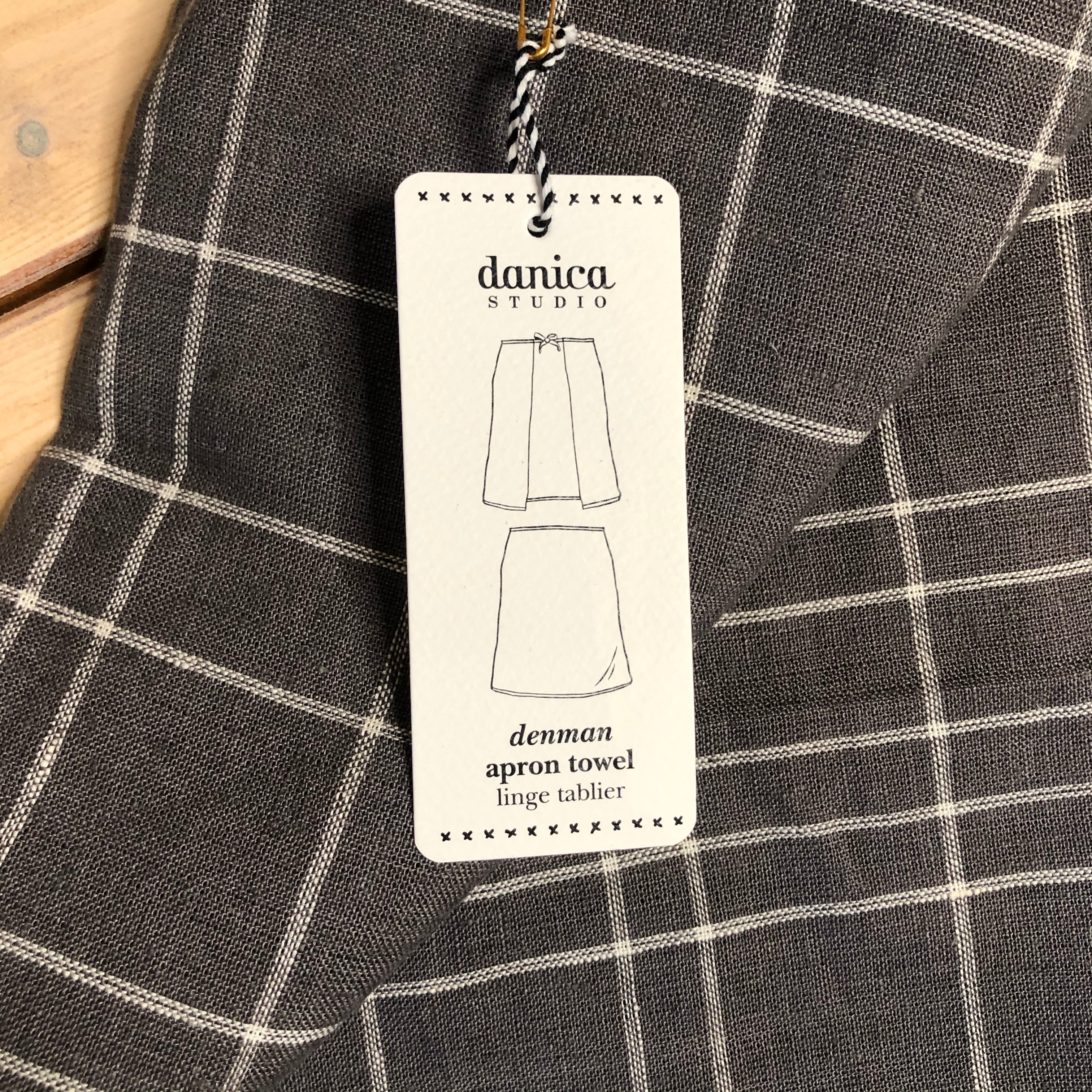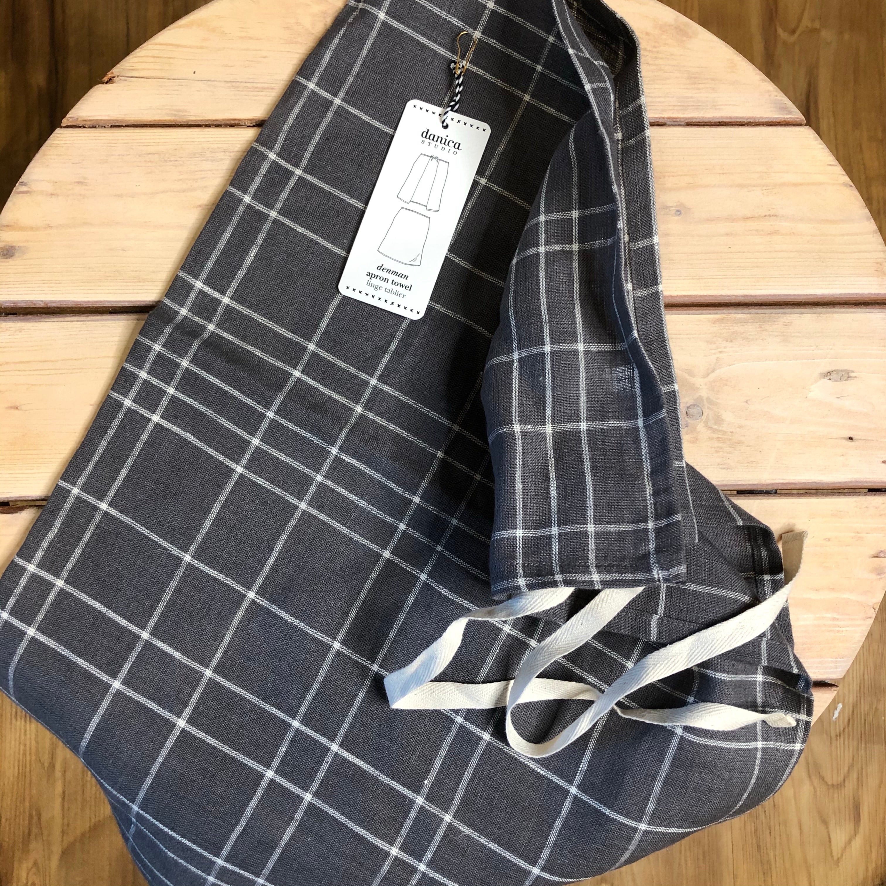 - Dishtowel apron: The Denman Apron Dishtowel is versatile, unisex, and can be worn as a half apron around the waist or used as a dishtowel. Designed for the kitchen, garden, workshop, and service industry. Measures: 20'' W x 30'' L
