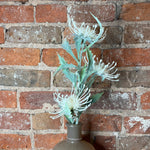 This Flocked Thistle Stem features three heads and a powdery white texture. Perfect for adding a touch of elegance and texture to any floral arrangement or DIY project. Versatile and durable, this 24" stem is a must-have for any floral enthusiast or professional designer.