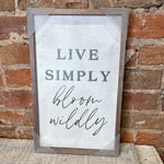 Live Simply Bloom Wildly Sign 10x16"