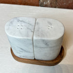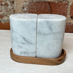 Elevate your dining experience with our Marble S&P Shakers on a sleek Acacia wood tray. These shakers not only add a touch of sophistication to your table setting but also provide the perfect distribution of salt and pepper for a delicious meal.