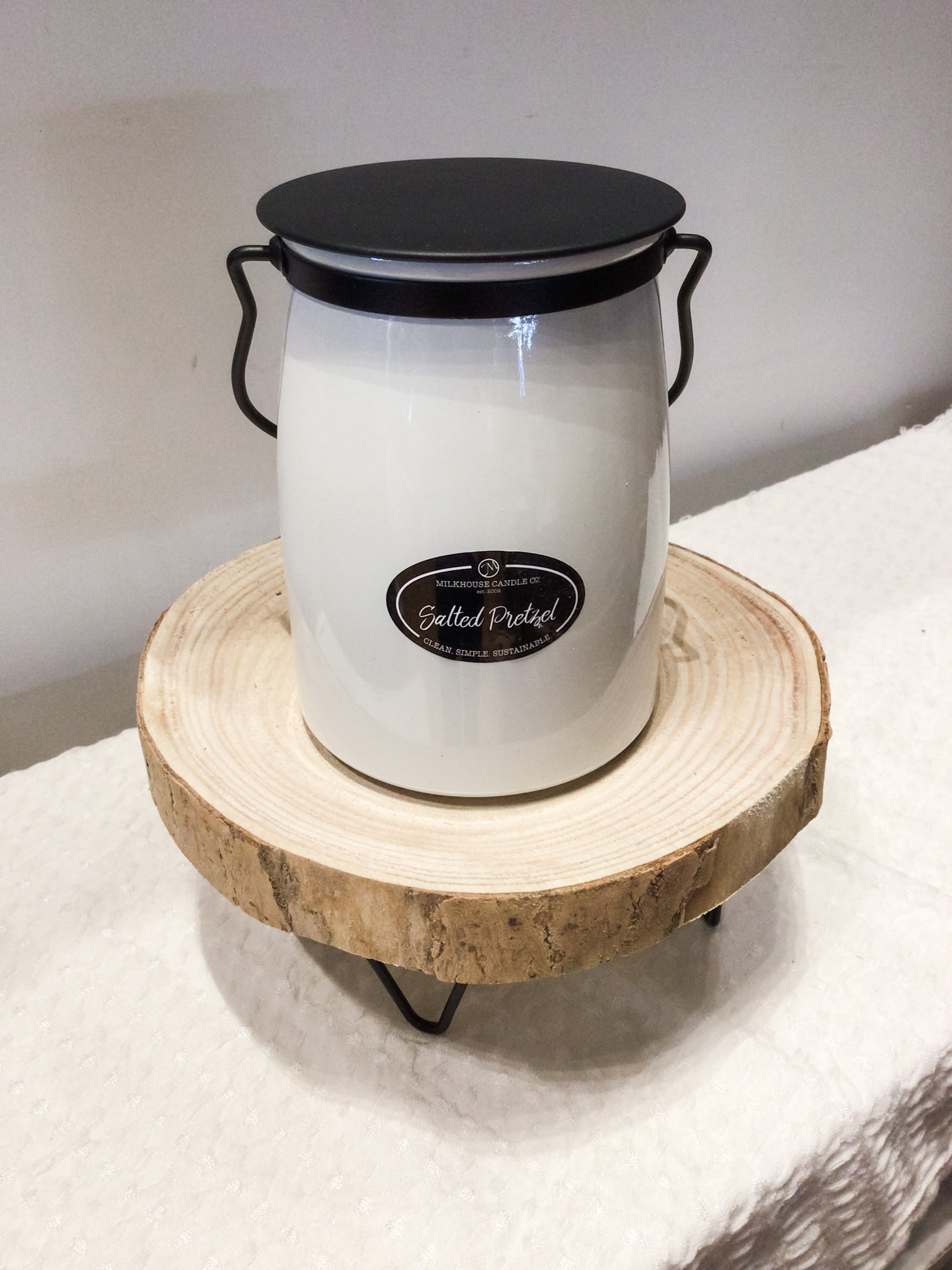 Salted Pretzel: A freshly baked golden brown Bavarian pretzel drips with warm, salted butter, soft nuances of cane sugar, and a generous sprinkling of course sea salt.