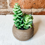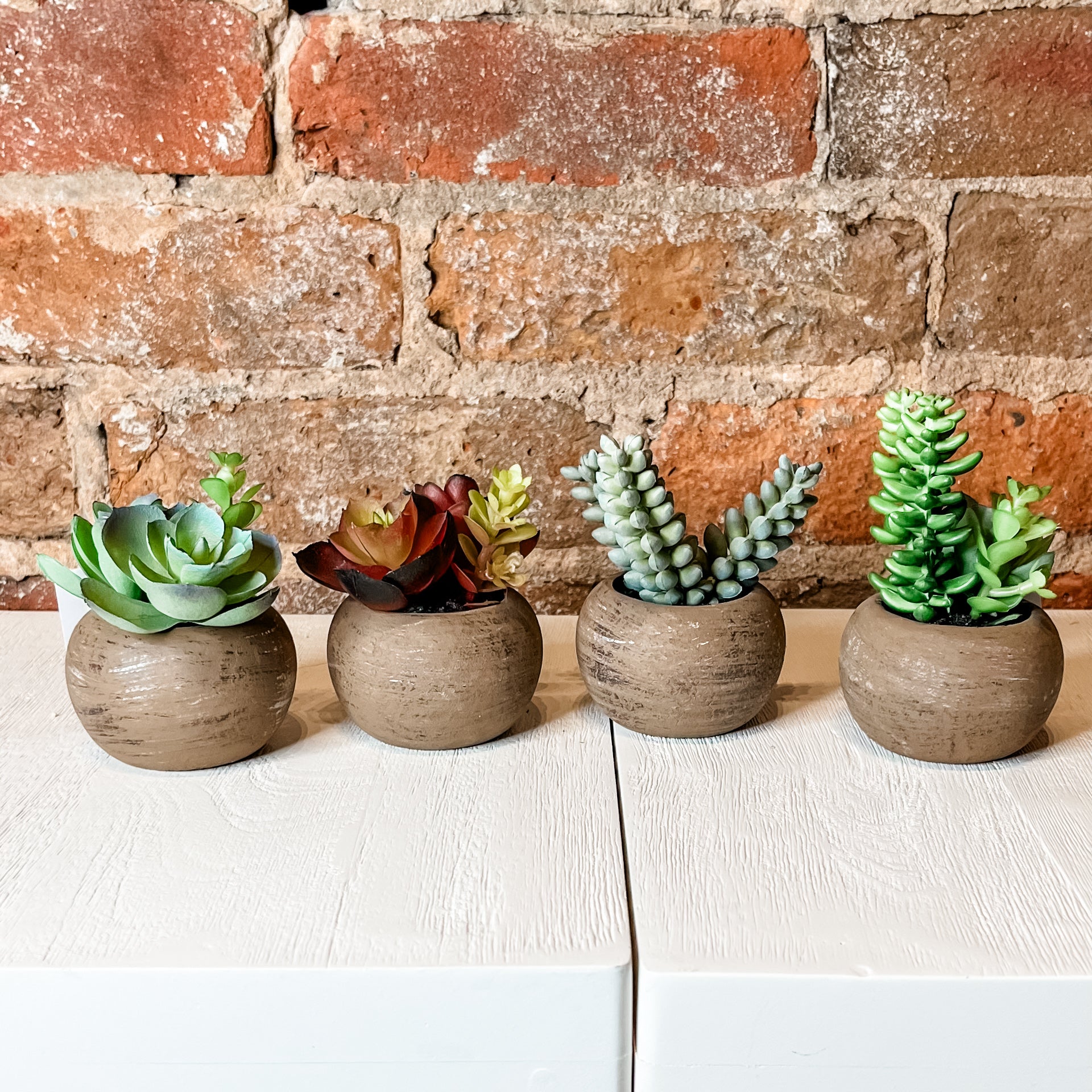 This 4.5" Mini Potted Succulent in Wood- like ceramic pot is perfect for adding a touch of greenery to any space. Made with high-quality faux succulents, it requires no maintenance and is guaranteed to stay looking fresh and vibrant. Enhance your decor with this realistic and long-lasting decorative piece.